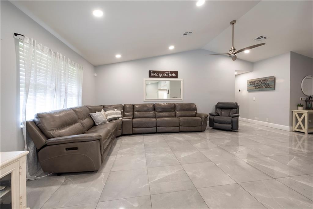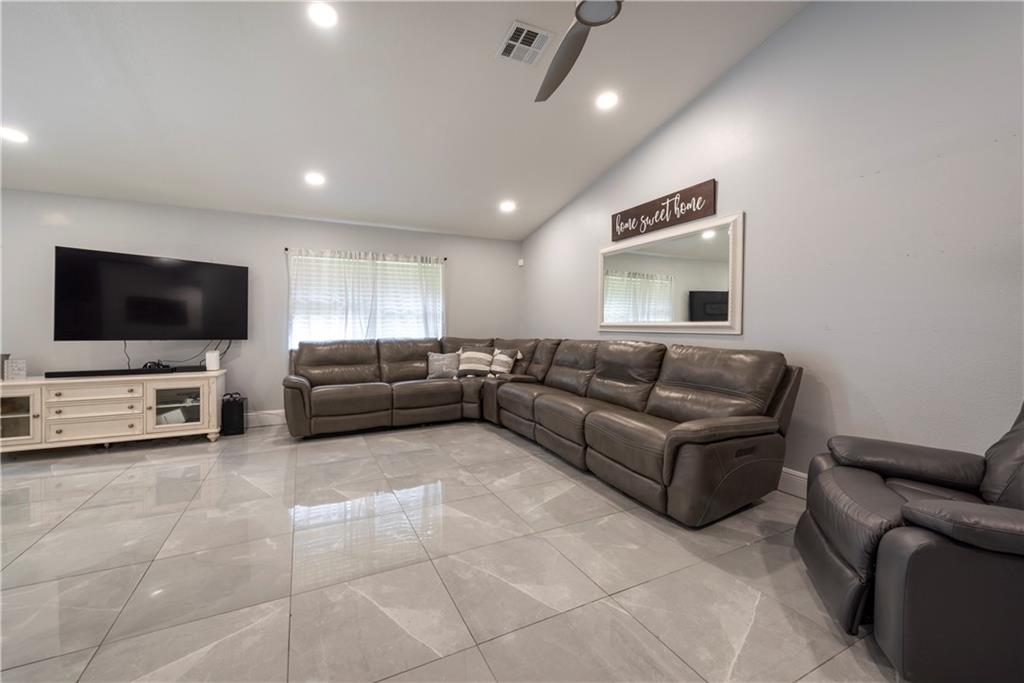 Beautifully Updated 3/2 Home in the Heart of Sunrise. Light filled. Vaulted Ceilings. Open Floorplan. Remodeled Kitchen includes Newer SS Appliances, Quartz Countertops, Shaker Style Cabinets, Soft Close Drawers, Island with Storage and Electricity. Porcelain Tile Throughout Main Living Areas. Bamboo Wood in Bedrooms. Spacious Primary Bedroom. Primary Bath features Barn Door Entry, Newer Vanity, Newer Shower Enclosure and Sizeable Walk-in Closet. New A/C, New Hot Water Heater. 18 Solar Panels mean you will never pay more than $100/month in Summer. New LED High Hats throughout. Partial Hurricane Impact Windows, Partial Panels. Covered Patio with a Large, Fenced Backyard. NO HOA! Roof 2014. 2 Car Garage. Conveniently located to City Parks and Recreation, Restaurants, Grocery Stores, Shops.