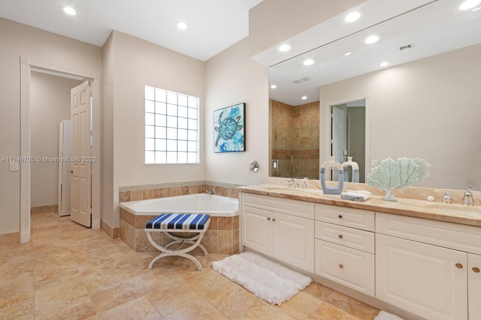 This is your opportunity to live in the prestigious guard gated boating community of Harbor Island less than 1 mile from the beach. Home sits on a corner lot with private backyard and serene garden. Impact glass windows, French doors, chef's kitchen with double ovens, Italian tiles, bedroom & full bath on main level. Glass bannister staircase leads to 3 bedroom, 2 baths & laundry room upstairs. Master suite has whirlpool spa, separate glass enclosed shower, & bidet. Meticulously maintained, 2 NEW A/C units. Walk to the marina or through the 20 acre park. Enjoy the lifestyle with amenities like the onsite health spa, fitness center, lighted tennis & basketball courts, resort style pool & clubhouse all within your gates. HOA includes, cable, internet, alarm, lawn, exterior painting.