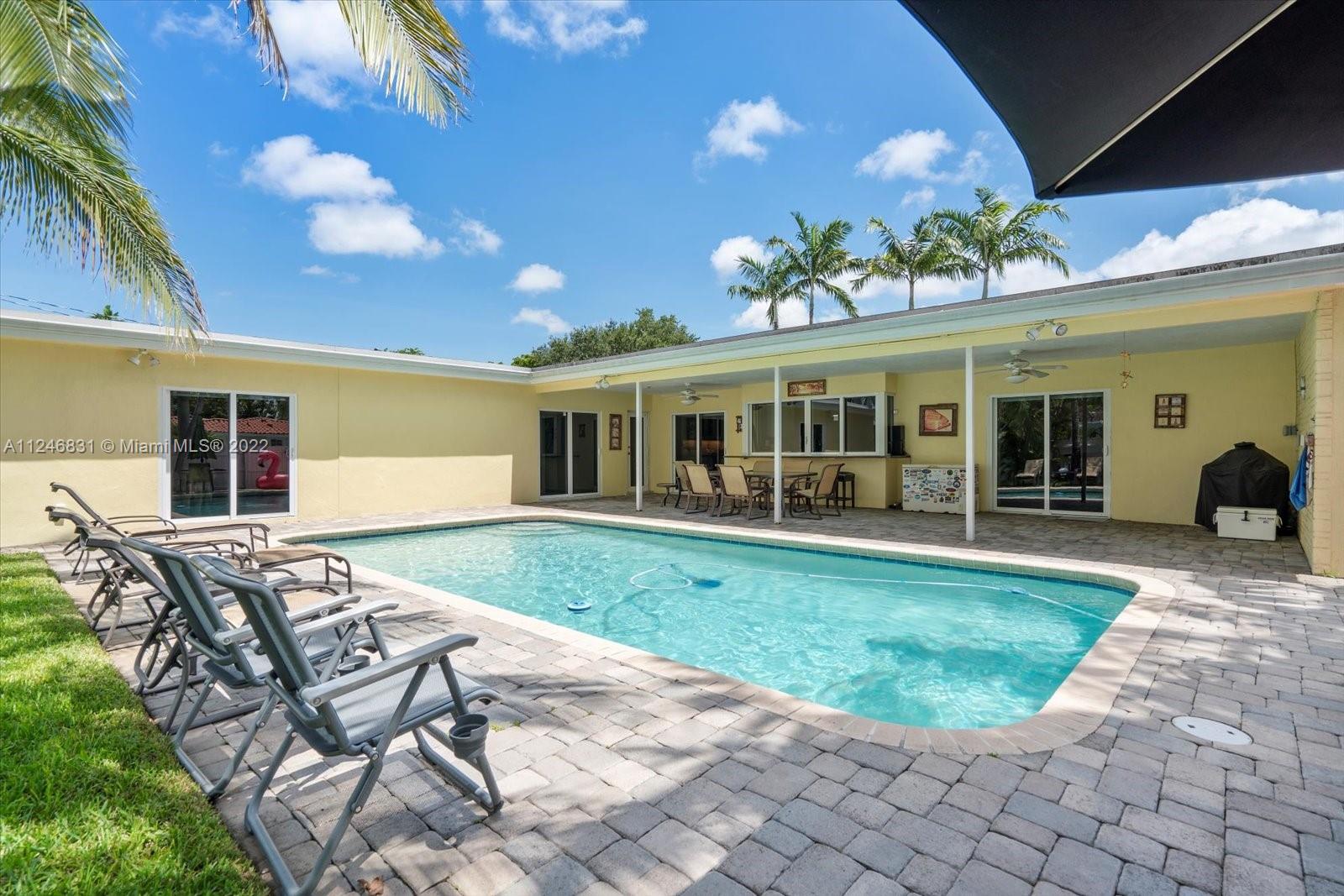 READY TO MOVE IN. Get ready to relax in this beautifully updated 4 Bedroom/2 Bathroom on a large corner lot. All of the upgrades are done, it’s ready to enjoy. Relaxation awaits on the oversized paver pool deck and patio. The saltwater pool is surrounded by lush tropical palm trees. There is plenty of room for your boat or RV on the additional 46’x13’ paver boat/RV pad (side street entry). Gorgeous Dining Room with cabinets, granite, and wine cooler. Kitchen has been totally upgraded with granite counter tops, appliances, and marble top on island. Both bathrooms and all flooring has also been beautifully done. All impact windows and doors. Roof (2015). A/C Central (2018). Garage cabinets and epoxy floor. Electrical Service updated. Samsung Washer and Dryer.