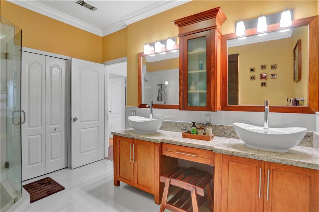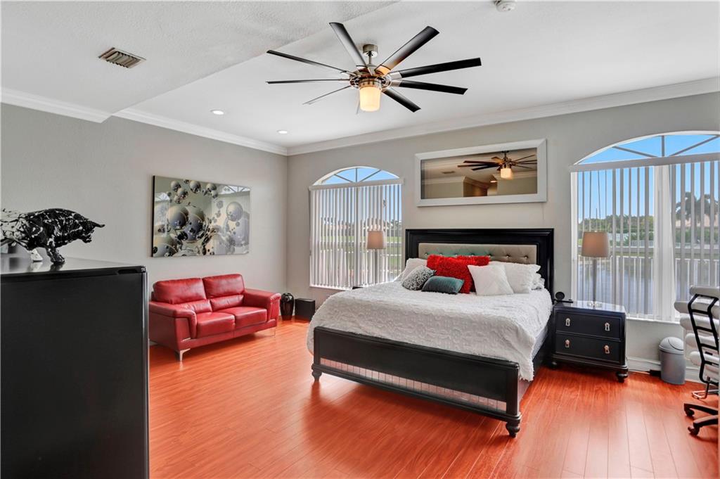 TWO-STORY LAKEFRONT HOME WITH A POOL LOCATED IN THE ESTATES OF TEQUESTA COVE. 5 BEDROOMS, 3 ½ BATHS WITH THE MASTER LOCATED ON THE 1st FLOOR. THE MASTER HAS HIS AND HER SINKS, AND LARGE BUILT-IN AND WALK-IN CLOSETS. ALL BATHROOMS HAVE BEEN UPDATED. THE KITCHEN IS UPDATED WITH BEAUTIFUL REAL WOOD CABINETS. THE SECOND FLOOR HAS 4 BEDROOMS EACH WITH BUILT-IN CLOSETS. THIS HOME HAS A 3-CAR GARAGE. A PORTION OF THE GARAGE INCLUDES A STATE-OF-THE-ART MEDIA AND BAR/PARTY ROOM AND CAN EASILY BE CONVERTED BACK. TANKLESS HOTWATER TANK AND ALARM SYSTEM. INCREDIBLE LAKE VIEWS, 40X12 POOL WITH A WATERFALL, AND EXTENDED DECK AREA FOR ENTERTAINING. THE PATIO IS COVERED AND IS EASILY ACCESSED THROUGH THE FAMILY ROOM OR MASTER BEDROOM.
