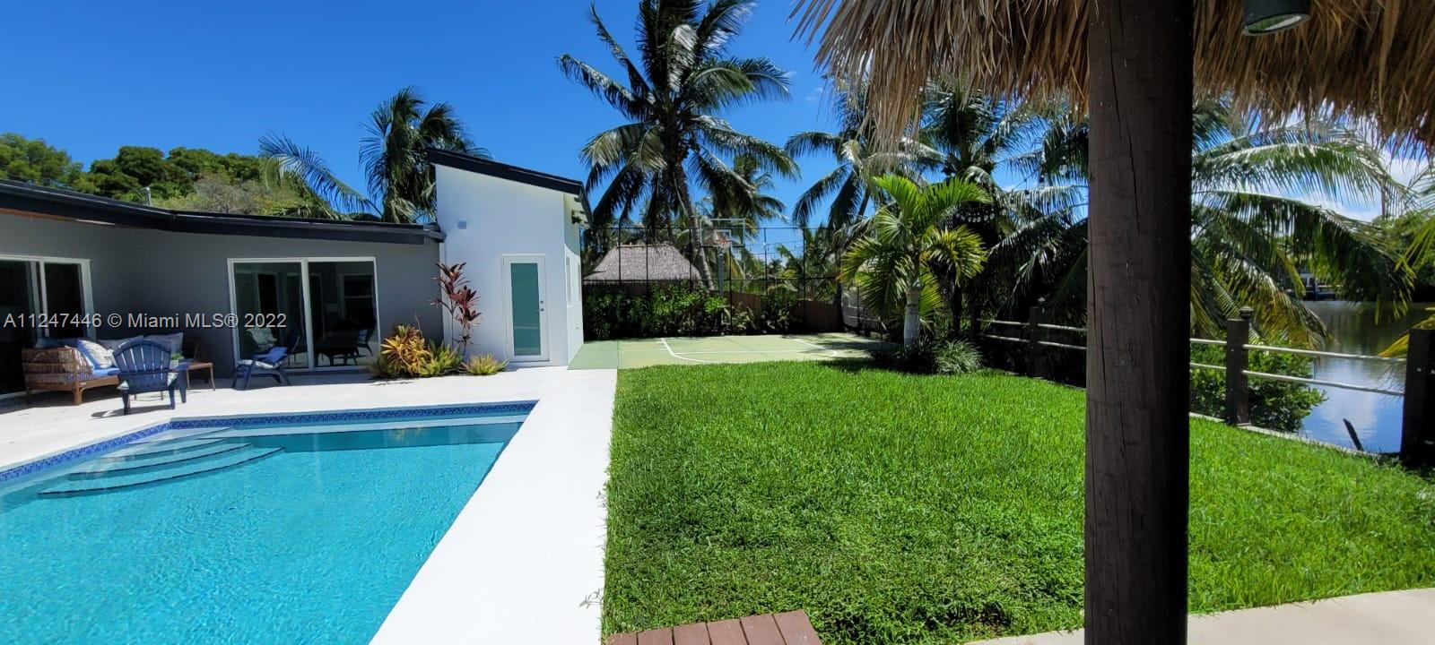 Welcome to your dream home! Beautiful and bright single home in Enchanted Lakes. Full size pool surrounded by a meticulous illuminated landscape with a lake view and steps to a basketball court and your own private "Tiki" with a BBQ. Perfect for entertainment day and night! Inside this green built home you will find spacious and confortable living and dining area, small office space, a huge kitchen with a built in counter top for all family to enjoy, with induction cooktop. 5 bedrooms and 3 full bathrooms; led lightning and natural light all over this house. Electric curtains in living and main bedroom. Tesla vehicle charger. Enjoy the lake view from your own private dock; from this lake you can get all the way to the ocean. 2 AC Units and 3 electric water heaters.