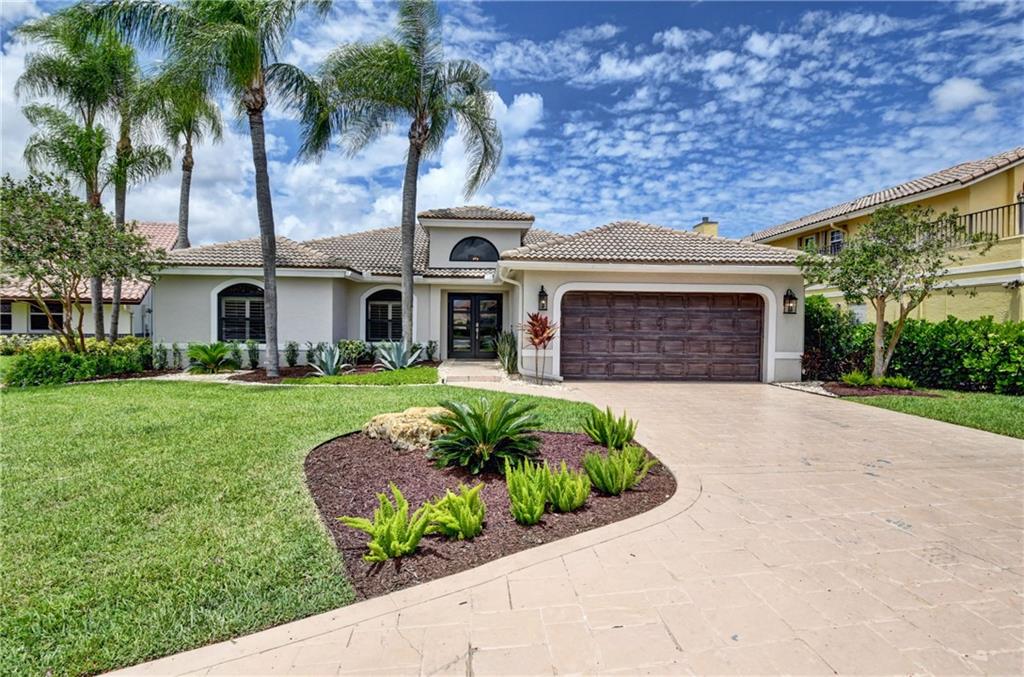 Move-in ready 4BR/3BA three way split totally redesigned in 2019! You'll be impressed with the natural light from the 2019 installed impact windows and doors. The herringbone pattern tile floor will "wow" you! The great room is open to the gorgeous, white kitchen with bronze accents. Gather the guests by the massive island, the dining table or the screened patio. The split floor plan allows for a private primary bedroom and bath with great views of the patio. The 2nd bedroom is perfect for guests, located away from the other bedrooms. The 3rd and 4th bedroom share a bathroom and can be closed off with the hallway door. Nice size lot with 11,583 sf, water views in the rear, and large space out front for parking in driveway. Culdesac location! Close to beach and restaurants. Low HOA!