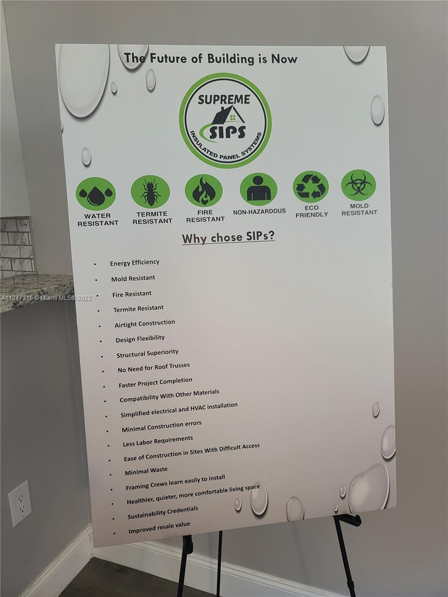 Make this never lived in home yours! Brand new green construction home utilizing SIPs (structural insulated panels) - hurricane resistant to Cat 5 (230mph), fire resistant, termite resistant, mold/mildew resistant and energy efficient (more info is available on this, ask your agent for the info from listing Broker). Raised elevation so no need to worry about ever flooding. Large fenced yard with double gate for ease in getting your 'toys' parked in the back. Impact windows & doors. Vaulted ceilings welcome you in to this spacious inviting open concept home. Ideal convenient location-you can be to Ft Laud, Miami, the beach in minutes. You'll enjoy peace of mind, energy savings when you move in and make this your home! No more worries about storms, termites, mold, fires, high FPL bills.
