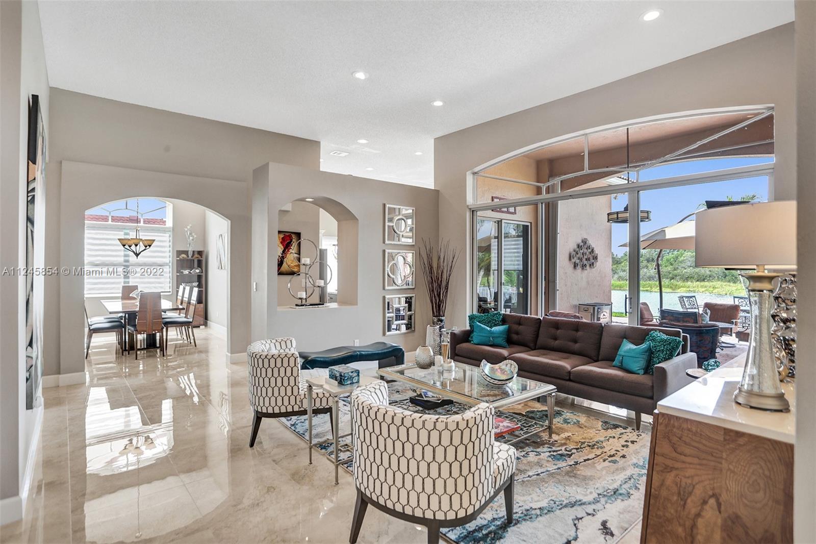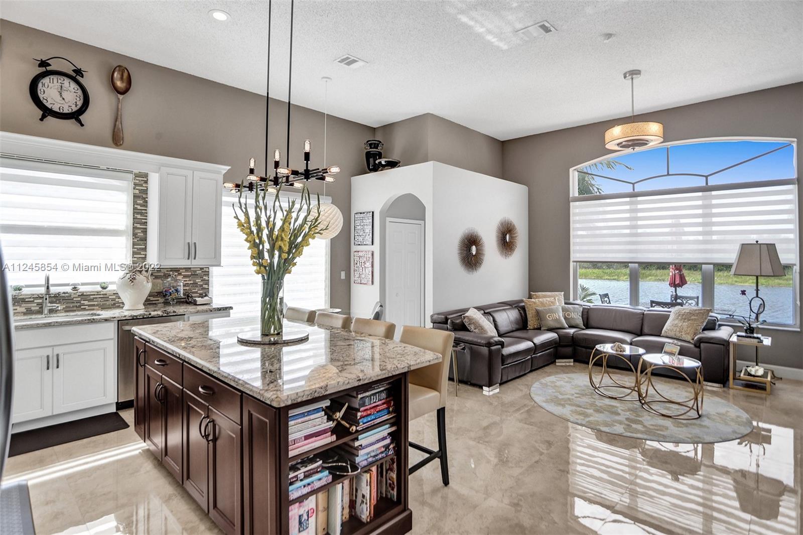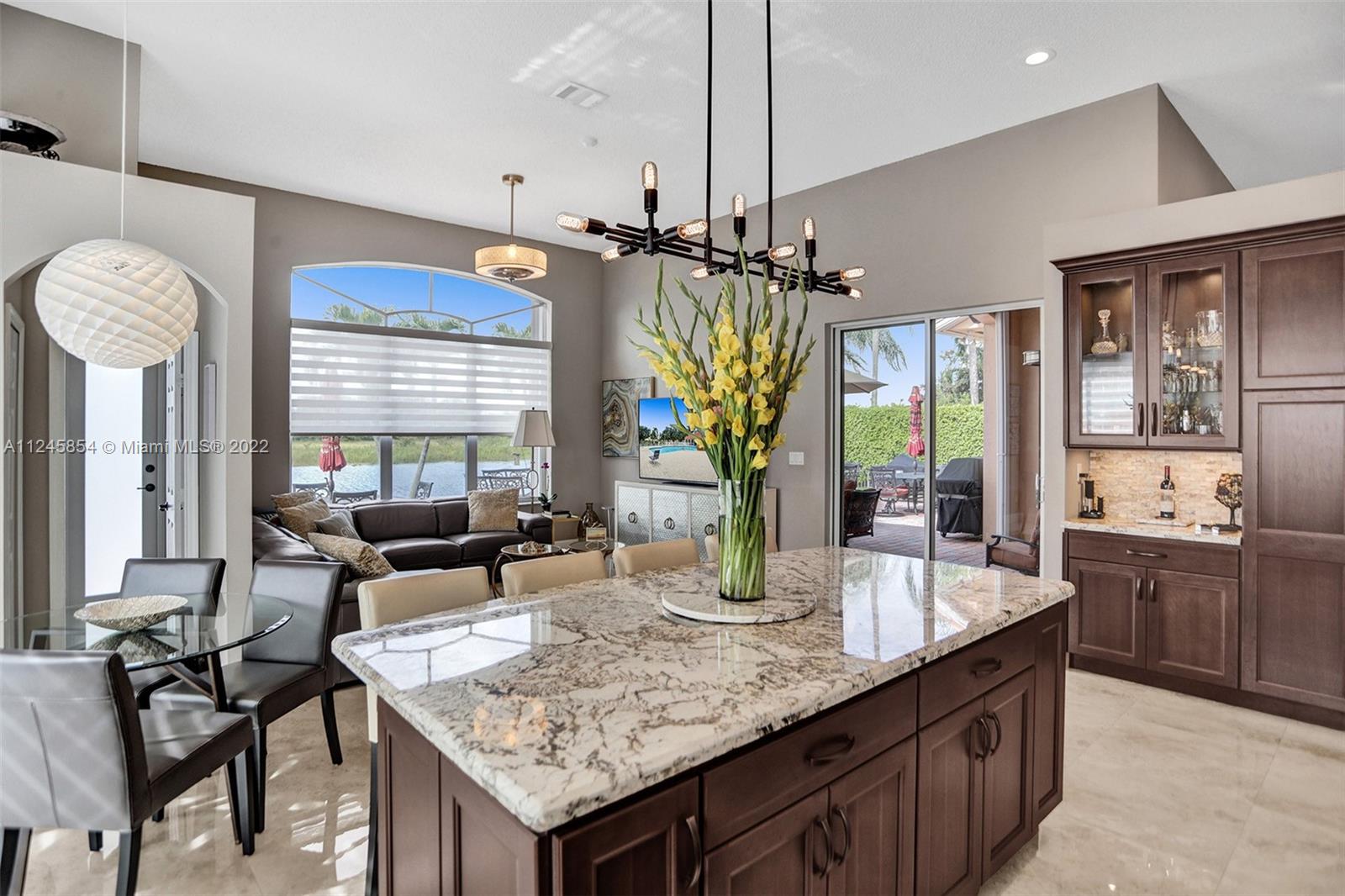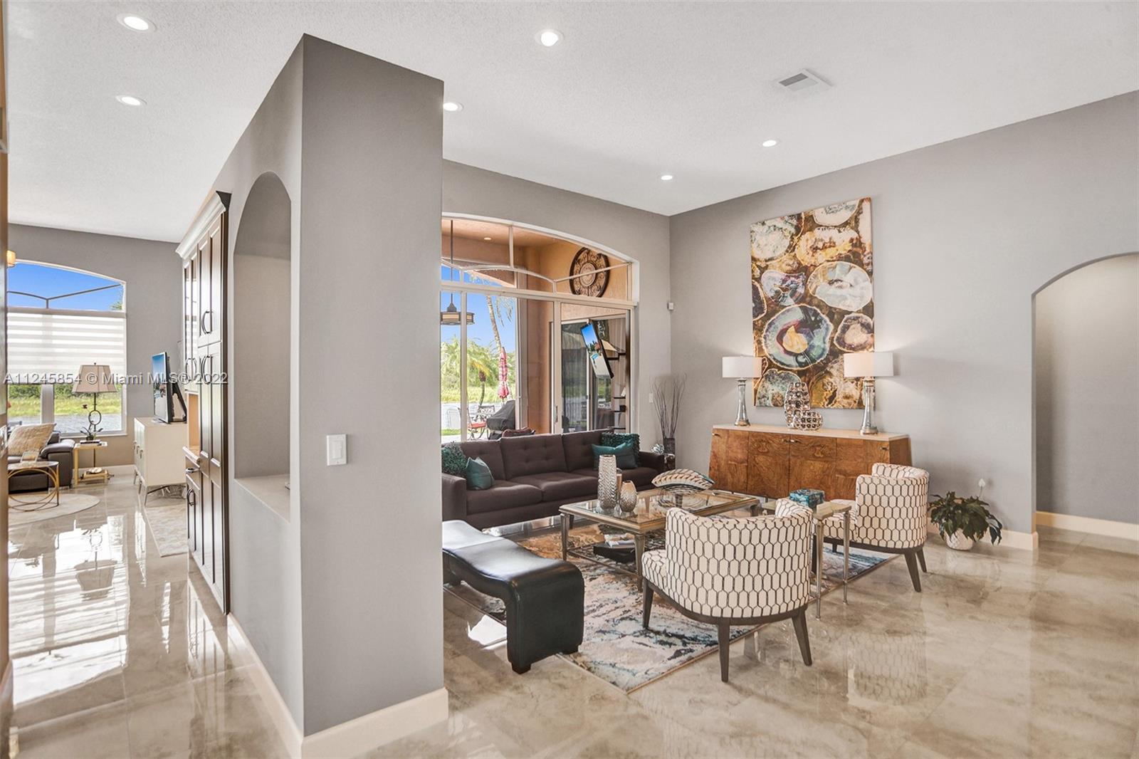 Classic & elegant home with a welcoming foyer. Spectacular living room w/ breathtaking views of the nature preserve serves as the centerpiece of this stunning home.A gem in the heart of the sought-after guard gated community of Estancia. Remodeled spacious kitchen by KabCo w/oversized island & built-in dry bar, polished porcelain flooring throughout main living area & an open floor plan are only a few of the highlights.The words peaceful & pristine will come to mind when you visit this property & are immediately enveloped by the warmth of a well-loved home.Enjoy gatherings outdoors in the covered patio overlooking the lake w/paved backyard big enough for a pool. Accordion shutters throughout. This home is ideally located near top-rated schools,soccer park,major shopping & major roadways.