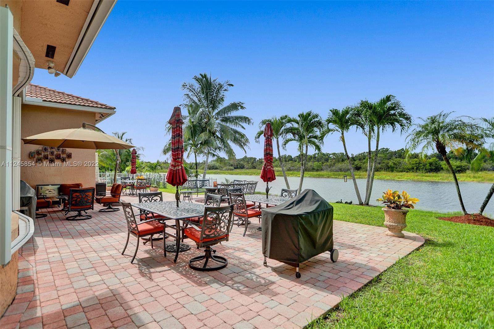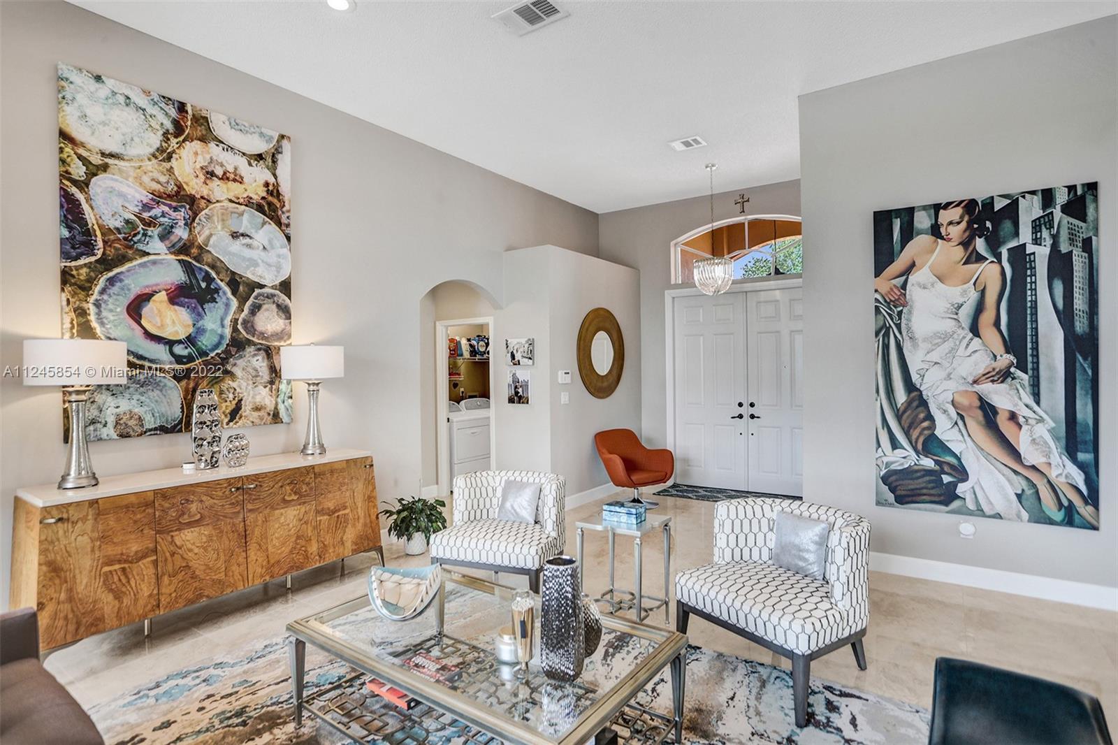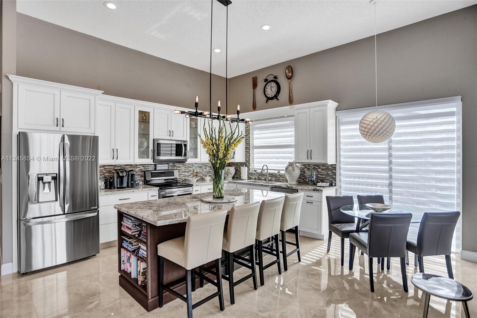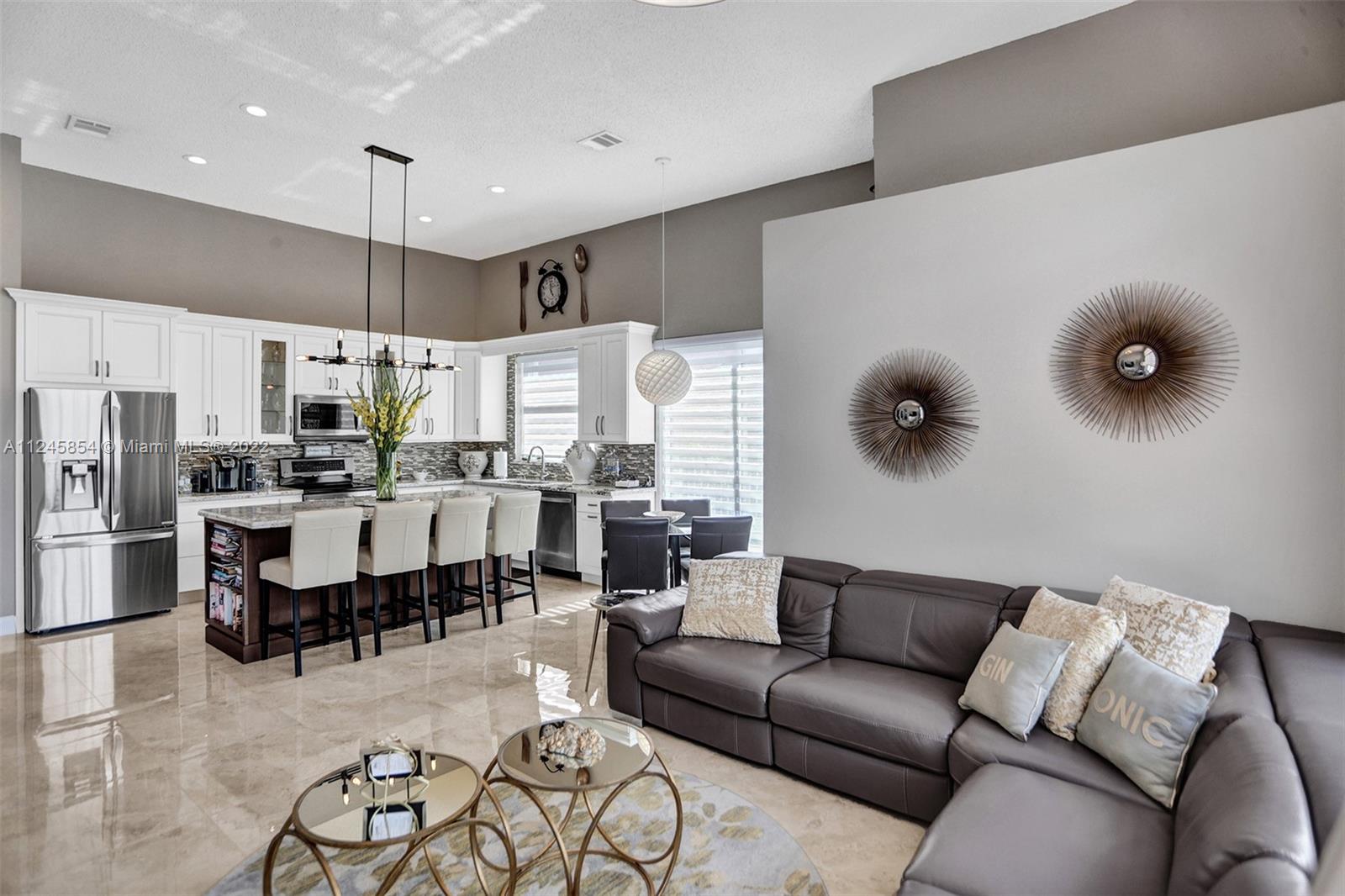 Classic & elegant home with a welcoming foyer. Spectacular living room w/ breathtaking views of the nature preserve serves as the centerpiece of this stunning home.A gem in the heart of the sought-after guard gated community of Estancia. Remodeled spacious kitchen by KabCo w/oversized island & built-in dry bar, polished porcelain flooring throughout main living area & an open floor plan are only a few of the highlights.The words peaceful & pristine will come to mind when you visit this property & are immediately enveloped by the warmth of a well-loved home.Enjoy gatherings outdoors in the covered patio overlooking the lake w/paved backyard big enough for a pool. Accordion shutters throughout. This home is ideally located near top-rated schools,soccer park,major shopping & major roadways.