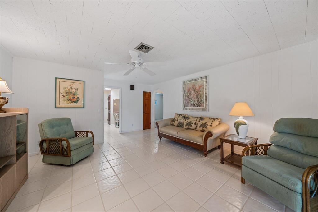 Located off desirable Prosperity Farms Rd, this 4 bedroom, 2 bathroom CBS corner lot home is ready to be yours. This 1971 home is the epitome of Old Florida charm, and has been lovingly maintained, ready for a new family to come in and modernize it. This is a split floor plan home, with a non-load bearing wall separating the kitchen from the massive living room that could completely transform the house into an open-concept layout. Located on a .345 acre corner-lot, there is plenty of room for a pool!2004: fiberglass shingle roof, 2014: Trane A/C, 2018 electric water heater, accordion shutters all openings.