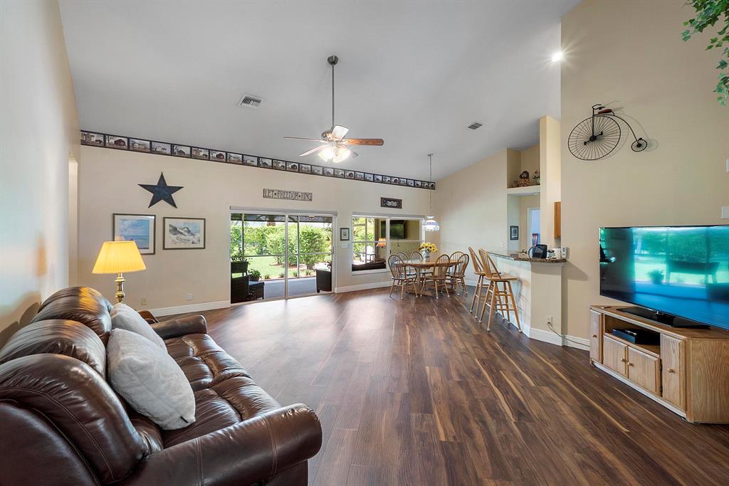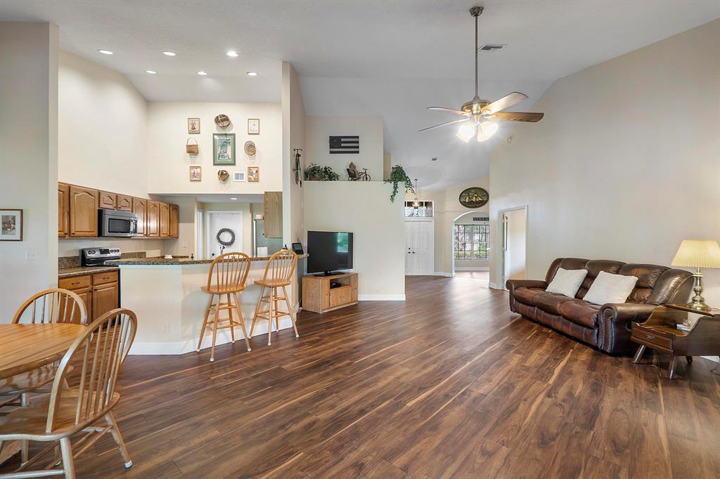 ABSOLUTLEY BEAUTIFUL! This pristine home is nestled on an oversized lot within the exclusive upscale community of Maplewood Addition! Featuring 4 Bdrms PLUS Flex Room, 2.5 baths w- an Open Concept floorplan designed for entertaining and family gatherings! Soaring Cathedral Ceilings greet you upon entry with NEW Luxury Nucore waterproof vinyl flooring throughout and freshly painted interior. Immaculate and meticulously maintained by Original Owners, additional updates include- NEW ROOF 2017, NEW A/C 2021, NEW HOT WATER HEATER 2018 and NEW W/D. Gourmet Kitchen w-Granite C-Tops, Wood Cabinetry, and Newer SS appliances. Coulisse Motorized Zebra shades, Beautiful Upgraded Bathrooms w- NEW vanities, New toilets, New flooring in Lanai/guest bath and frameless shower enclosure in primary En Suite.