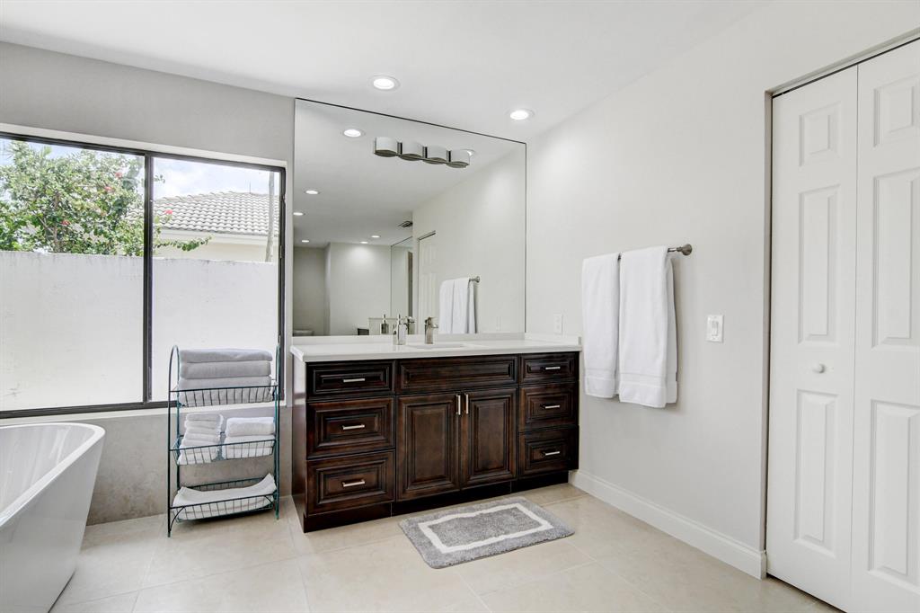 DO NOT MISS THIS AWESOME RENOVATION IN BOCA WOODS COUNTRY CLUB!! THE CORINTHIAN MODEL HOME WAS MODIFIED TO MAKE AN OPEN FLOOR PLAN AND ALSO TO INCLUDE A 4TH BEDROOM. ALL BEDROOMS ARE ENSUITE!!HUGE GREAT ROOM WITH HIGH CEILINGS IS OPEN TO CHERRY & GRANITE CENTERKITCHEN WITH LED UNDER CABINET LIGHTING & PLENTY OF SPACE TO PREPARE & STORE! LARGE TILE FLOORS, LIGHT AND BRIGHT FINISHES, ACCESS TO FULL BATH FROM LARGE SCREENED TRAVERTINE POOL, PATIO. LUXURIOUS MASTER BEDROOM SUITE WITH LARGE WALK-IN CLOSET + 2nd CLOSET & MASTER BATH WITH FREE STANDING TUB, OVERSIZED SHOWER. A MUST TO SEE IN BOCA WOODS. GOLF EQUITY MUST BE PURCHASED -