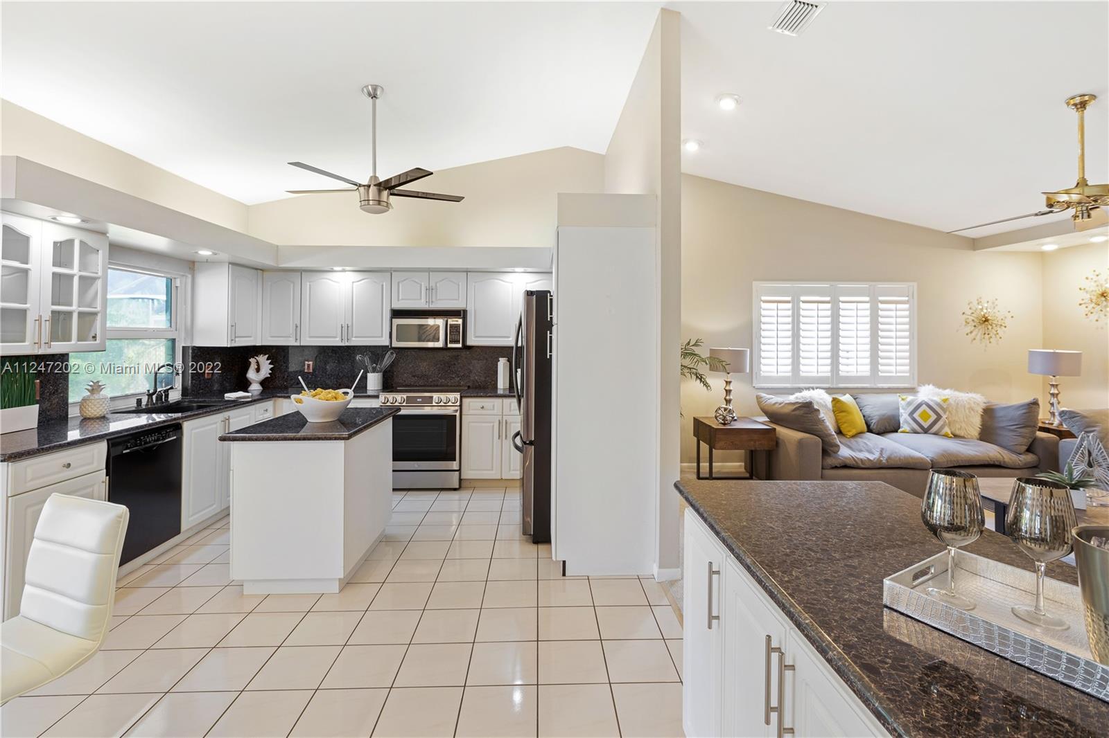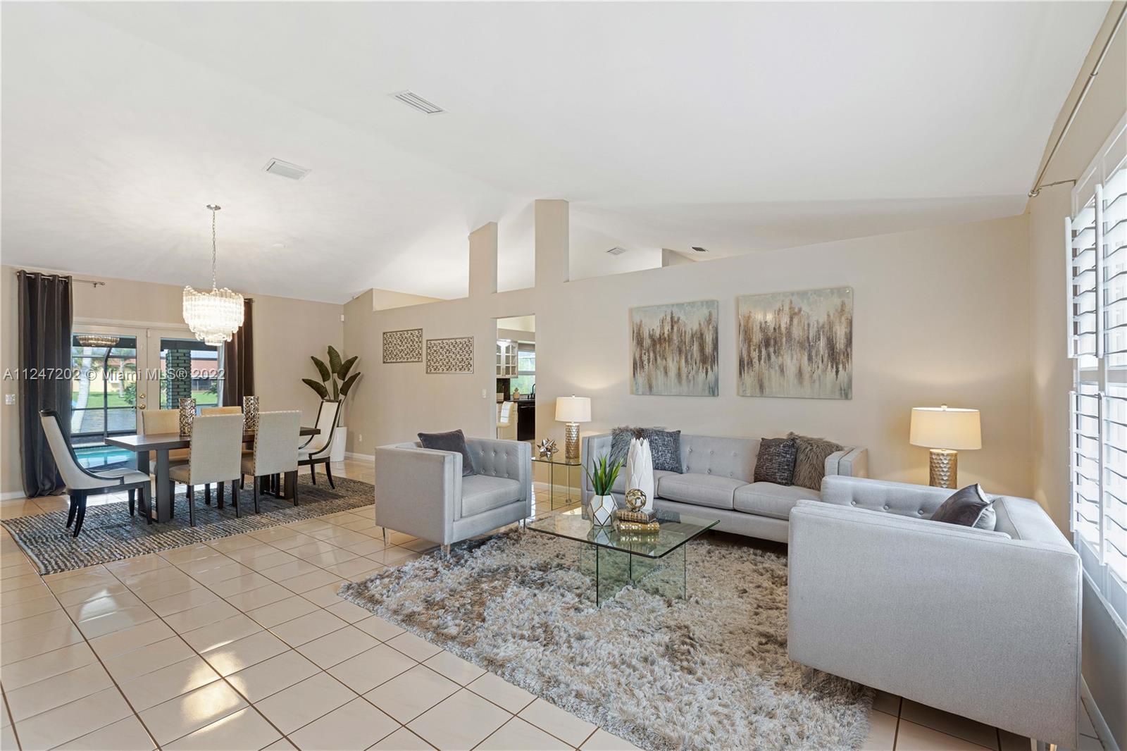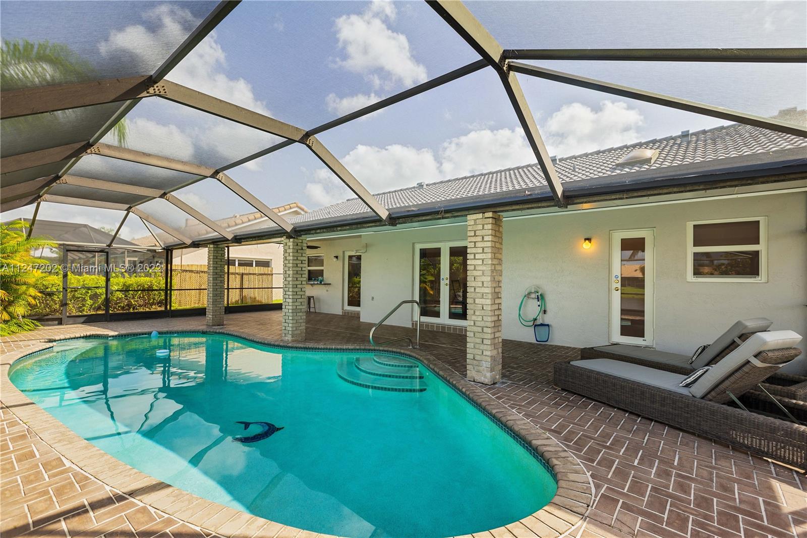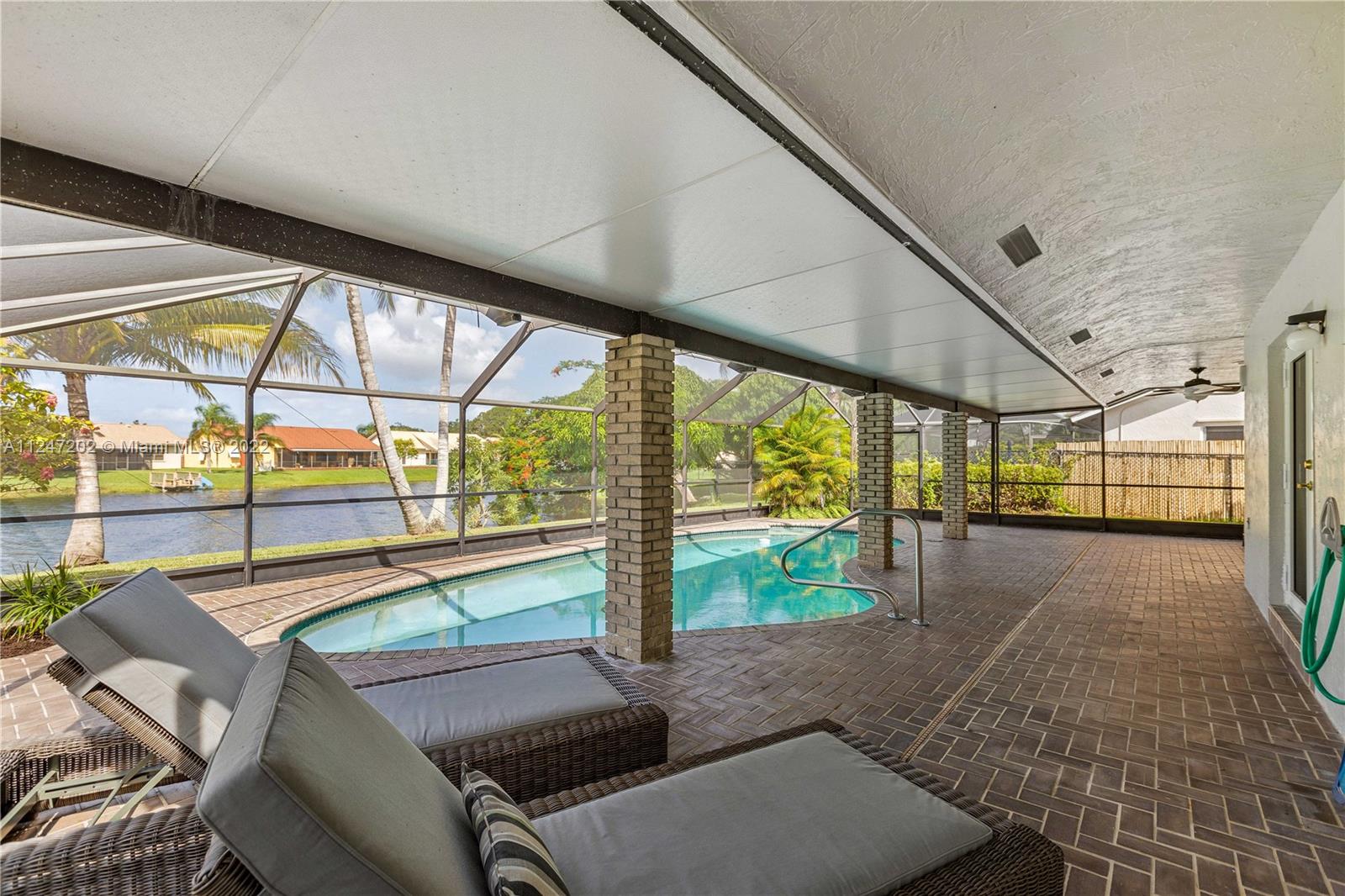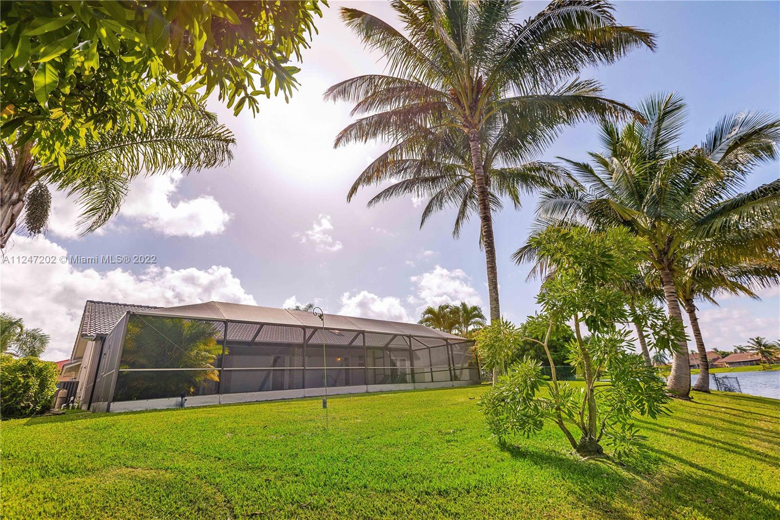 Impeccable home on lovely oversized lot by a tranquil lake. Watch the sun set from pool deck under extended roof. Heated pool/new screens/new sprinklers. HIGH IMPACT GLASS ON 3 SETS OF FRENCH DOORS/ALL WINDOWS. HURRICANE SAFE GARAGE DOORS. Updated kitchen with granite counters. NEW REFRIGERATOR & STOVE, WASHER & DRYER. Huge living/dining room with vaulted ceilings. Elegant master bedroom with Plantation shutters, crown molding. Master bath with walk-in shower, roman tub. A/C system only 4 years old. Newer carpets/fresh paint. Partial garage conversion allows for air conditioned utility room/office as well as space to park your car on epoxied floor. Circular driveway for 8 cars. Easy access to I-75, hospitals, theaters, restaurants & shopping. EXCELLENT SCHOOLS. Low HOA fee.