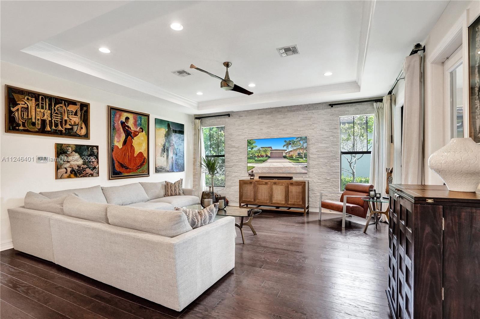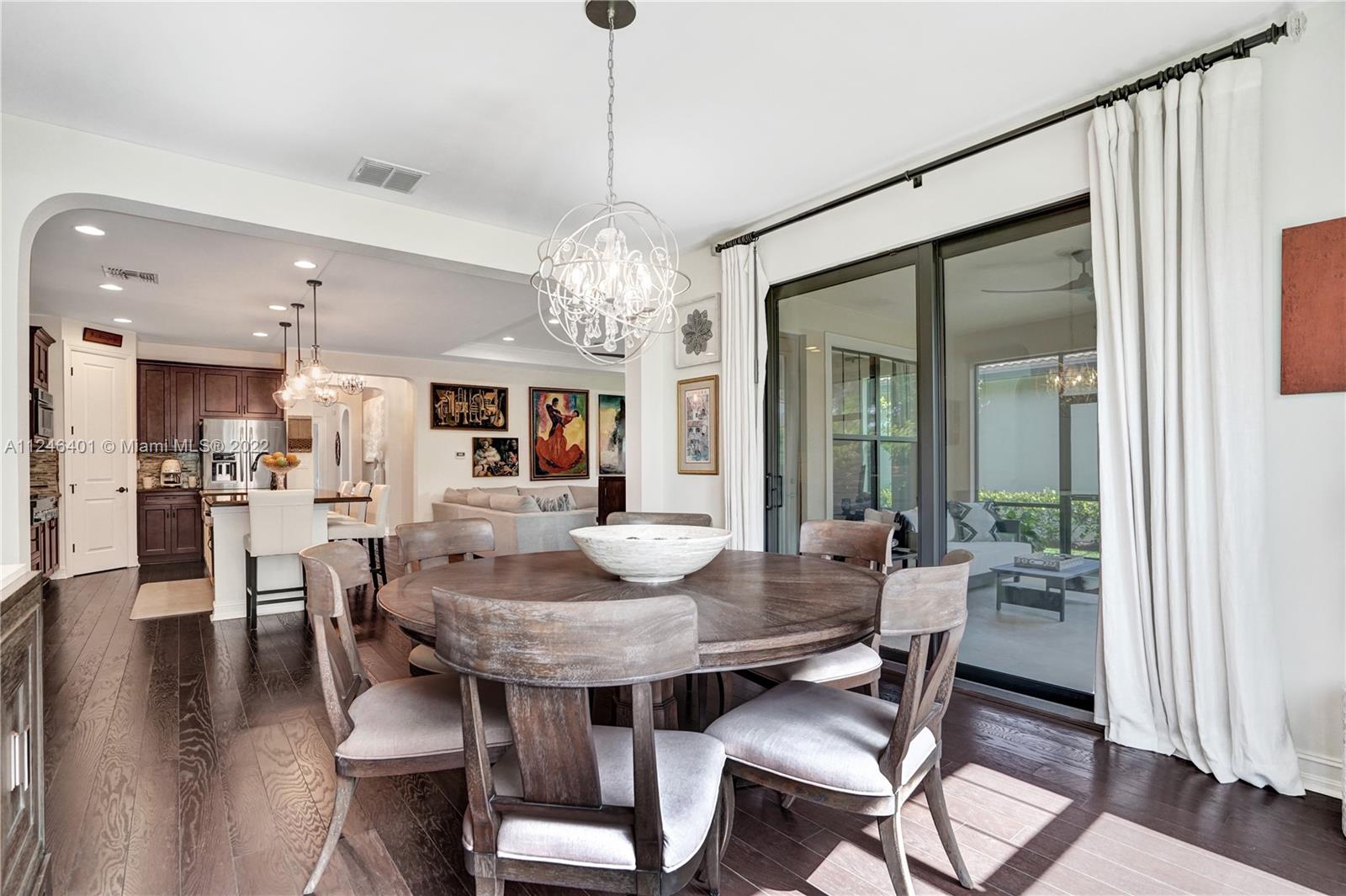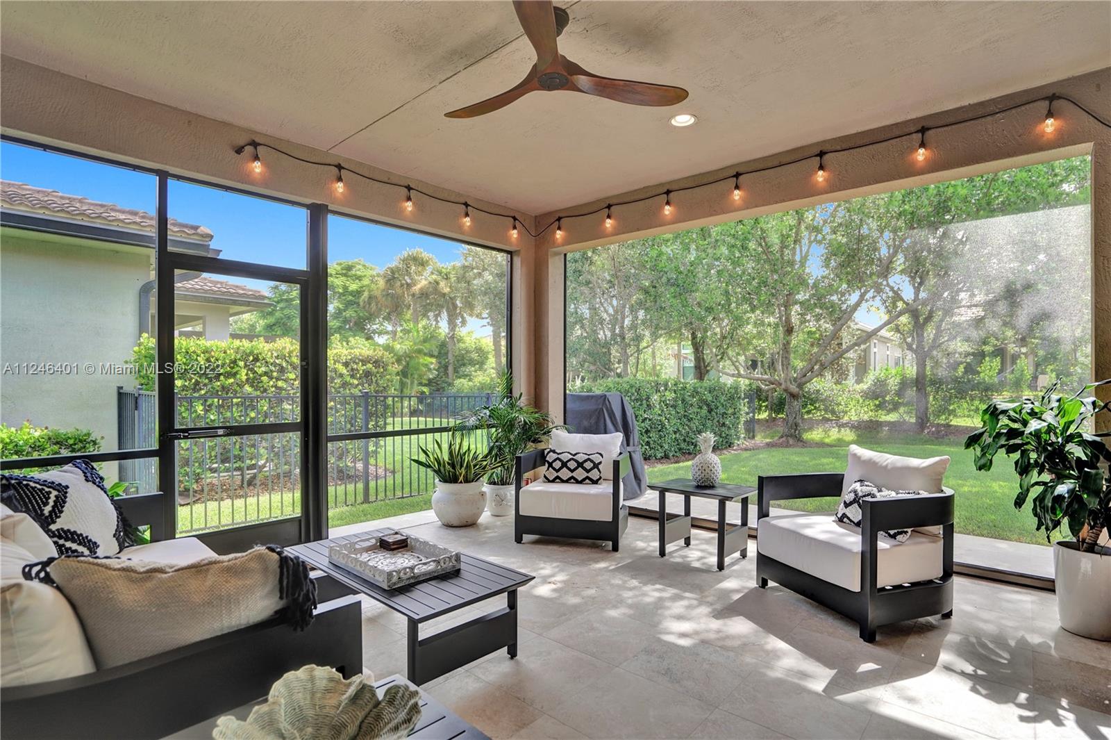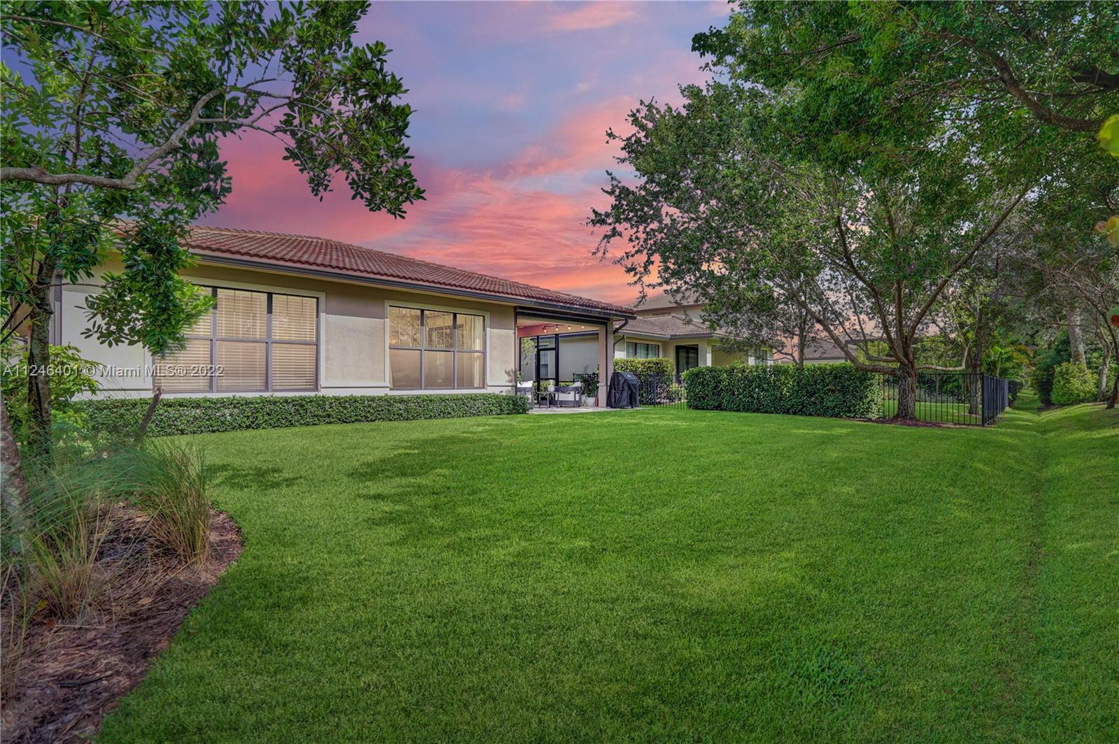 This upgraded Kensington Model offers a triple-split floor plan and features stunning wood floors and coffered ceilings. The chef’s kitchen boasts custom cabinetry, quality appliances including double ovens and gas cooktop, and a breakfast bar with ample seating. The light-filled living room and separate formal dining room are surrounded by a wall of windows and doors and seamlessly connect to the screened Lanai with retractable enclosure. The large, private backyard offers great space to add a pool. The interior offers four elegant and generously-sized bedrooms and three stylish bathrooms. Watercrest is a resort-style gated community with a host of amenities including a clubhouse, pool, fitness center, tennis, dog park and more. Parkland is known for A-rated schools and amenities.
