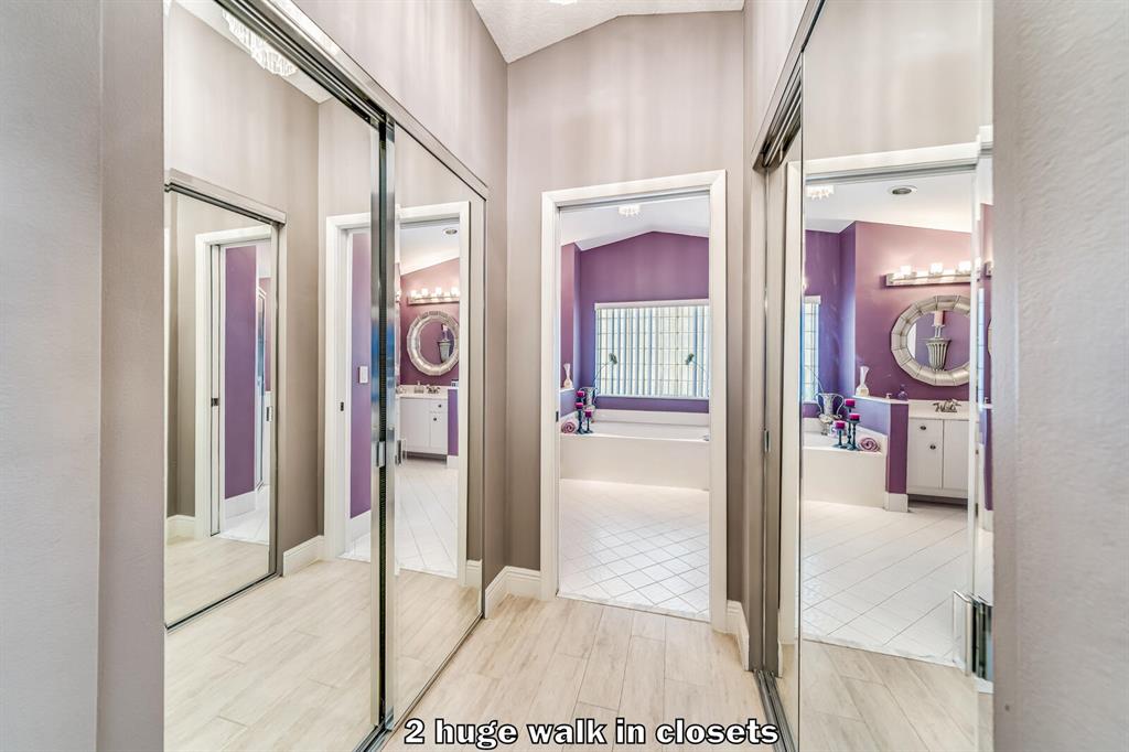 Dramatic entrance w/soaring 2 story high volume ceilings & picturesque wall of windows that flood the inside w/natural light. Enjoy the sense of openness, volume & space. Fabulous foyer w/glass tile mosaic inlay. Porcelain tile downstairs & real wood floors on staircase & loft area. Newer plush carpet in 2 upstairs bedrooms. Tons of recessed lighting. Featuring 3 spacious bedrooms plus big loft area, 1st floor master suite w/two walk-in fitted closets, master bath w/ double sink vanity, soaking tub and step-in shower. 2 additional bedrooms upstairs w/Jack & Jill bathroom PLUS a Huge loft upstairs that could be used for office or playroom area. Everything is oversized...Huge living & dining room...plus family room off the large gourmet eat-in kitchen which features granite countertops.