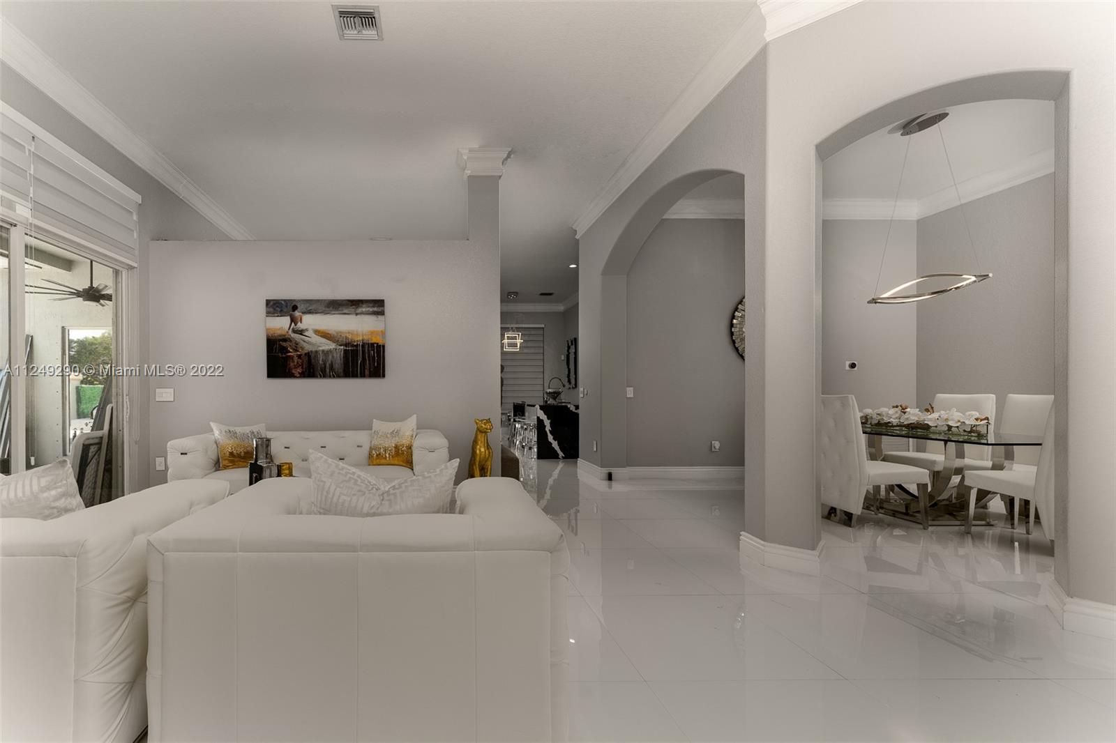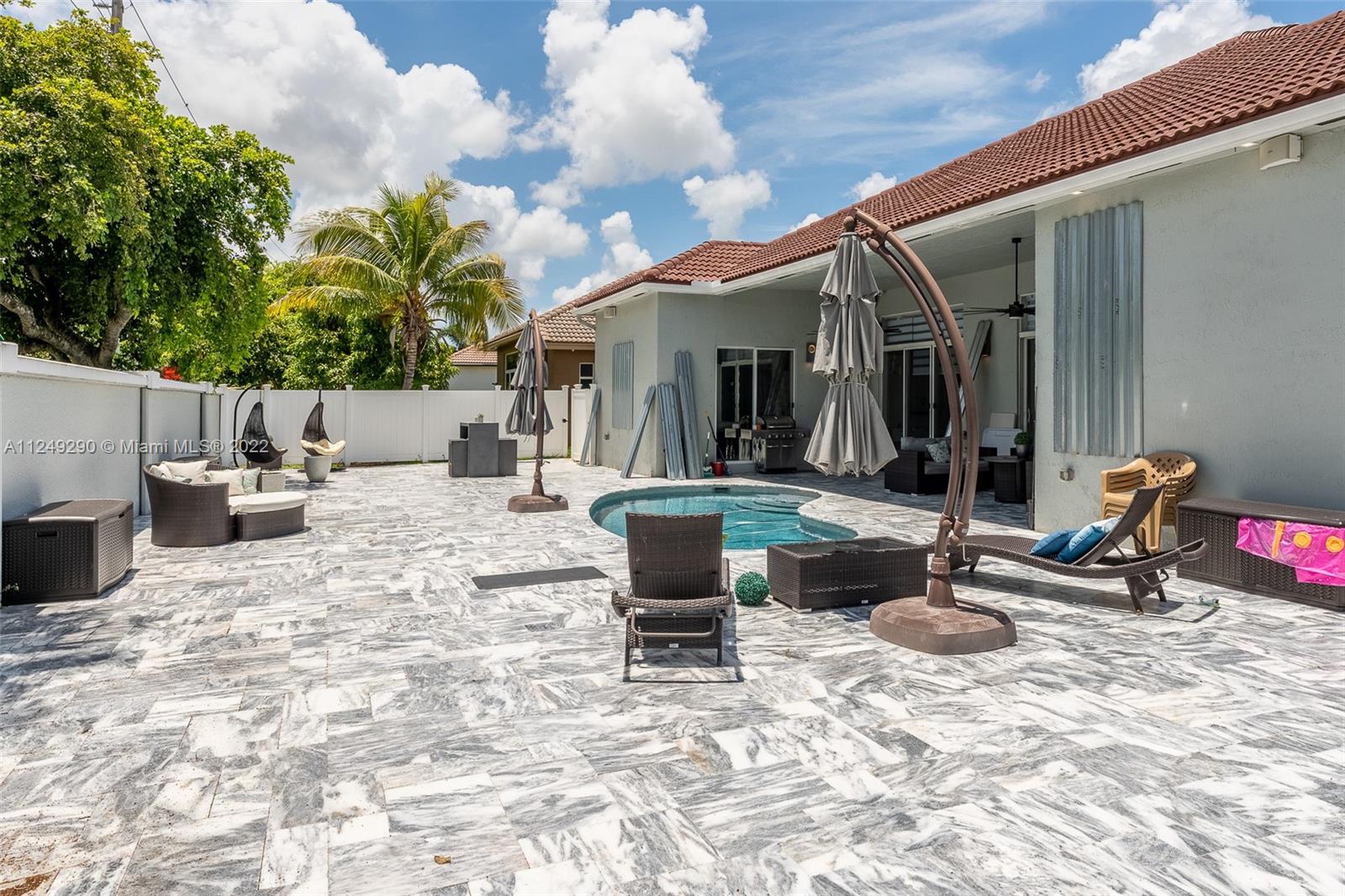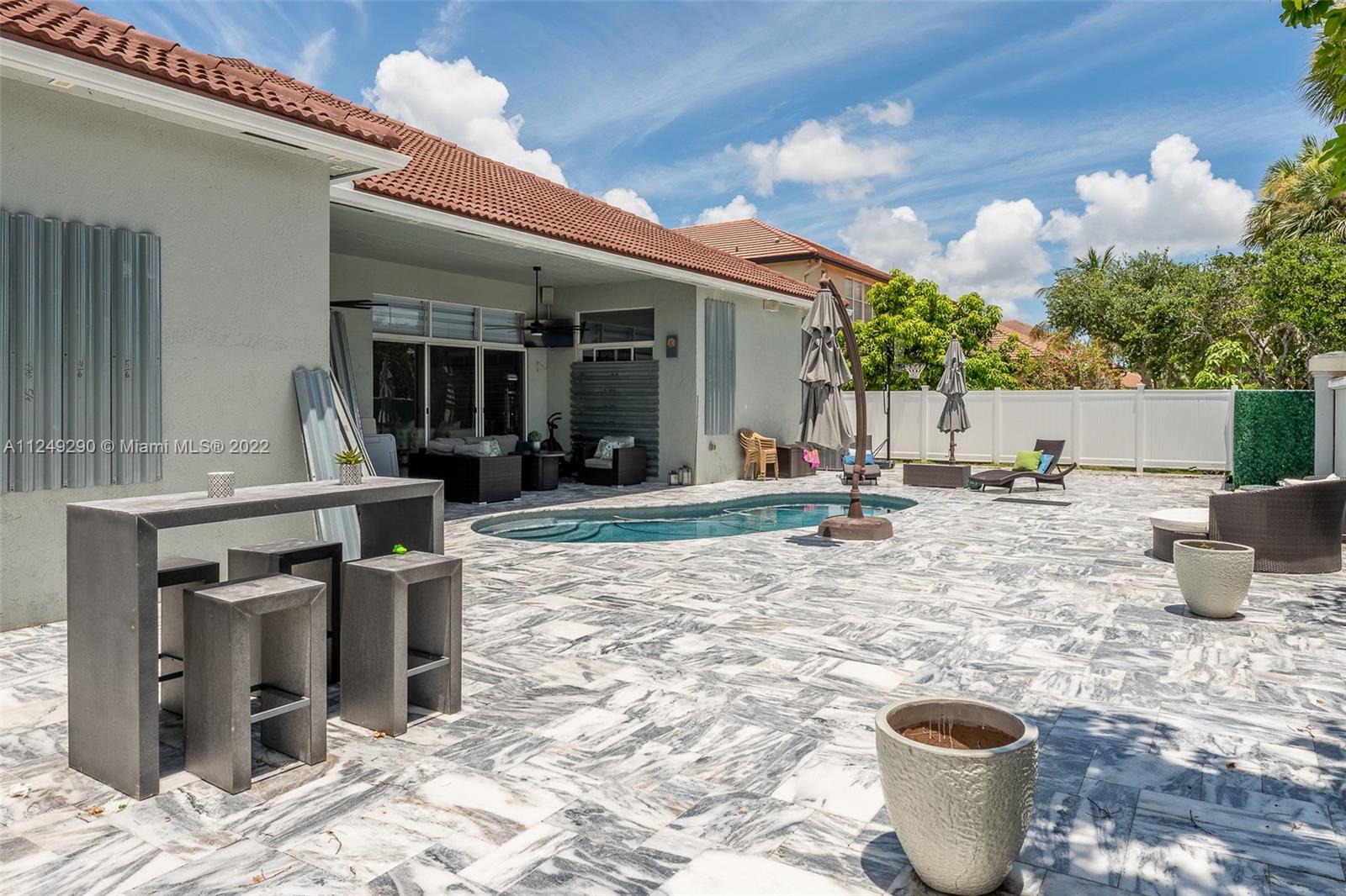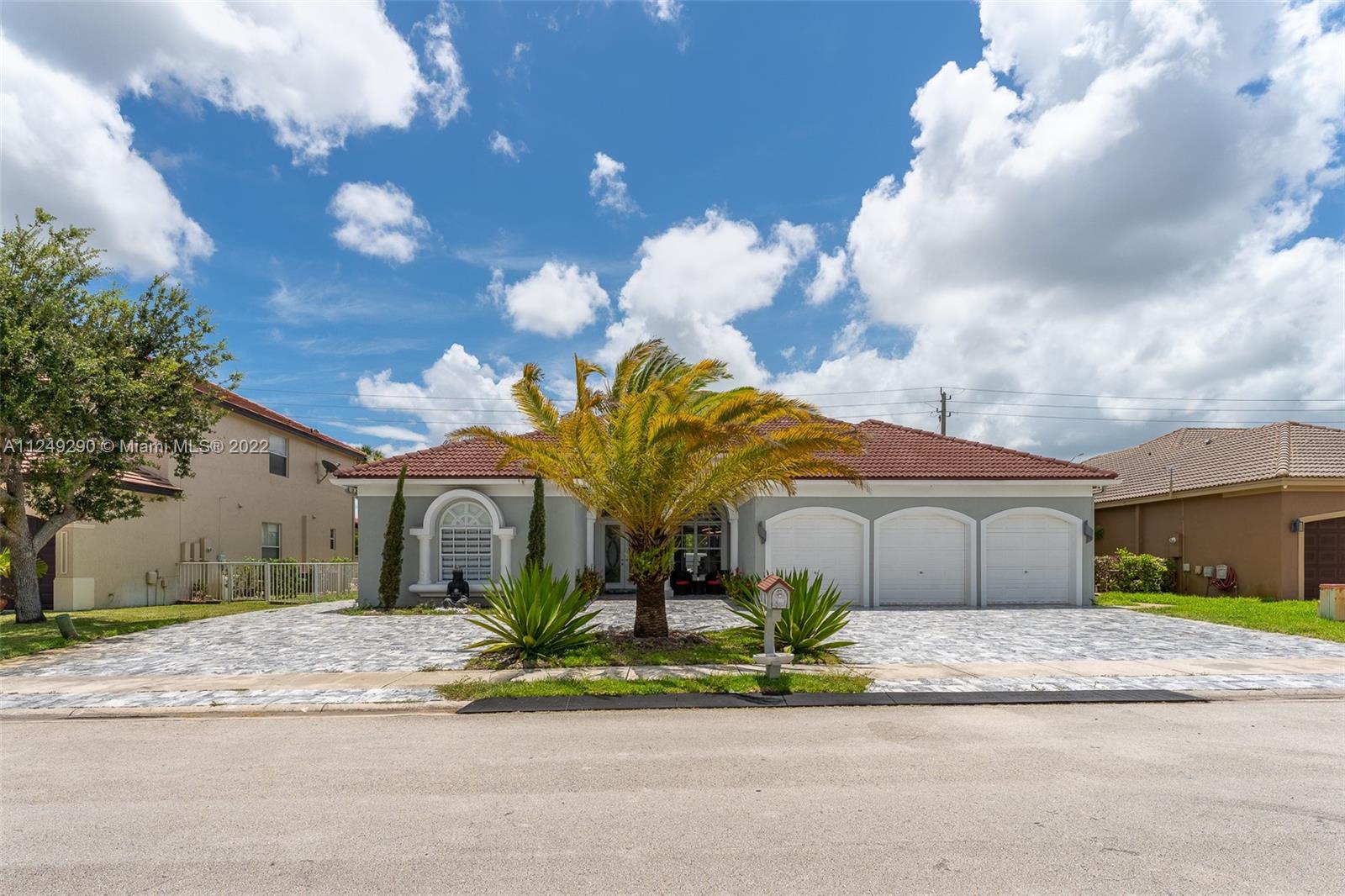 LOCATION!!! FURNITURE IS NEGOTIABLE. Sold AS IS... Ready to move in. Amazing opportunity to own a home in the exclusive community of Estates of Pembroke Shores! The best price on this home 4 bed 3 bath w/pool & 3 car garages. Interior features include tiled throughout entire home, volume ceilings and large master suite with big closets. This excellent property with kitchen and bathrooms, was renovated and updated with top quality technology and materials, with camera system included, marble pavers were put on the entire exterior of the house including the pool area. Guard gated community that is in the heart of Pembroke Pines and is located in a great school district- close to restaurants, supermarkets, parks, plazas, shopping mall, hospitals, expressway.