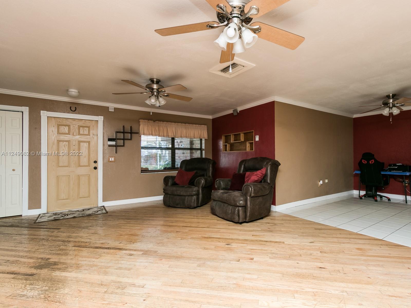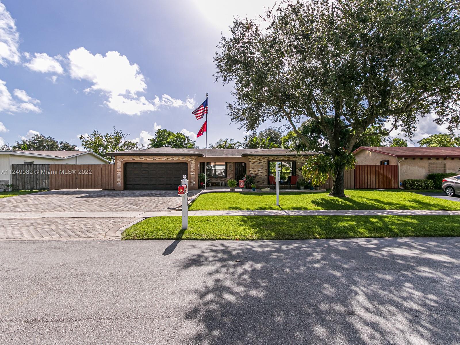 Don't miss out! SPACIOUS 4/2 home with a 2 car garage plus a separate 1 car with storage. X- long concrete driveway to store your boat and other toys while tucked out of sight behind the double gates. Brick paver driveway and patio. Formal living and dining rooms. Very large family room AND country kitchen. Knock down on walls and ceilings.NO POPCORN! Crown molding and decorative door moldings. Laminate and wood flooring. NO CARPET! Remodeled master bathroom and shower with wood cabinets and granite counter and gorgeous tile. Master has a walk in cedar lined closet. Separate electric for a generator and able to connect to an air compressor in garage. Hurricane shutters through out. This home reflects true pride of ownership! Desirable Pembroke Pines neighborhood has no HOA .Fully fenced.