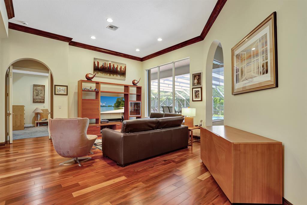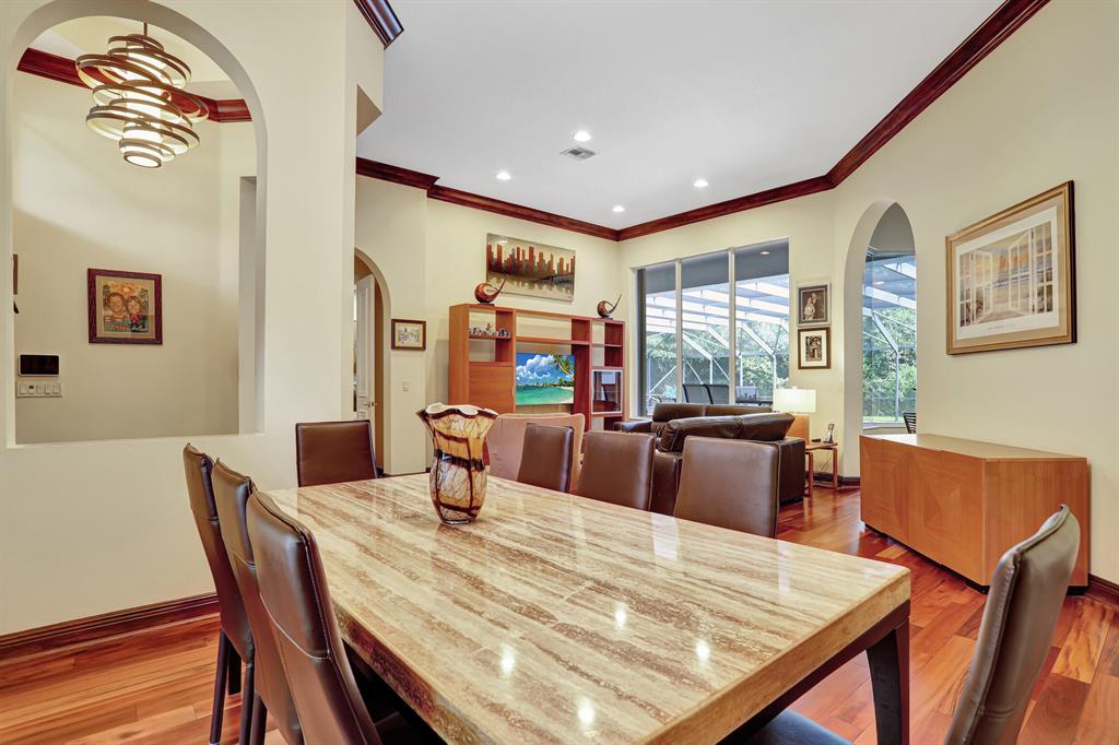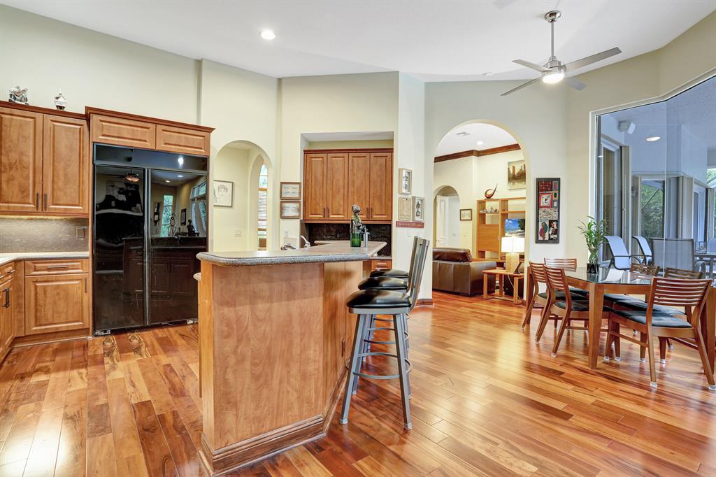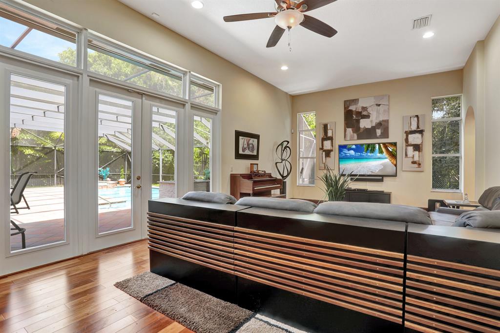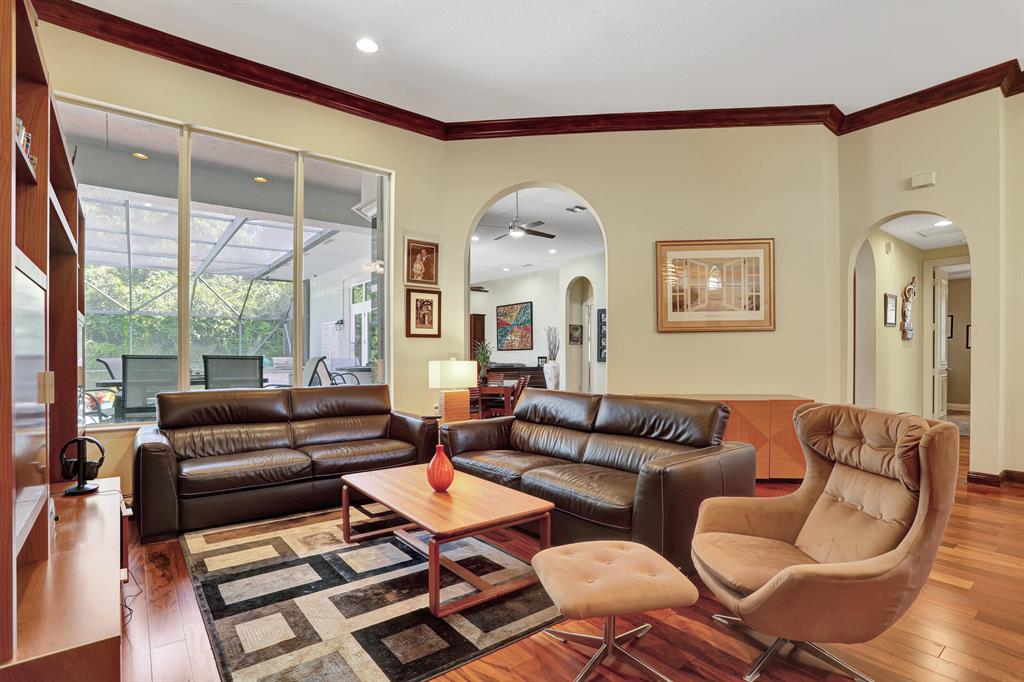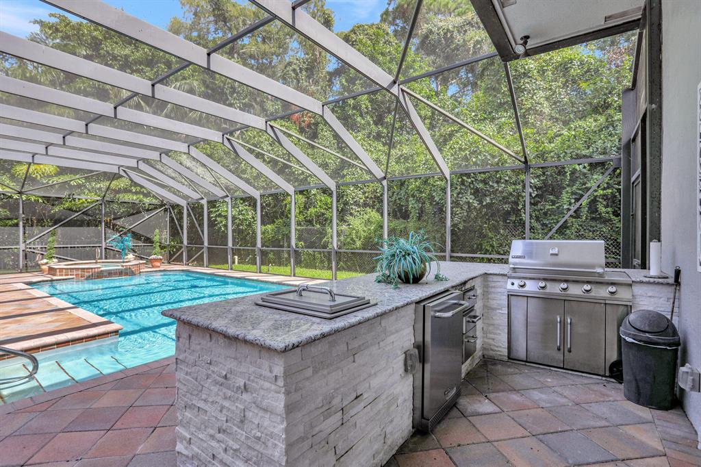 BEAUTIFUL HOME IN HIGH DEMAND COMMUNITY. Only home available in the ESTATE SECTION OF TERNBRIDGE. Walk in to 14FT Coffer & Volume ceilings. Split floorplan, formal living & dining room. Oversized outdoor screened in patio. Cabana bath, lush landscaping backing up to Preserve for ultimate privacy. Entry to patio from living room New impact French Doors & owner suite. Plenty of room for outdoor entertaining. Then kick it up a notch with your new summer kitchen while you lounge by the pool & spa. His & Her walk in closets. Gas stove & double ovens. Propane for heated pool spa & gas stove .3 car garage w/ epoxy garage flooring. Both A/C's 2019. Sidewalks w/ beautiful tree lined streets. Enjoy low traffic in the Estate Section for peaceful living. 24hr Manned Gate, A Rated Schools. LOW HOA.