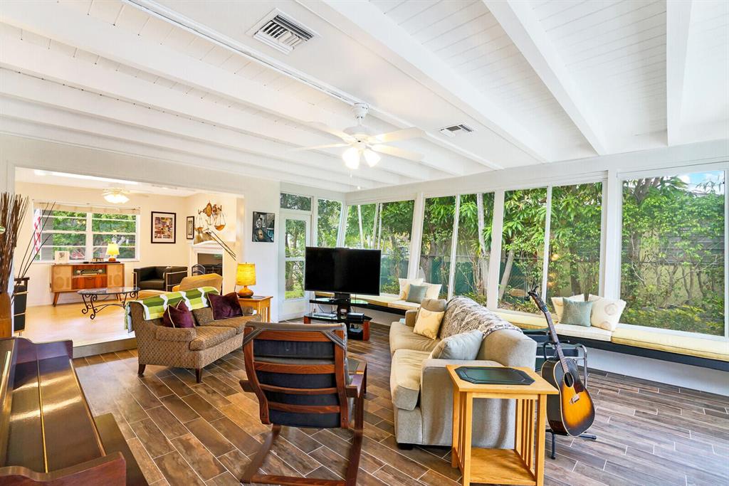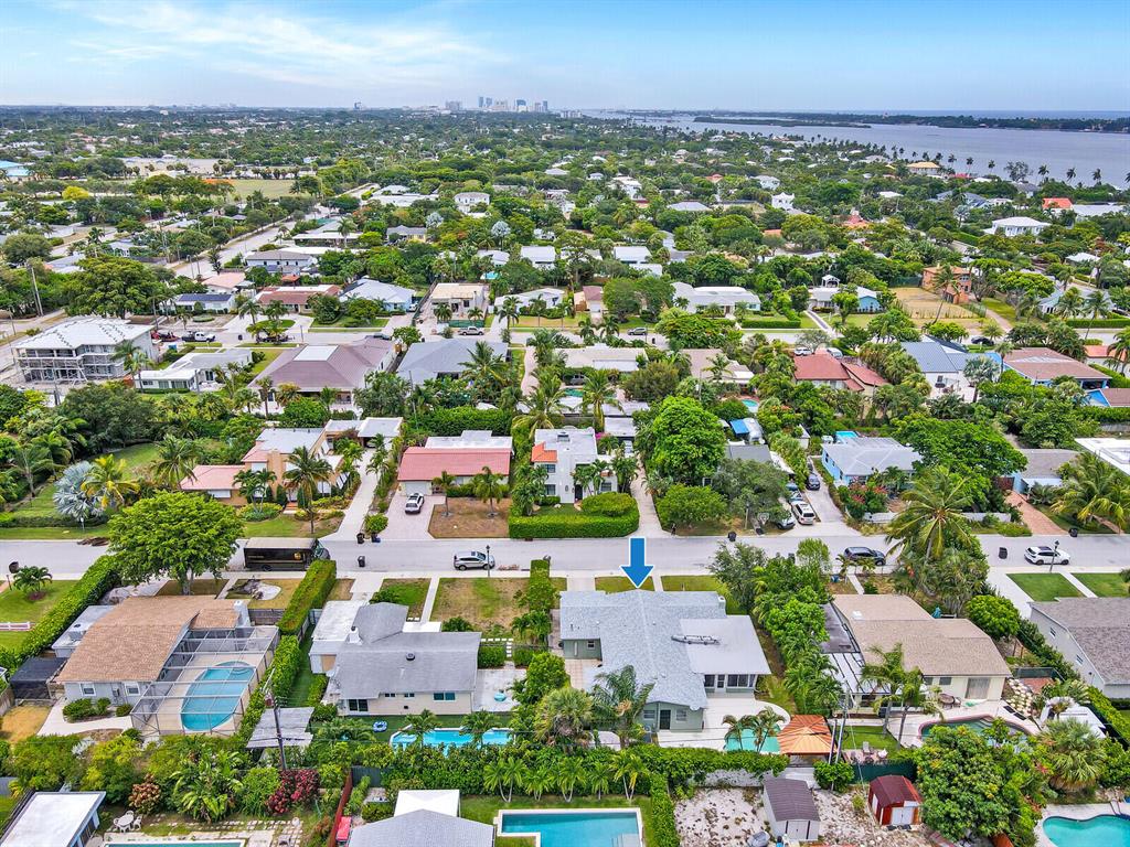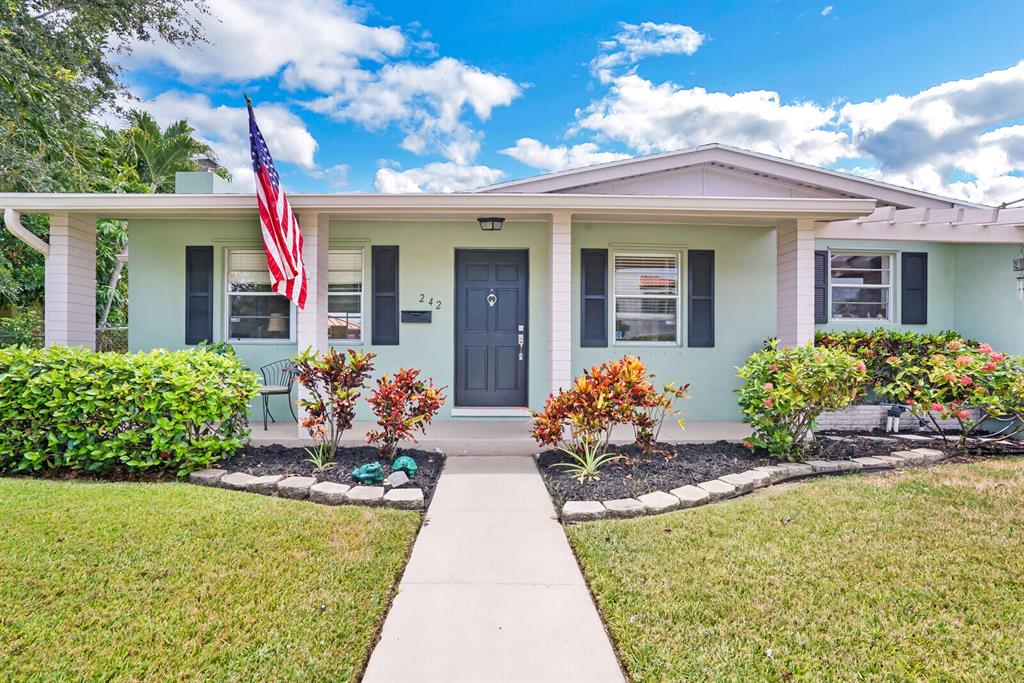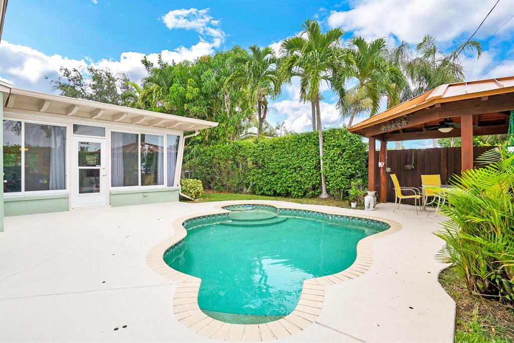 Sophisticated, retro European flair to this mid-century modern home located in the highly sought-after area South of Southern (SoSo) East of Olive! The home is 2 bedrooms, 3 full bathrooms with 2 multipurpose rooms that can be re-imagined to be 2 additional bedrooms, or office, den, or gym. This home has been tastefully updated and is meticulously maintained. The kitchen is well appointed with breakfast bar open to dinning and seating area. The home is light and bright with expansive windows along the back of the home overlooking the pool and outdoor gazebo seating deck. Additional features include wood beamed ceilings, a front porch that enhances the curb appeal and exudes charm. Within close proximity to Flagler Drive with bike trail, vibrant Clematis , Rosemary Square the Intracoastal