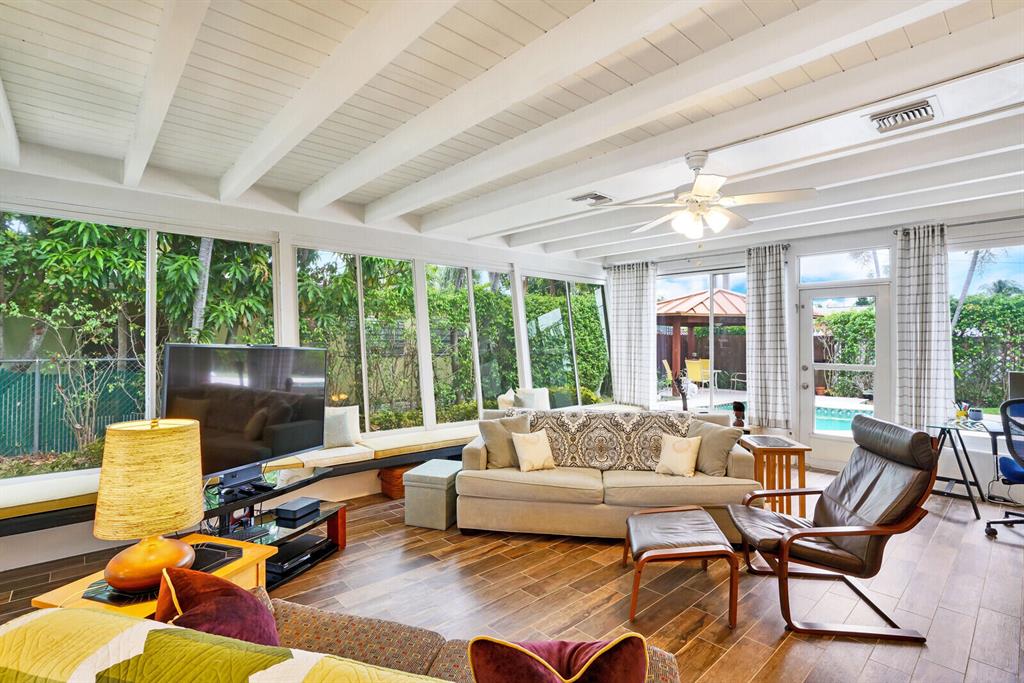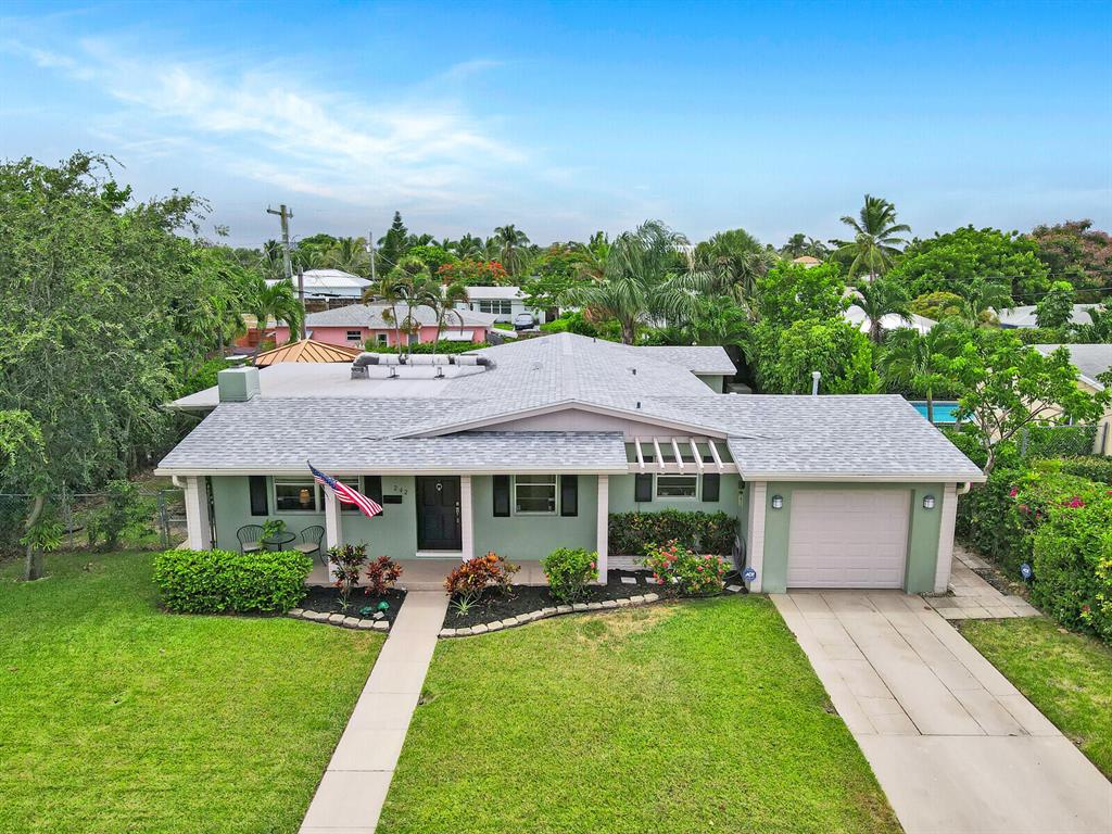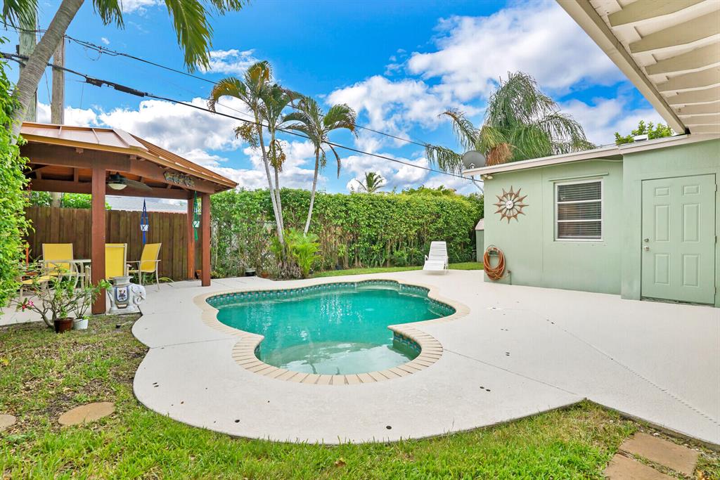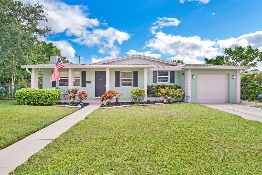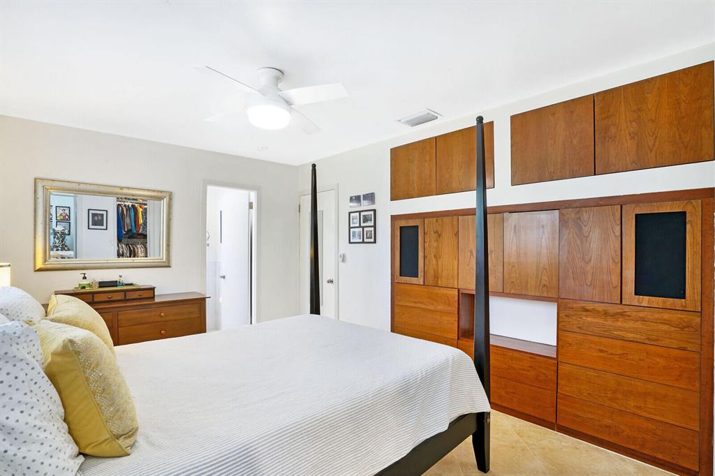 Sophisticated, retro European flair to this mid-century modern home located in the highly sought-after area South of Southern (SoSo) East of Olive! The home is 2 bedrooms, 3 full bathrooms with 2 multipurpose rooms that can be re-imagined to be 2 additional bedrooms, or office, den, or gym. This home has been tastefully updated and is meticulously maintained. The kitchen is well appointed with breakfast bar open to dinning and seating area. The home is light and bright with expansive windows along the back of the home overlooking the pool and outdoor gazebo seating deck. Additional features include wood beamed ceilings, a front porch that enhances the curb appeal and exudes charm. Within close proximity to Flagler Drive with bike trail, vibrant Clematis , Rosemary Square the Intracoastal