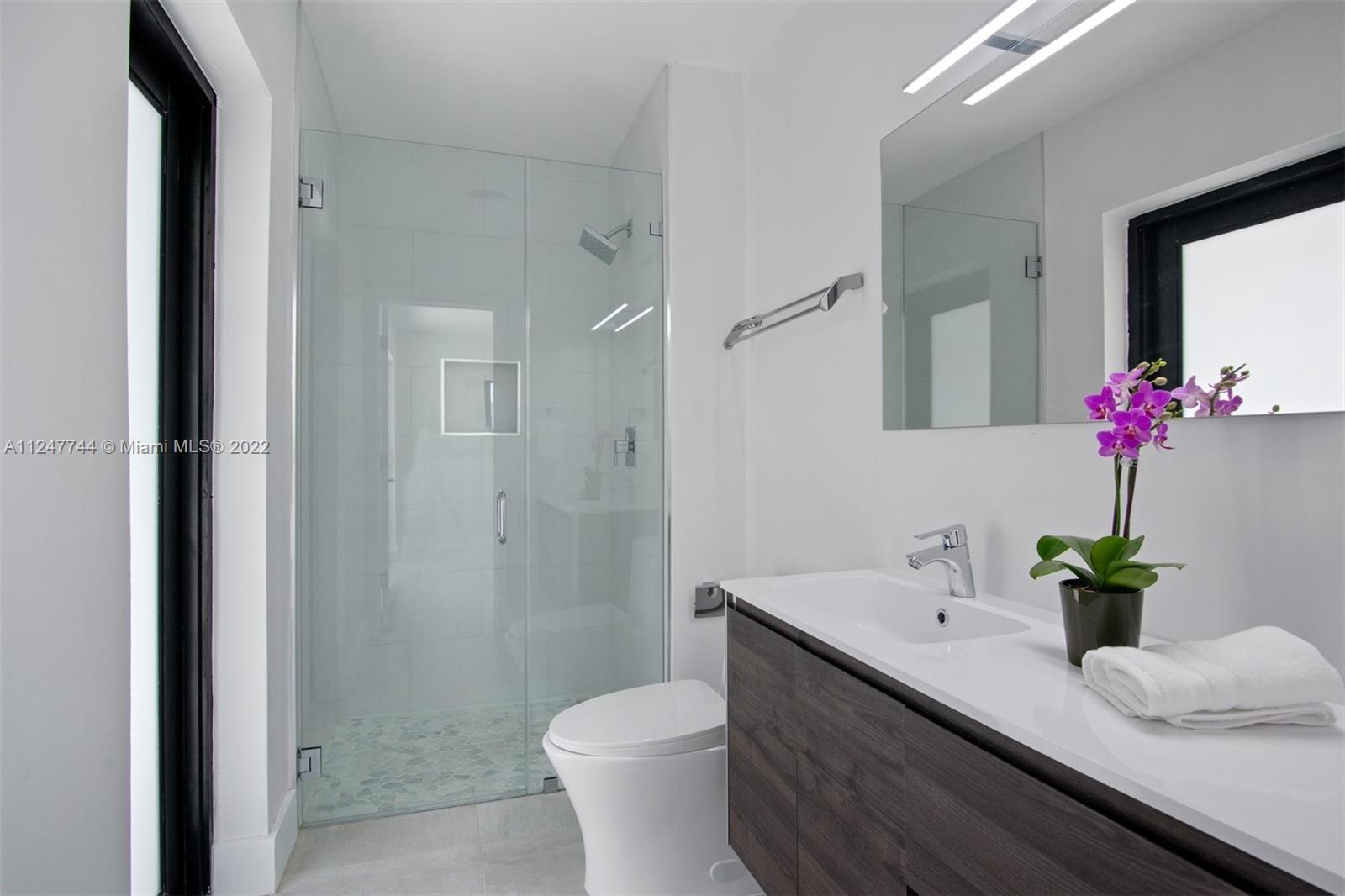 Stunning 4 bedroom completely renovated pool home in Pinecrest. This home has it all, new roof, new impact windows and doors, new floors, new plumbing, new bathrooms and new kitchen. The property is gated and walled in with a beautiful stone wall. The pool patio area is very large and will make a great area for relaxing. This is a 10!