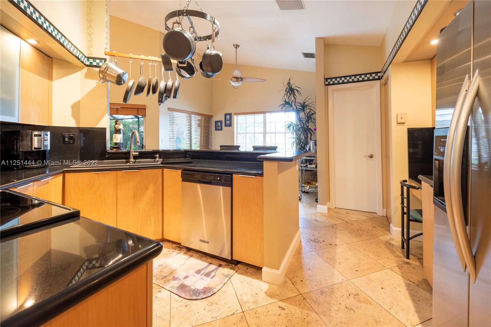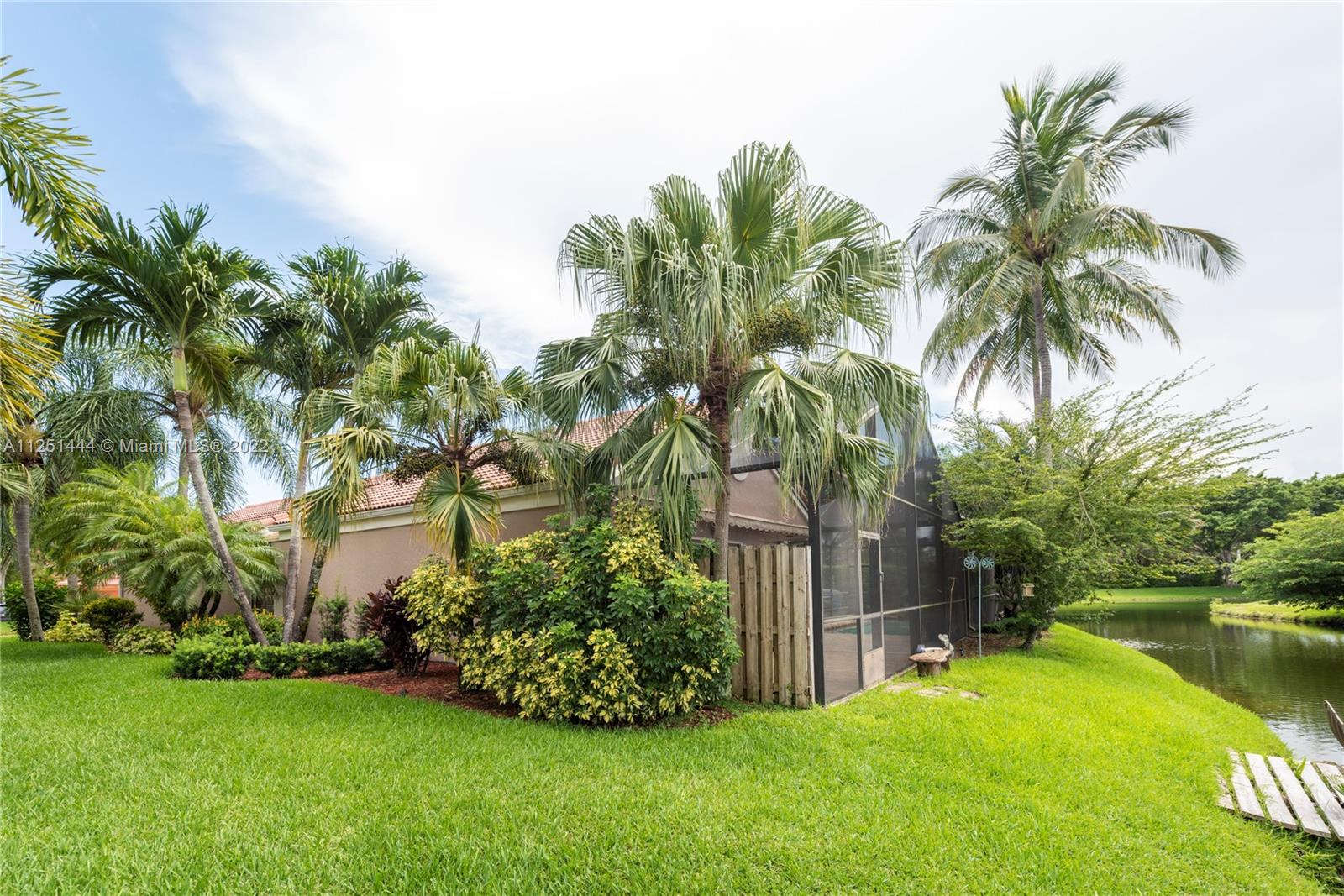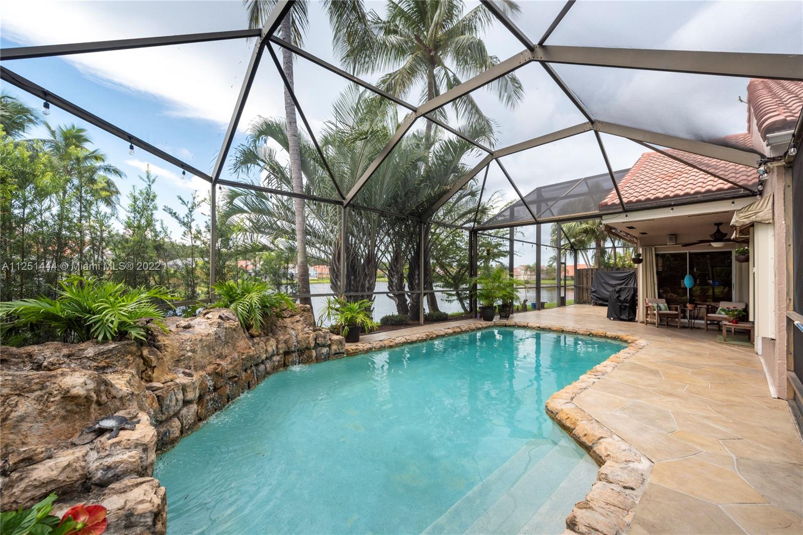 Beautifully updated one story pool home with spectacular lake views nestled on a cul-de-sac lot in the desirable Mayfair at Jacaranda Community. Impeccably maintained. Here you will be greeted by vaulted ceilings and a nice bright living/dining room followed by a gourmet kitchen with granite counters, breakfast bar, and stainless appliances. The owners suite features sweeping lake views, a large walk-in closet and en-suite bath with separate tub/shower and granite counters. The back screened patio is perfect for gatherings or your own personal oasis. Other features include a Cabana bath, Wet Bar, Atrium, Front Load Washer/Dryer, 2 Car Garage, Roof (2006), A/C (2015), Freshly Painted Exterior. Low HOA.