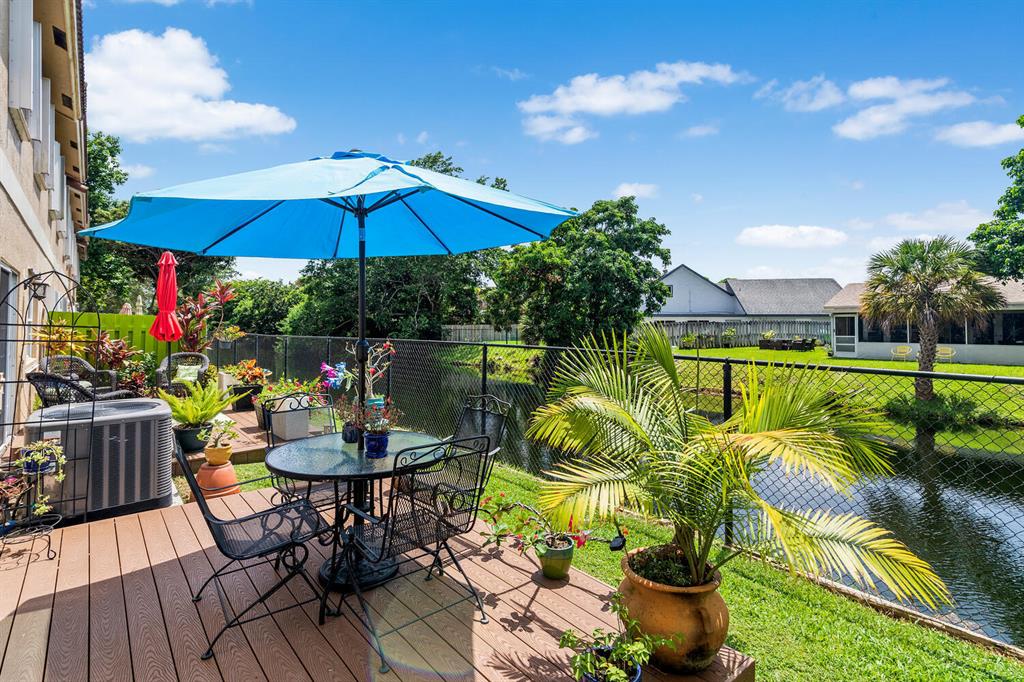 This is the one! Gorgeous 3 bedroom, 2.5 bathroom, waterfront, townhouse located in Springtree Cove West. Features include an a beautiful kitchen with shaker style cabinetry, quartz countertops and stainless steel appliances, updated bathrooms, plank style flooring throughout, a large master suite with walk-in closet and custom built-ins, interior laundry room, private fenced patio with deck and view of the canal, and a 1 car garage with two additional parking spaces. Low HOA fees include lawn care, pest control, and community pool. Ideally located in the heart of Sunrise near shopping, dining, and both Sawgrass Expwy and Turnpike.