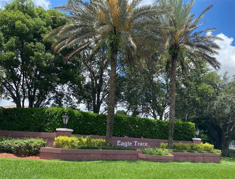 THIS IS A STEAL TO LIVE IN LUXURY @ EAGLE TRACE! MOTIVATED SELLER! BEAUTIFUL & IMMACULATE 3 BEDROOM, 2 BATH HOME WITH A 2 CAR GARAGE IN THE PRESTIGIOUS GEORGETOWN AT EAGLE TRACE COMMUNITY. THIS HOME FEATURES A SPLIT FLOOR PLAN WITH VOLUME CEILINGS THROUGHOUT. BRAND NEW AC & HOT WATER HEATER. LOTS OF OPEN SPACE AND LIGHT IN THIS GREAT HOME. METICULOUSLY MAINTAINED AND MOVE IN READY OR DO A FEW UPDATES TO MAKE IT YOUR OWN. EXCELLENT NATURAL LIGHT WITH TWO SETS OF FRENCH DOORS LEADING TO YOUR PRIVATE SCREENED IN PATIO. ENJOY ALL THE GREAT AMENITIES EAGLE TRACE OFFERS, INCLUDING A COMMUNITY POOL, GOLF COURSE AND CLAY TENNIS COURTS INSIDE THE COMMUNITY! COMPLETE SECURITY AND PRIVACY WITH 24 HOUR GUARD GATED ENTRANCE. ALL INFORMATION DEEMED ACCURATE BUT NOT GUARANTEED.