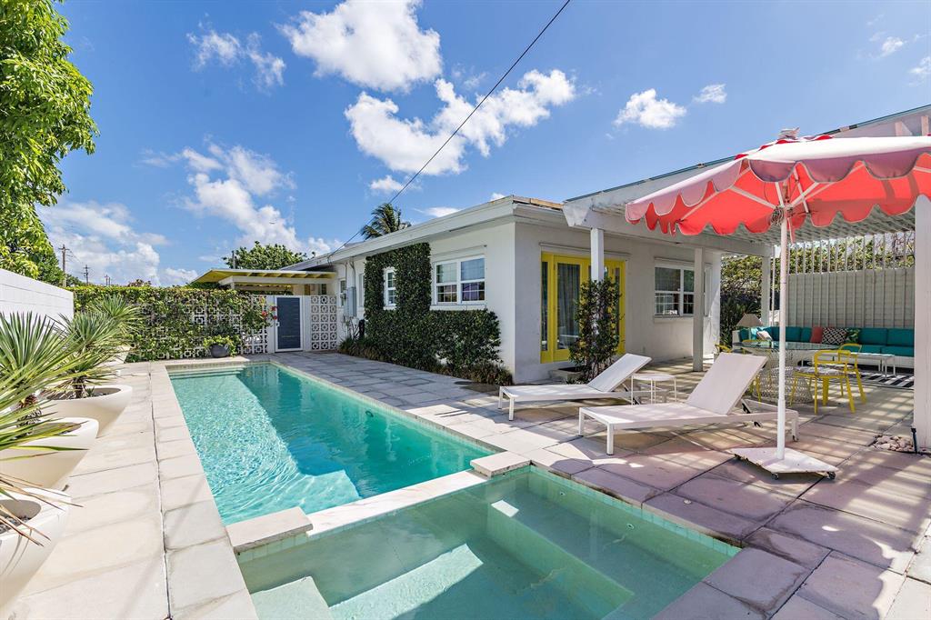 This stunning, professionally decorated 1950s home retains all its original mid-century modern character but has been updated throughout for a fully realized 21st century luxury living experience. It could be retained in its current status as a highly successful VRBO rental (generating annual gross revenue of $87,000), or make it your own wonderfully private oasis retreat, or forever home. The grounds have been redeveloped to maximize outdoor living at its finest, with all-new landscaping, new remote controlled heated pool and jacuzzi, paved backyard, lighting, pergola, deck, driveway, CBS privacy enclosures, charming breeze block perimeter fences. Inside, original high ceilings and ample closets have been complimented by multiple upgrades, including all-new bathrooms, spacious all new