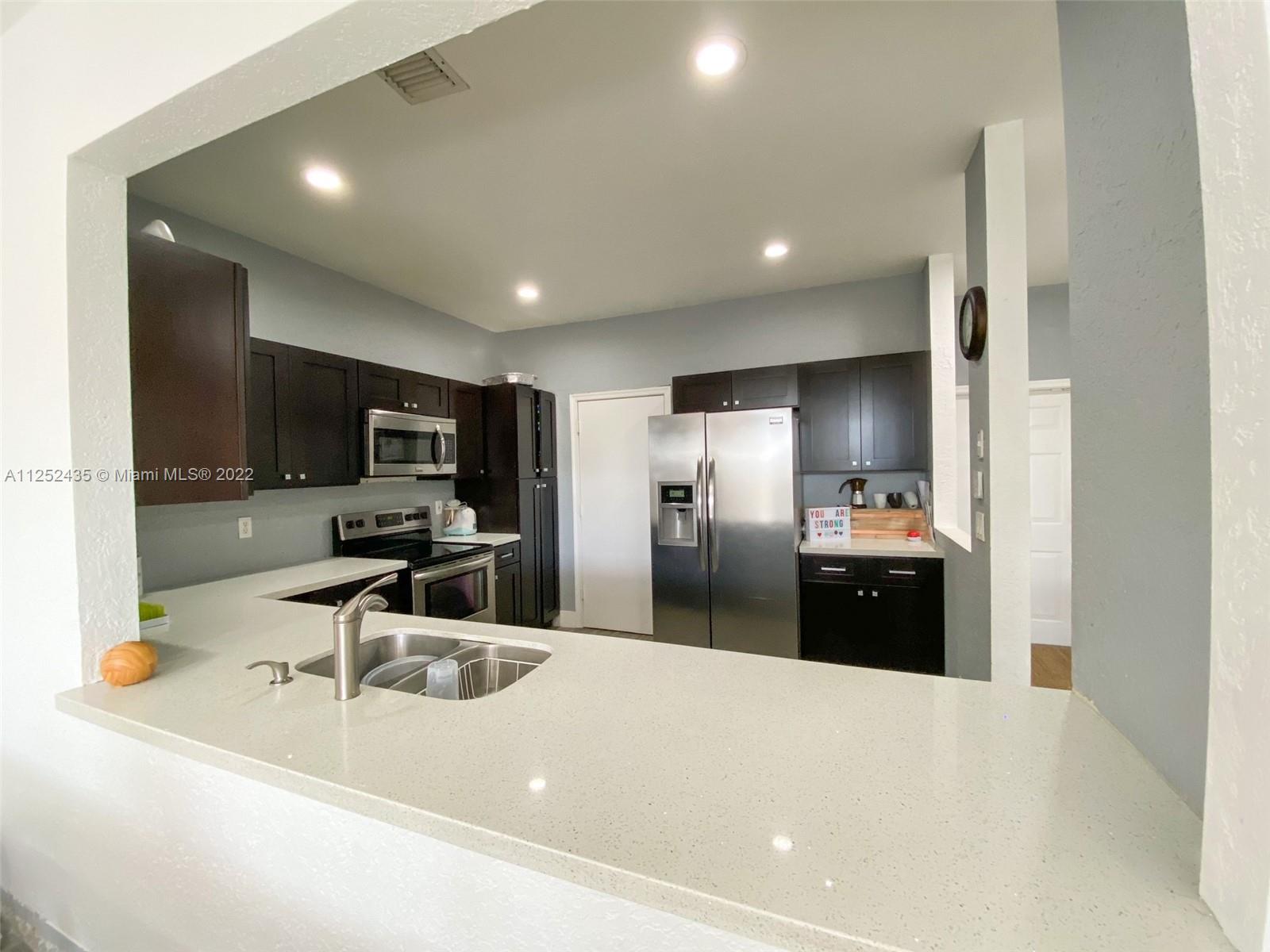 BEAUTIFULLY REMODELED TOWNHOME!! features 3 bed 2 1/2 bath 1 car garage , high ceilings upgraded kitchen with quartz countertops, stainless steel appliances , tastefully upgraded modern bathrooms, enjoy the screened patio, conveniently located at walking distance of supermarkets , near expressways and schools, gated community with security at nights