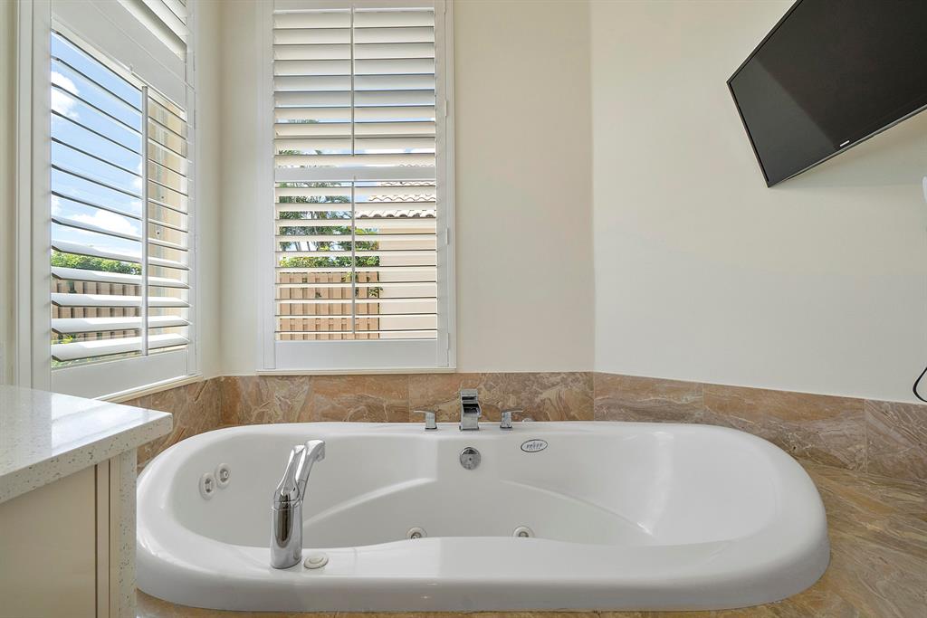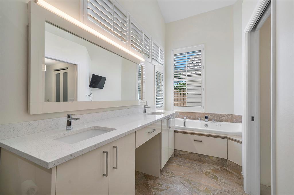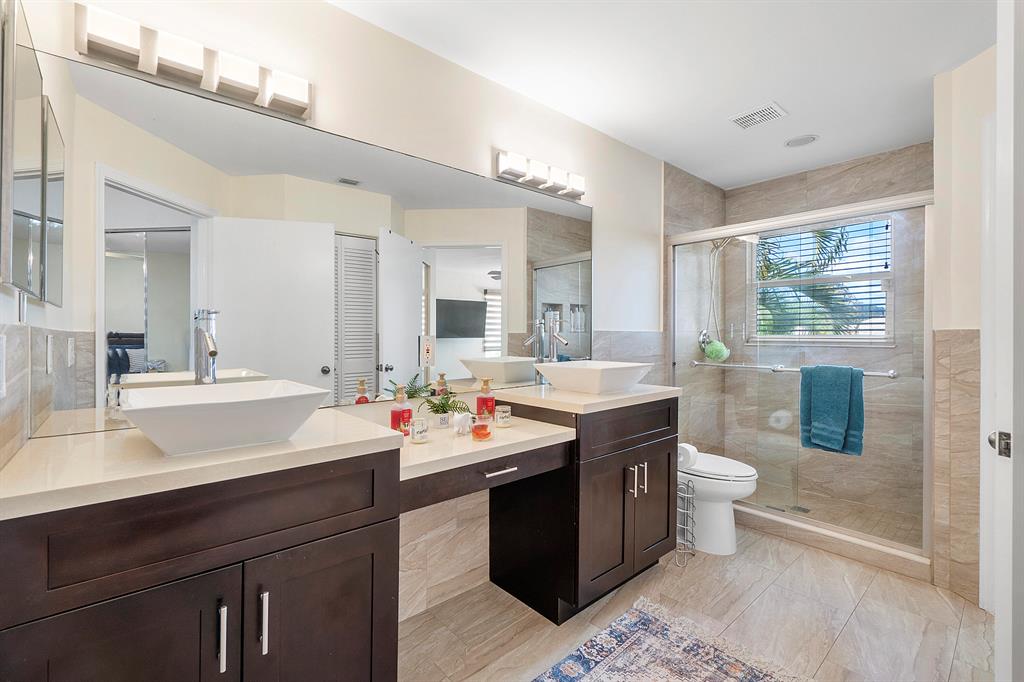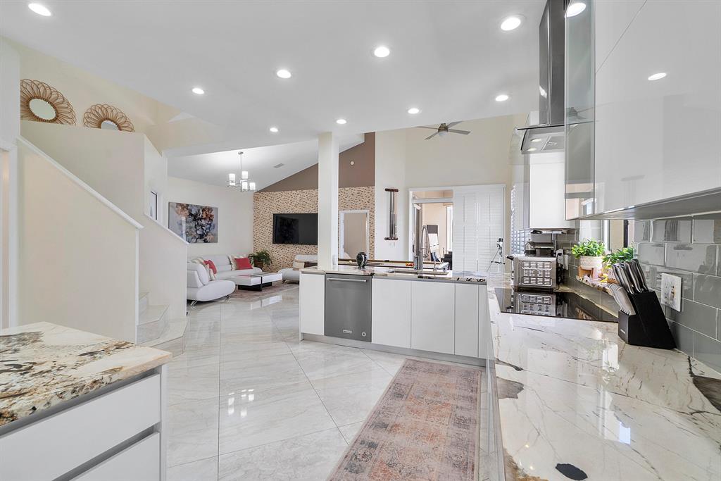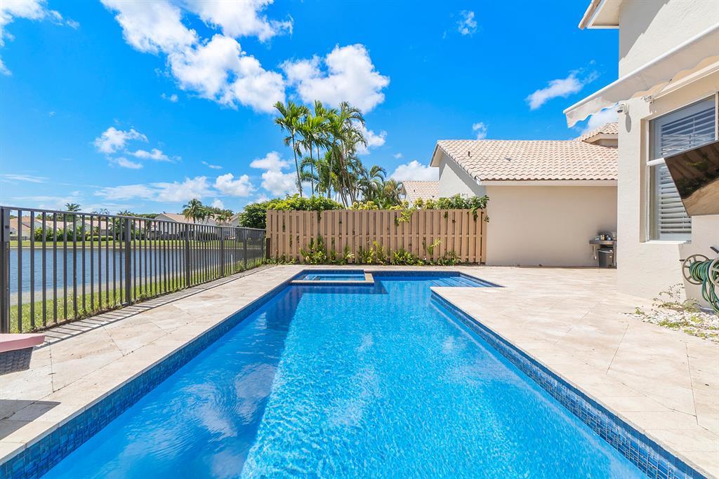 As soon as you walk in, you'll be amazed! This gorgeous, completely updated, 3 bedroom/2.5 bathroom home has an expansive lakefront view and much, much more! This home offers the perfect layout with two separate living areas, Master bedroom on the ground floor and two private guest rooms upstairs. Volume ceilings thru-out and large windows, with beautiful Plantation Shutters lend an open, sunny, spacious ambiance to this residence. This home exudes warmth. Neutral colors, warm porcelain/ceramic tile, Chef's Kitchen, newly resurfaced saltwater pool, newer HVAC, and the country club lifestyle of the newly designed state of the art Broken Sound Country Club. *Membership Required*