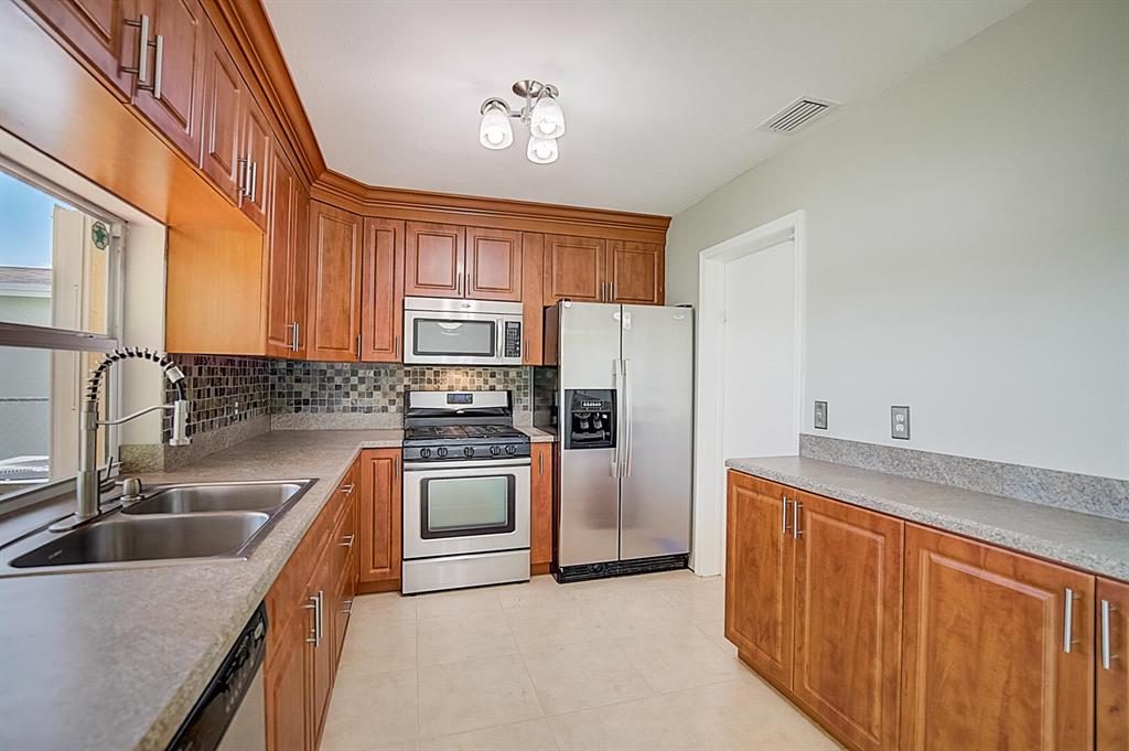 Welcome to this gorgeous neighborhood! Terrific 3 bedroom and 2 bath home with a 1 car garage. You'll enjoy preparing meals in the gorgeous kitchen with sleek counters, tiled backsplash, stainless appliances, and beautiful spacious cabinetry. Lighting, ceiling fans, and fixtures flow throughout. The main bedroom boasts a private ensuite. Other bedrooms offer laminate floors, ceiling fans, and sizable closets. Relax with your favorite drink in the fenced in backyard with a patio and lush grass. Don't miss this incredible opportunity. This home has been virtually staged to illustrate its potential.