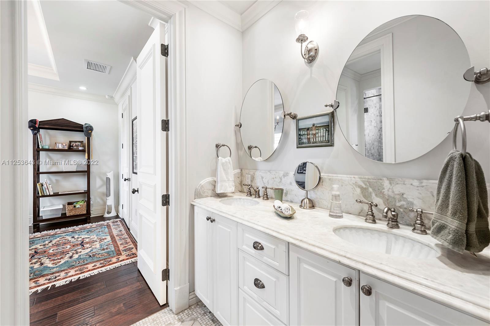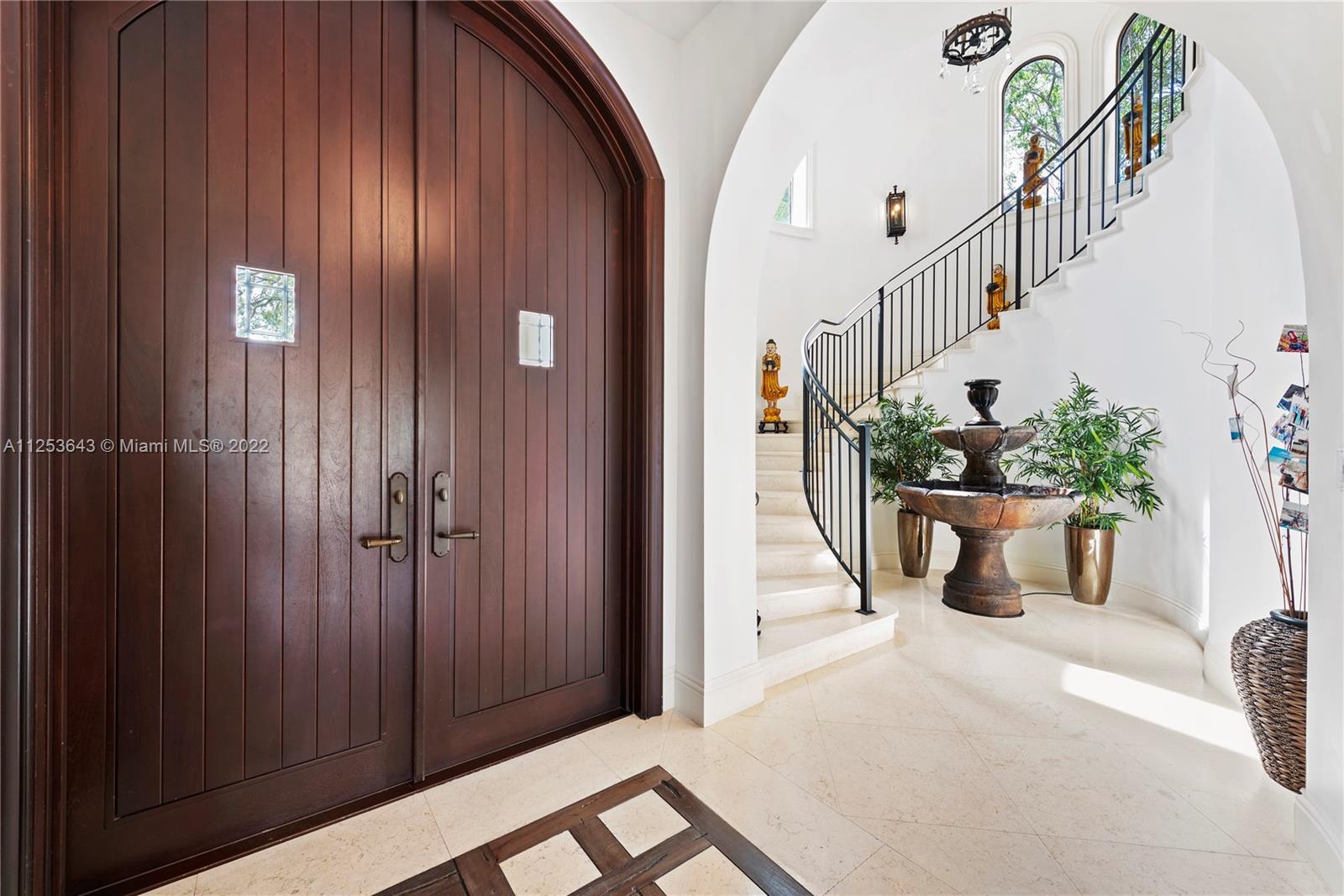 Stunning 2008 built home w/ beautiful details & great water access w/ 100’ on the water & no bridges to Bay in guard gated community of Sunrise. Convenient to Coconut Grove, but ideally situated in Coral Gables this home offers wonderful outdoor spaces including 14,000 sf lot, pool & Jacuzzi, deep covered patio w/ summer kit, 25 ton boat lift, keystone patio & storage below patio. Indoors is as ideal w/ 6br/5.5 ba, office w/ built in fireplace, custom wine cooler w/ tasting rm, white/bright kitchen w/ top of the line appliances, breakfast nook surrounded by windows, butler’s pantry w/ wine cooler, primary suite w/ private balcony, beautiful bathrm w/ separate tub & shower, dual vanities, large closets, renovated baths, laundry rm, 2 car gar w/ room for lift, full house generator.