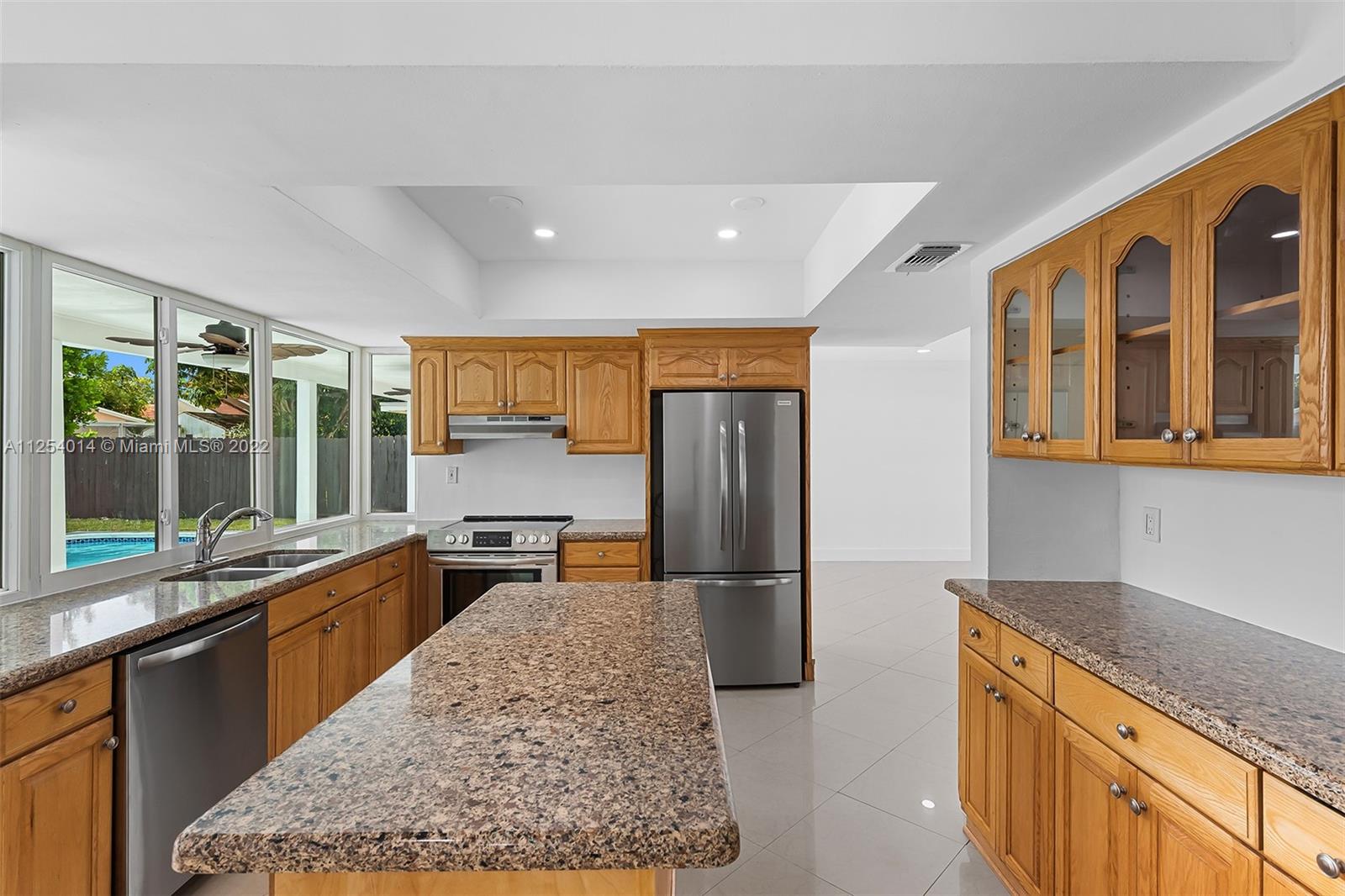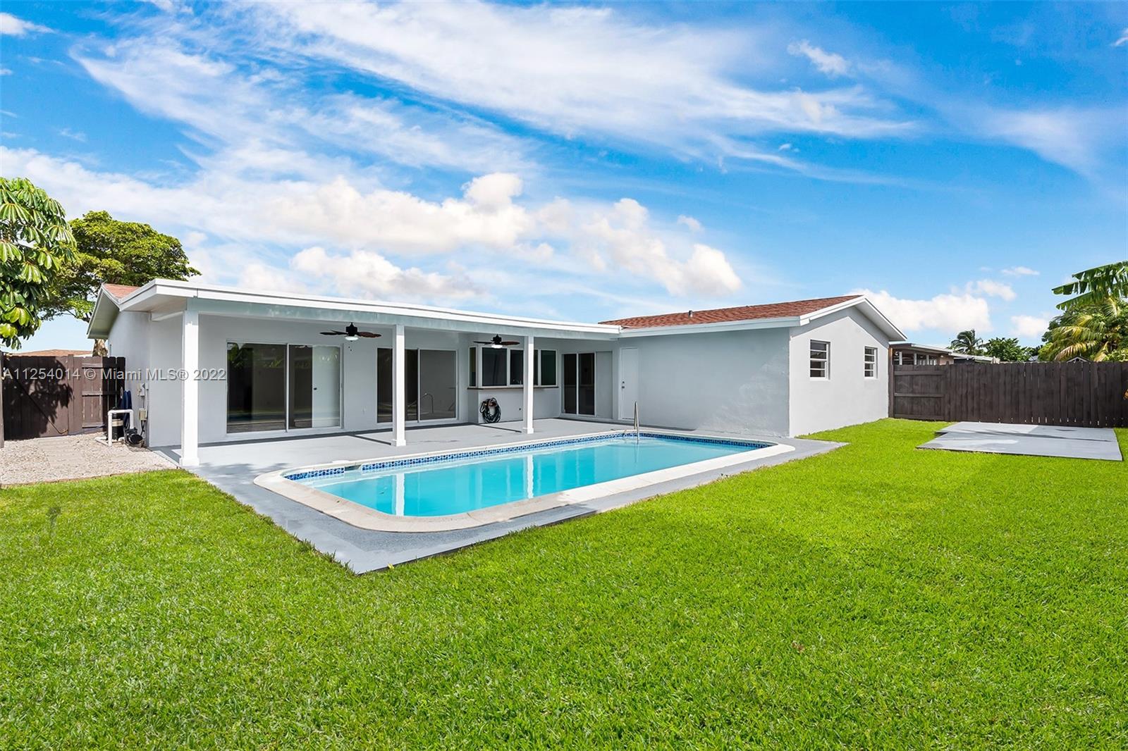 Spacious 4 bed 2 bath with large Newly Renovated Diamond Brite Pool and new pool pump! All new landscaping and sod in back yard Fenced in with BBQ area! New Sod in front of house! Remodeled Guest and Master Baths! Updated Lighting throughout the house indoor and out! Driveway Repaved! Roof only 2 years old! Kitchen updated recently with cooking Island. All new appliances! Updated Porcelain Flooring Throughout! Updated Hurricane Windows in Kitchen.
