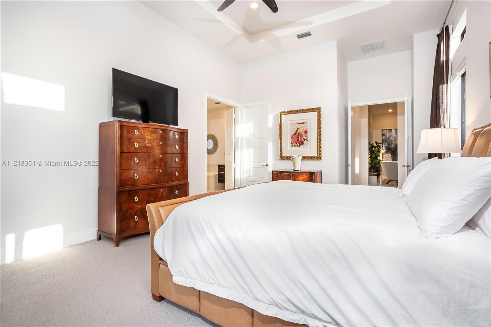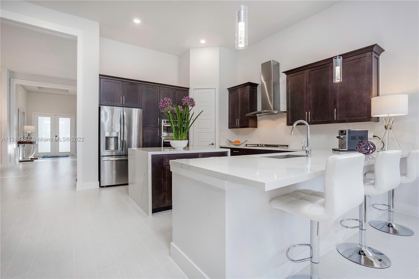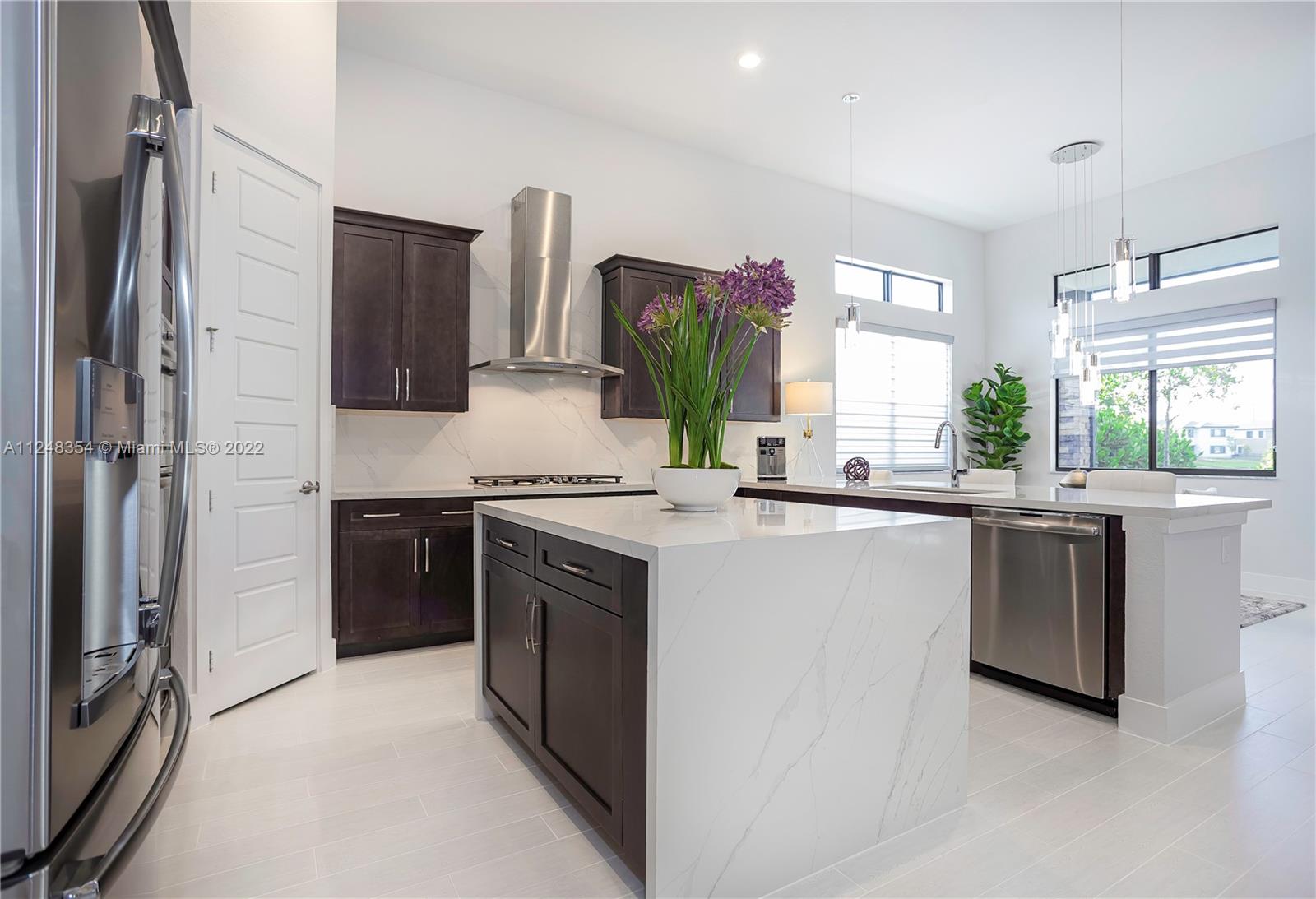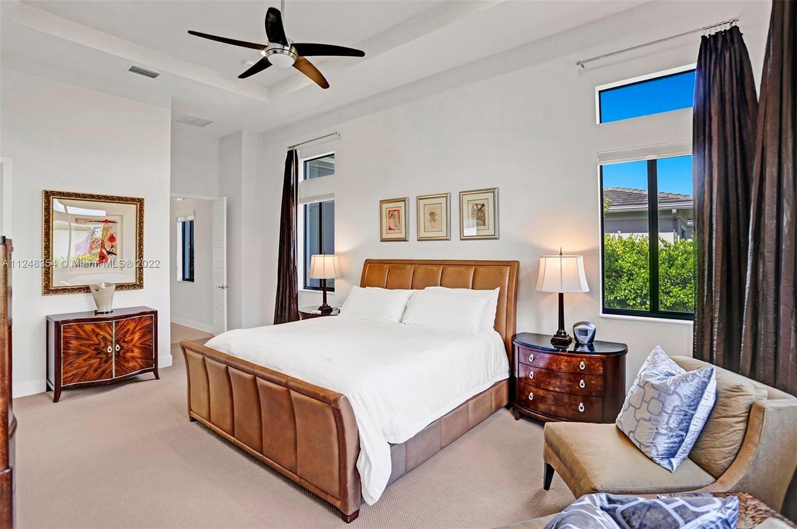 Stunning single-story home in the luxurious guard gated community of Cascata. This pristine Crimson model offers the largest floorplan in the collection w soaring 12’ ceilings. Wi-Fi certified smart home features beautiful porcelain tile & an open floor concept. Fully upgraded Gourmet style kitchen, custom cabinetry, quartz countertops w full backsplash & SS appliances & gas stove. Master bedroom features two walk-in closets. Custom blinds/draperies. Backyard features a screen enclosed patio overlooking the lake & lush hedges w/ ample space for a pool. Protected w/ impact windows & doors. HOA includes full outside maintenance for carefree living. State-of-the-art clubhouse includes activities for all ages: a cycling room, basketball court, complete gym, sauna, resort style pool, & more!