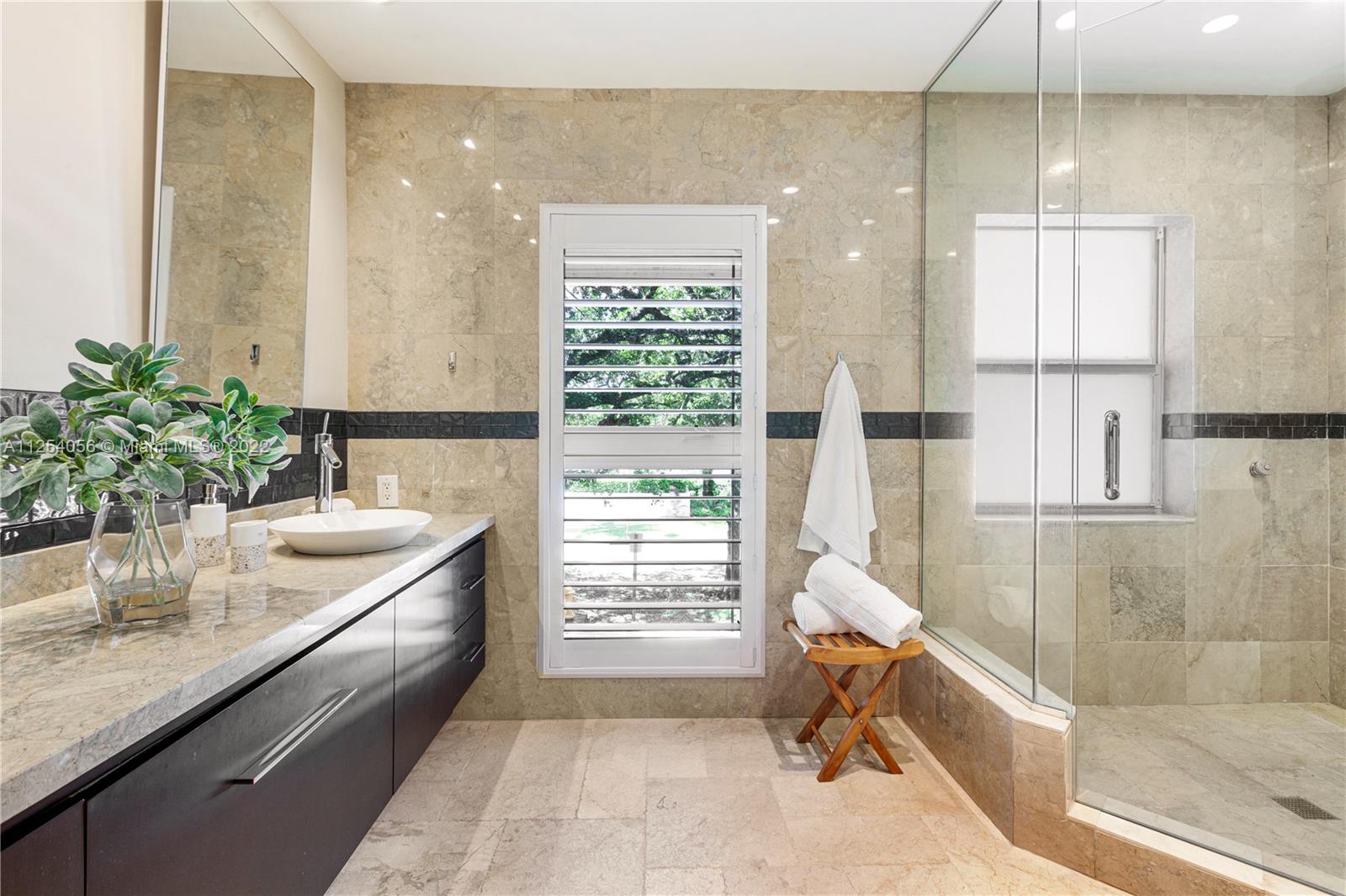 Welcome to Casa San Amaro. Located across from UM and Doctor's Hospital. This open and spacious, two-story updated home, sits on a CORNER LOT; features 4BDS, 3.5BTHS plus a Den/Office. Nestled under mature oak trees, specimen palms, tropical foliage and bamboo that can be enjoyed from every living area in the home. Property features: Arclinea kitchen with SubZero, Miele, Bosch and Gaggenau appliances, travertine marble throughout the first floor. On the second story, you will find engineered wood flooring, grand master suite with Juliet balcony, ensuite master bath and ample closet space. 4th bedroom has ensuite bathroom. Additional property features: 2021 roof, partial generator, natural gas, impact windows, Trane AC units, 1.5 car garage. GOOGLE ADDRESS FOR WALK-THROUGH VIDEO.