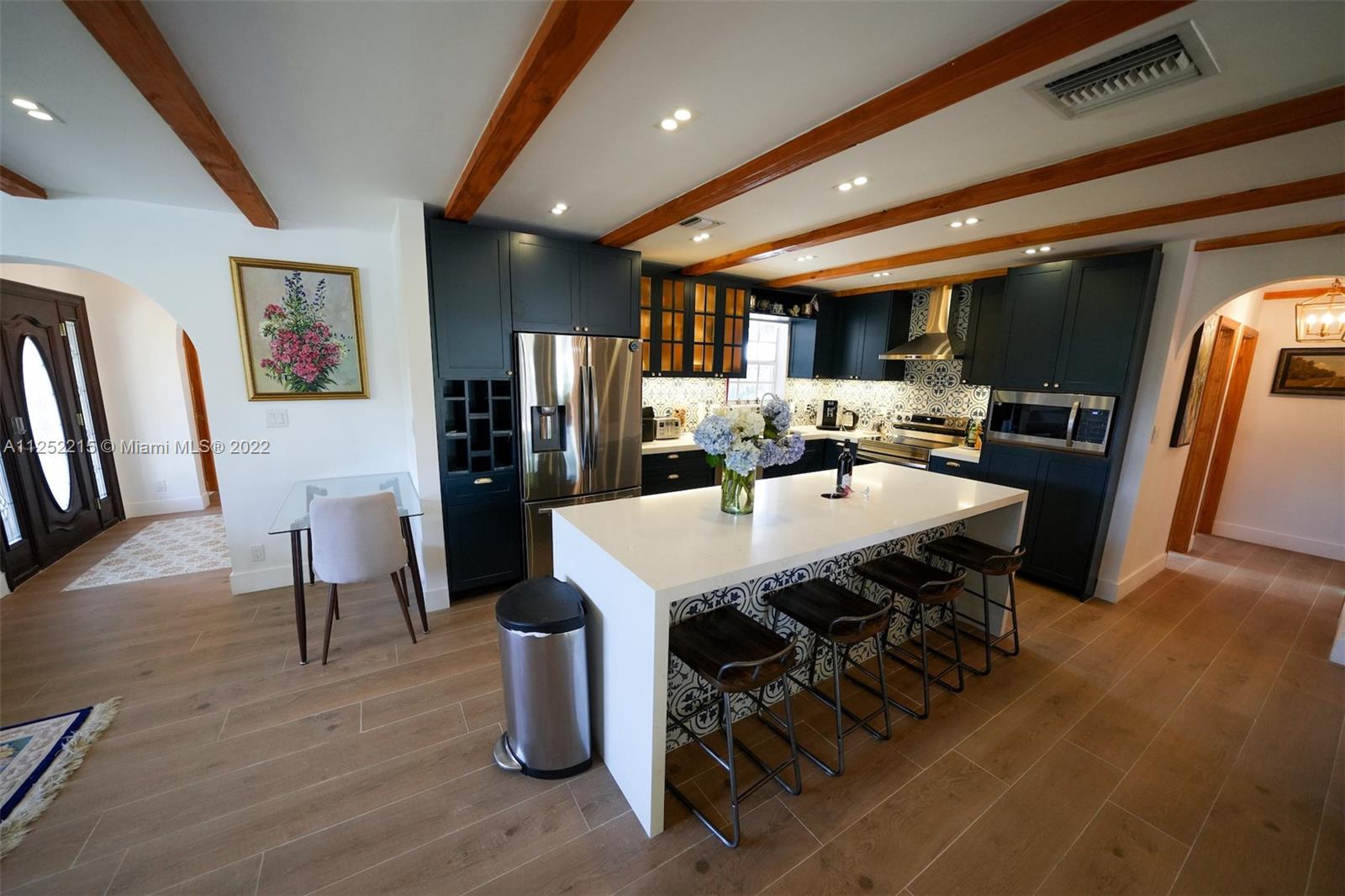 This home has interior design from famous interior designer. House is completed in traditional Authentic Spanish style with traditional elements such as tile finishes and kitchen. This home has 4 bedrooms and 3 bathrooms. Beautiful Master bath with stand alone Tub, big walk-in closets. House has handcrafted curtains, wood beams, arches, handcrafted furniture and more. Beautiful landscape, travertine backyard with pool and with waterfall, new pool pump and filter. New electric panel. Electric vehicle charger inside of garage and outside. One car garage has A/C and ready for your ride. Brand new garage door. New appliances, washer dryers with boxes. Osmosis filtration drinkable water system. Custom Restoration Hardware Chandlers. Can be sold fully furnished. No HOA.