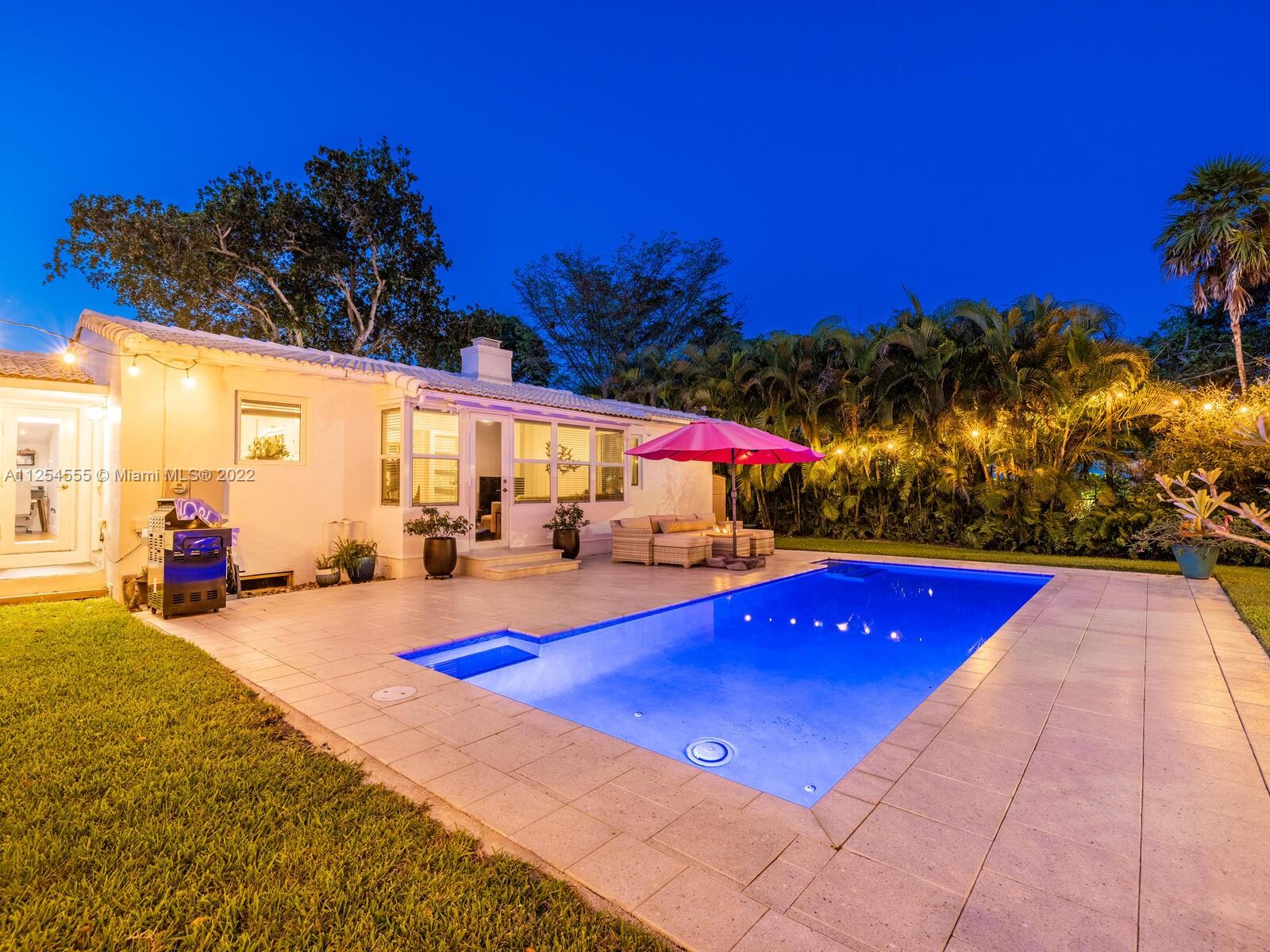 Welcome to Villa Blanca Miami Shores! Enjoy great indoor-outdoor living in this just-updated home and resort-style pool oasis on a private cul-de-sac! Delightful living with hip, large brick working fireplace that flows to dining and beautiful new kitchen, ready for you to whip up favorite recipes. Bright sunroom-media room with cool hexagon tile overlooks lush tropical rear gardens with sparkling saltwater pool and large entertainment deck. So fab, you’ll think you’re on vacation! Fire up the grill, invite friends and family and start the fun. Sweet dreams in split bedrooms—one new bedroom and new bath separate from two others and updated bath. Gorgeous wood floors, impact windows-doors, new appliances. Close to the excitement of downtown Miami Shores with great restaurants and shops.