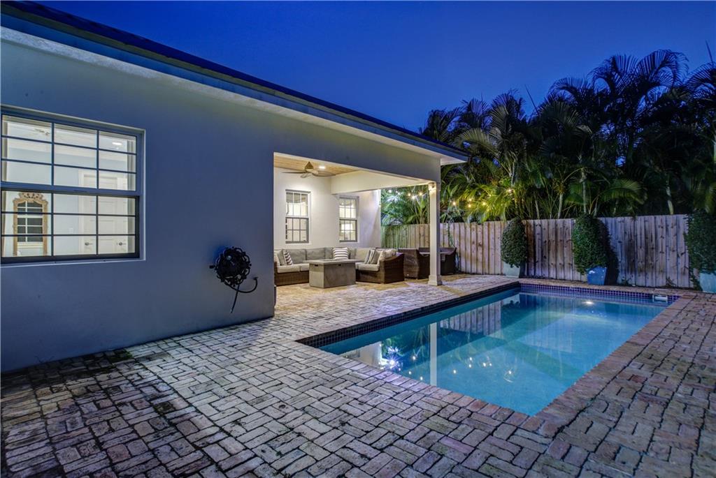 Exceptional home located on arguably the best street in the popular neighborhood of Rio Vista! This 4 bedroom, 3 bathroom, 2 garage pool home is the definition of charm! Enter this home and you are greeted by high ceilings, marble floors, custom mill work and a light, cheerful pallet of colors. Upgrades include Thermador appliance package, gas cooktop, quartz countertops w/ waterfall, custom chandeliers in dining areas & designer window treatments. Primary suite features walk-in closet, spa like bathroom with jacuzzi tub & separate shower. The private backyard surrounded by mature landscaping is perfect for entertaining friends & guests or just lounging by the pool. Too many additional upgrades to list. A-rated elementary school. Walk to popular Las Olas Blvd in Downtown Fort Lauderdale.