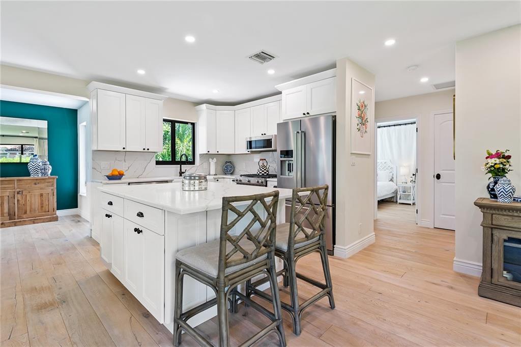 RIO VISTA!! Totally renovated - Move-in ready!! 3 BD l 2 BA with pool. Stunning construction project in 2019 adding master suite and bath, open floor plan, installed new roof, plumbing, electrical, new AC, hurricane impact doors and windows, European white oak floors, custom kitchen cabinetry, island kitchen, stainless appliances, gas range, quartz countertops, LED lighting, brick-paved driveway, privacy hedge in front of the home, spacious front yard