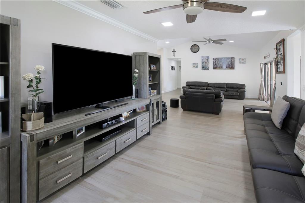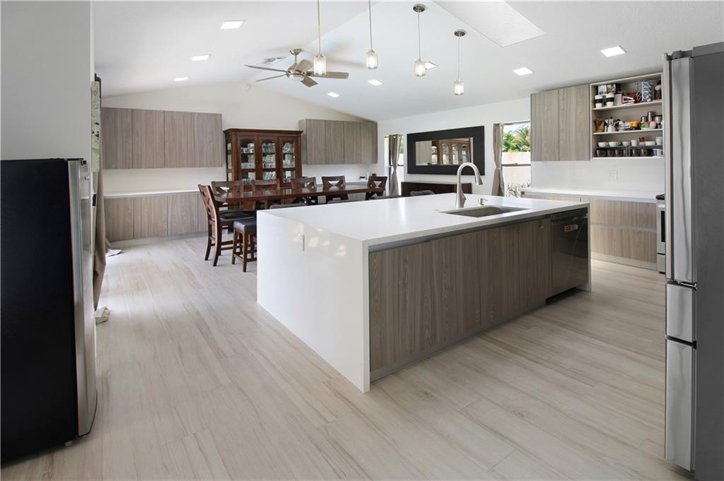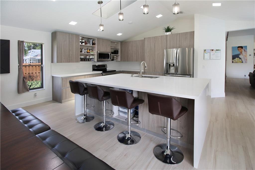 ABSOLUTELY STUNNING! Beautiful & totally remodeled 4 bed 2.5 bath cul-de-sac home w/ a pool in The Crossings! Porcelain tile & LED lights throughout. Remarkable kitchen complete with Quartz countertops, stainless steel appliances, a large island & plenty of storage. Beautifully remodeled bathrooms. Enjoy an open concept great for entertaining with lots of natural lighting. Double door entry & vaulted ceilings. Yard area is totally private & fenced with ample amount of yard space surrounding. Mango, Mulberry, Banana and Sugar Apple trees in backyard. Right around the corner from all of your shopping and dining. Brand new impact garage door and motor. Shutters throughout. Nest thermostat. AC 2018. Roof is from 2004. Pool pump 2019. Seller's disclosure and Homeowner's Addendum attached.