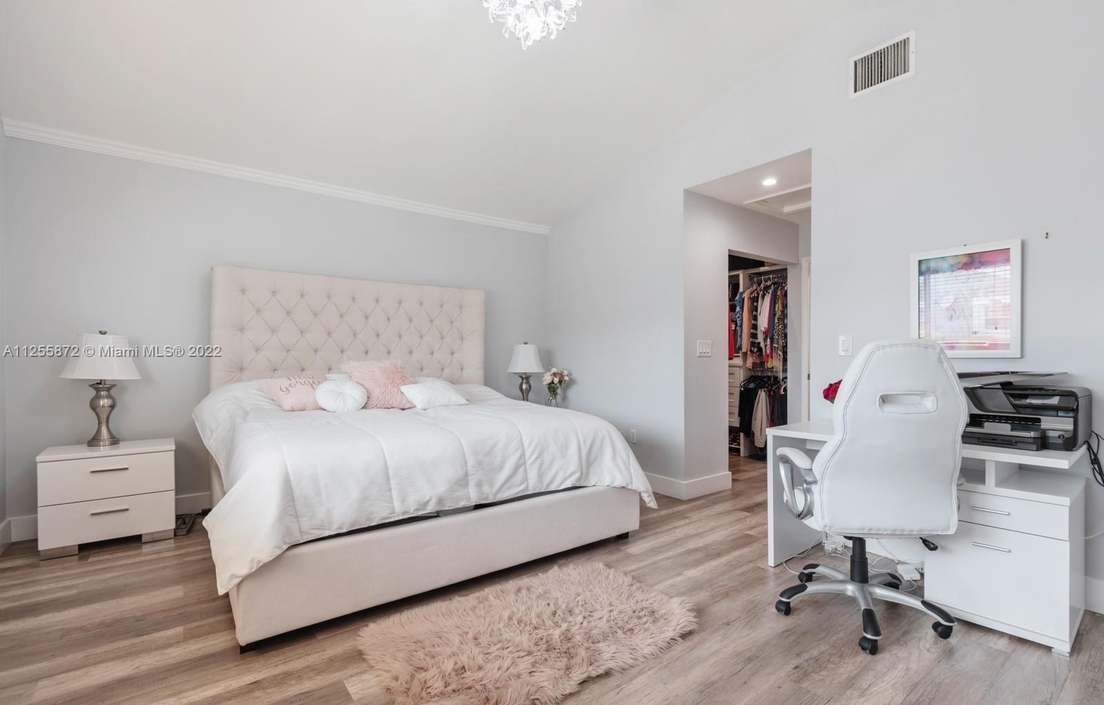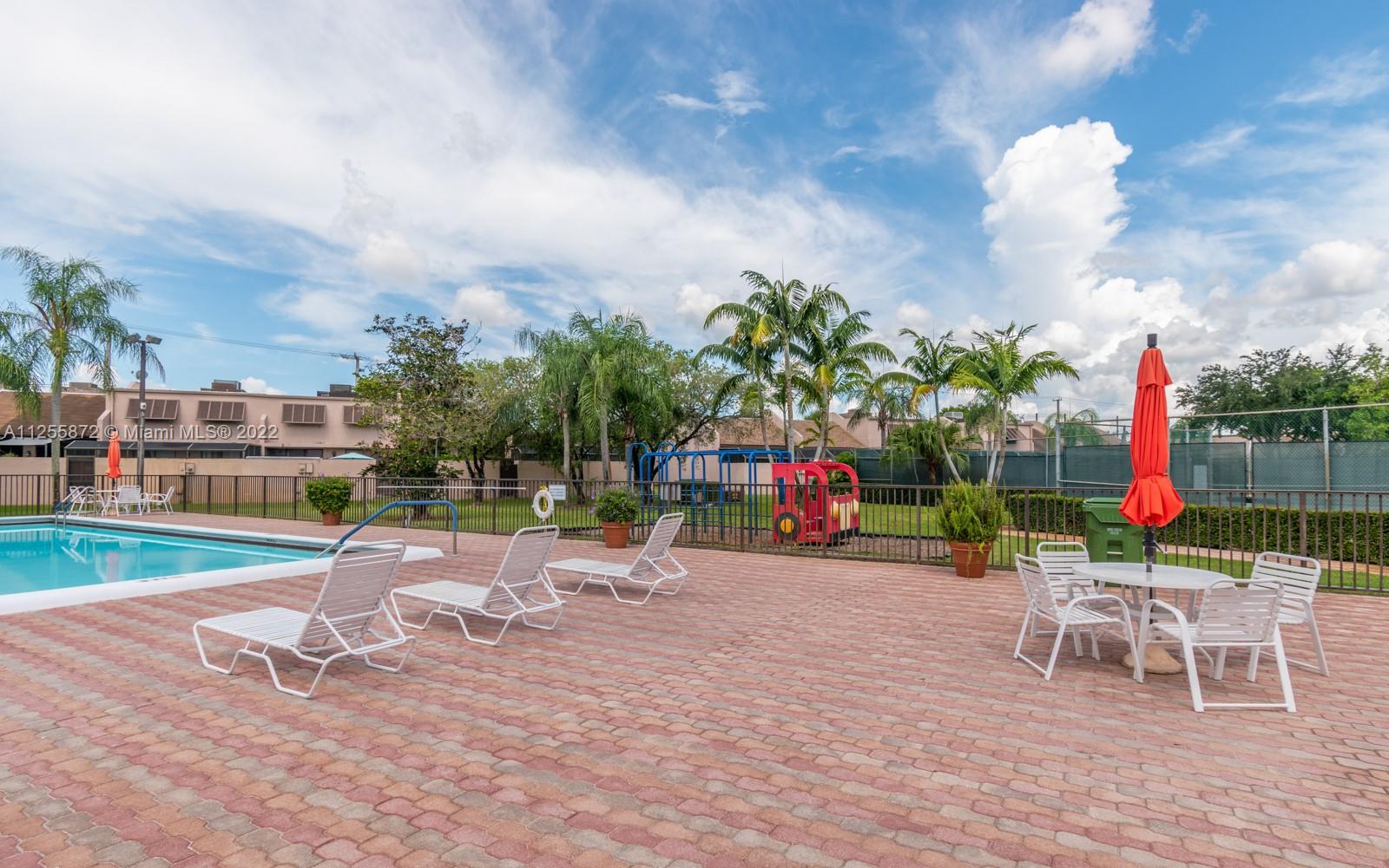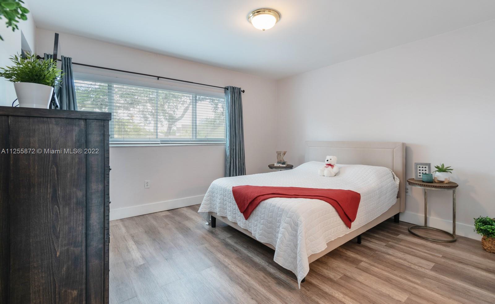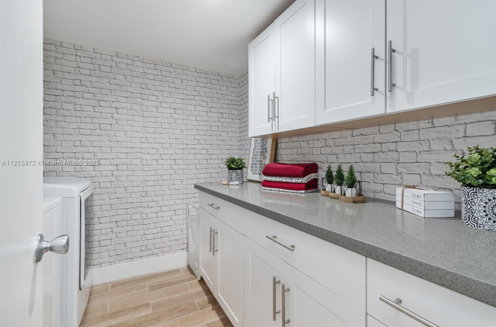 Your future home awaits! Rarely available 3/3 townhome in gated Flamingo Villas. Renovated with NEW modern kitchen, stainless steel, granite counters, 42” cabinets, waterfall island, backsplash, oversized sink. Downstairs features spacious living room, dining area, full bedroom + bath, renovated laundry with new cabinets, ample storage & quartz counters. Closet addition beneath staircase. Upstairs features 2 bedrooms including primary with vaulted ceiling & custom built-in entertainment unit. Popcorn removed + recessed lighting throughout. Custom built-ins in all closets. Back patio upgraded with tile, gazebo & storage. NEW roof, NEW impact windows and doors, NEW screens, NEW flooring, NEW chandeliers, NEW A/C, NEW tankless water heater! Smart home features keyless door & Nest. LOW HOA!
