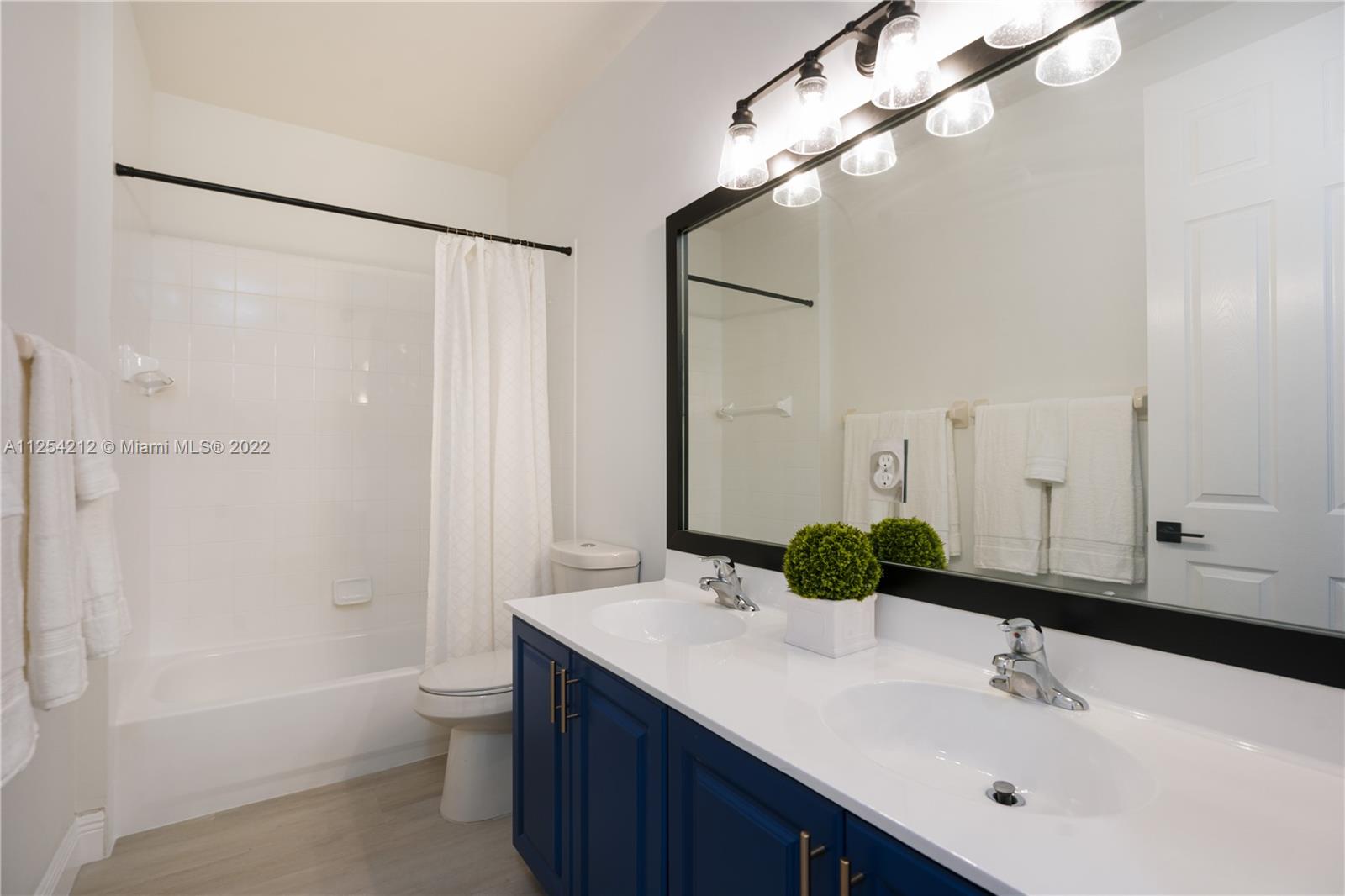 TSFT is proud to present Sunset Fall’s “The Alexandra”. Situated on a stunning 1-mile waterfront lot, this contemporary home features a modern farmhouse interior design alongside a practical 2-story floor plan ideal for most present-day families. Step inside and be enamored by your new custom kitchen area accentuated by an oversized table-style kitchen island with high-end quartz countertops and abstract pendant lighting. An entertainer’s dream, the kitchen overlooks the family room feature wall and your brand-new porcelain tile pool patio. Head upstairs to find 4 bedrooms (1 downstairs) including the owner’s suite with double walk-in closets. Built in 2007, Sunset Falls offers top tier amenities including a resort-style swimming pool & spa, tennis & basketball courts, and fitness center.