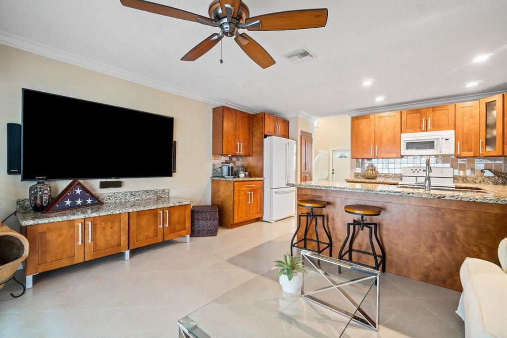 THIS IS ONE OF THE MOST BEAUTIFUL & PRISTINE HOMES YOU WILL EVER SEE! AS YOU WALK THRU THE DOOR, THE GREAT ROOM WILL CAPTURE YOUR HEART! VERY OPEN CONCEPT WITH EXTREMELY HIGH CEILINGS. 24 X 24 PORCELAIN TILE ON FIRST LEVEL. UPDATED KITCHEN WITH SHAKER STYLE CABINETS AND GRANITE COUNTERTOPS THAT OPENS TO FAMILY AREA. PRIMARY BEDROOM IS ON THE FIRST FLOOR & UPDATED BATHROOM HAS A ROMAN TUB. UPSTAIRS YOU HAVE 2 BEDROOMS AND A NEW GORGEOUS CONTEMPORARY STYLE 2ND BATHROOM! CUSTOM PLANTATION SHUTTERS ADD TO THE CHARM OF THIS HOME. THE PATIO HAS A SCREENED IN COVERED LANAI, GREAT FOR BREAKFAST OR DINNER, WHICH ADDS TO THE THE MOST TRANQUL AND PEACEFUL OUTDOOR SANCTUARY COMPLETE WTH FLOWERS, & PAVERS. BRAND NEW A/C , WASHER, DRYER, HOT WATER HEATER & INTERIOR HAS BEEN FRESHLY PAINTED