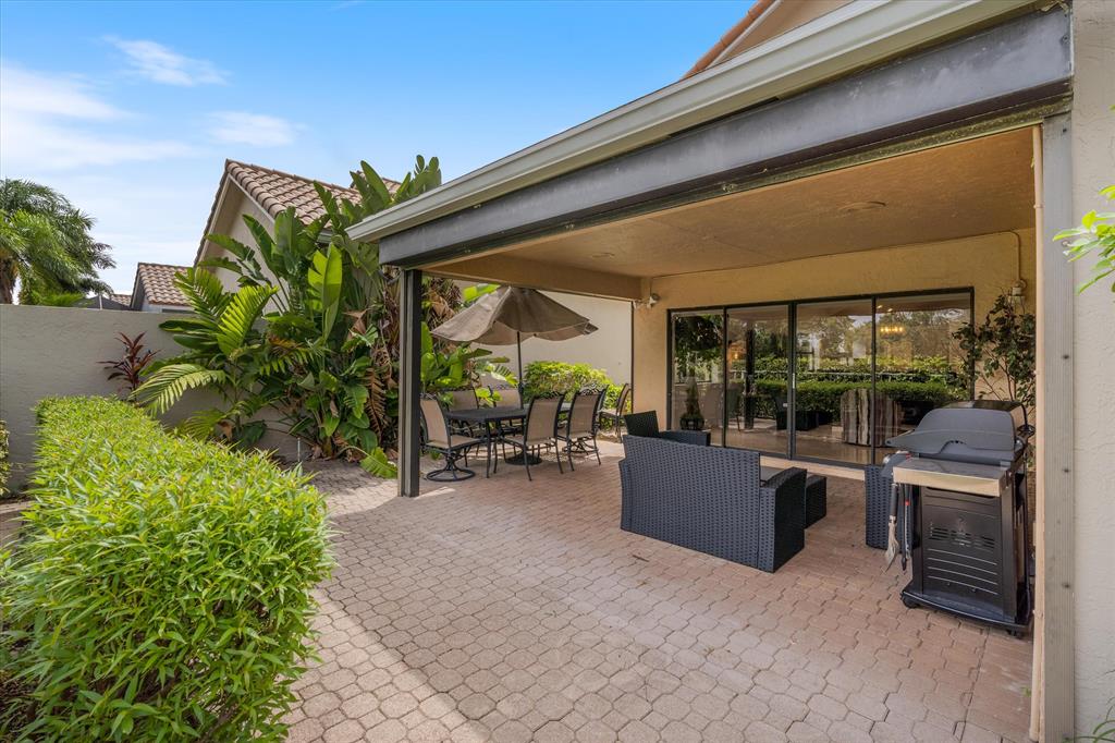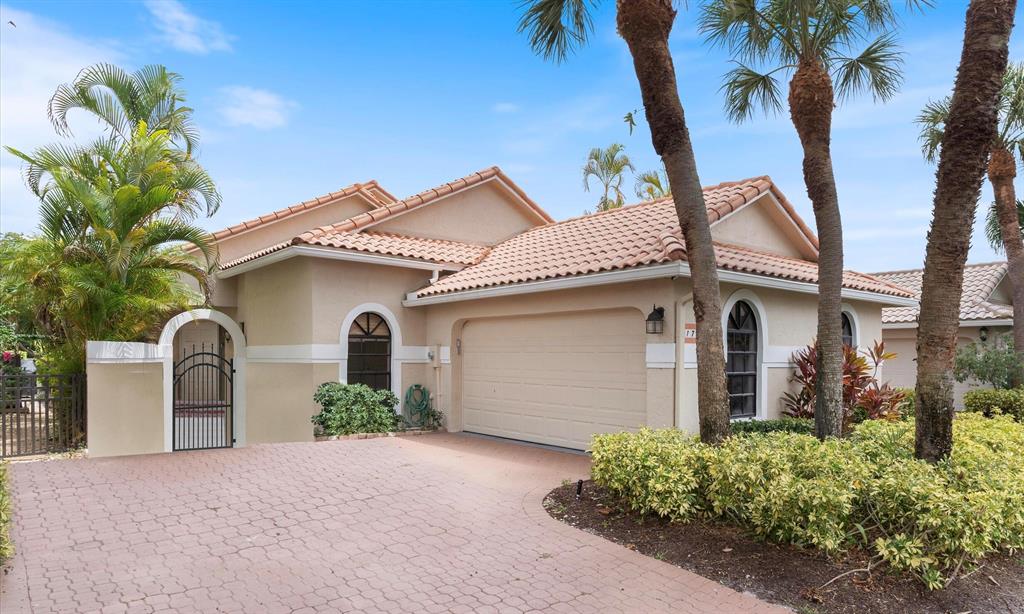 Impressive one story home with 3 bedrooms, 2.5 baths, and a 2 car garage. Charming front entrance and inside you're greeted by high vaulted ceilings and a lovely open floor plan with 1,968 sq ft under air. Upgraded kitchen with quartz countertops and stainless steel appliances. Some features include: 2019 AC, 2007 water heater, marble flooring, luxurious baths, the third bedroom acts as an office and offers glass French doors, desirable southeast exposure. Spacious backyard with paved patio and covered area. Enjoy both GOLF and LAKE views!
