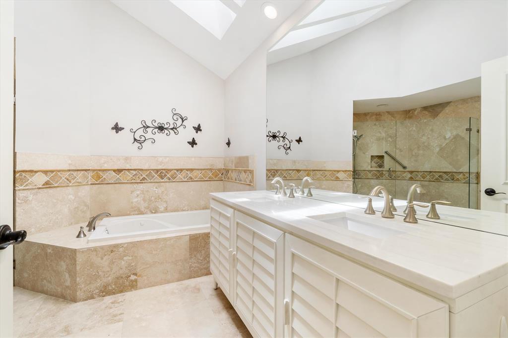 • Característica Interior:BuiltinFeatures, DualSinks, EntranceFoyer, EatinKitchen, FrenchDoorsAtriumDoors, GardenTubRomanTub, LivingDiningRoom, SplitBedrooms, Skylights, SeparateShower, VaultedCeilings, WalkInClosets