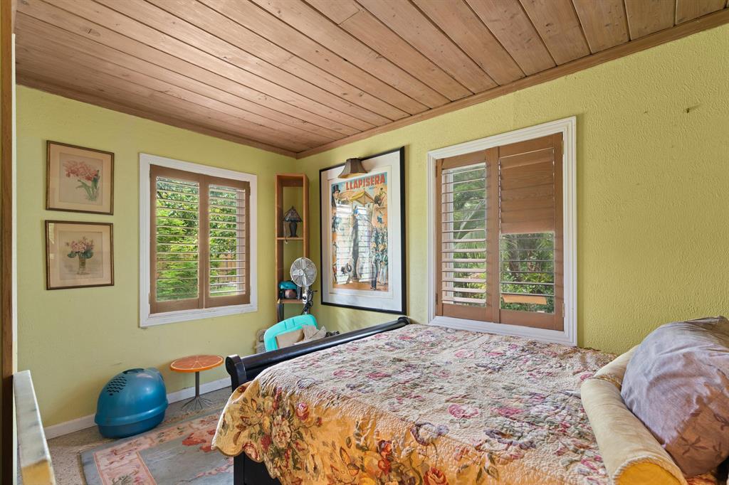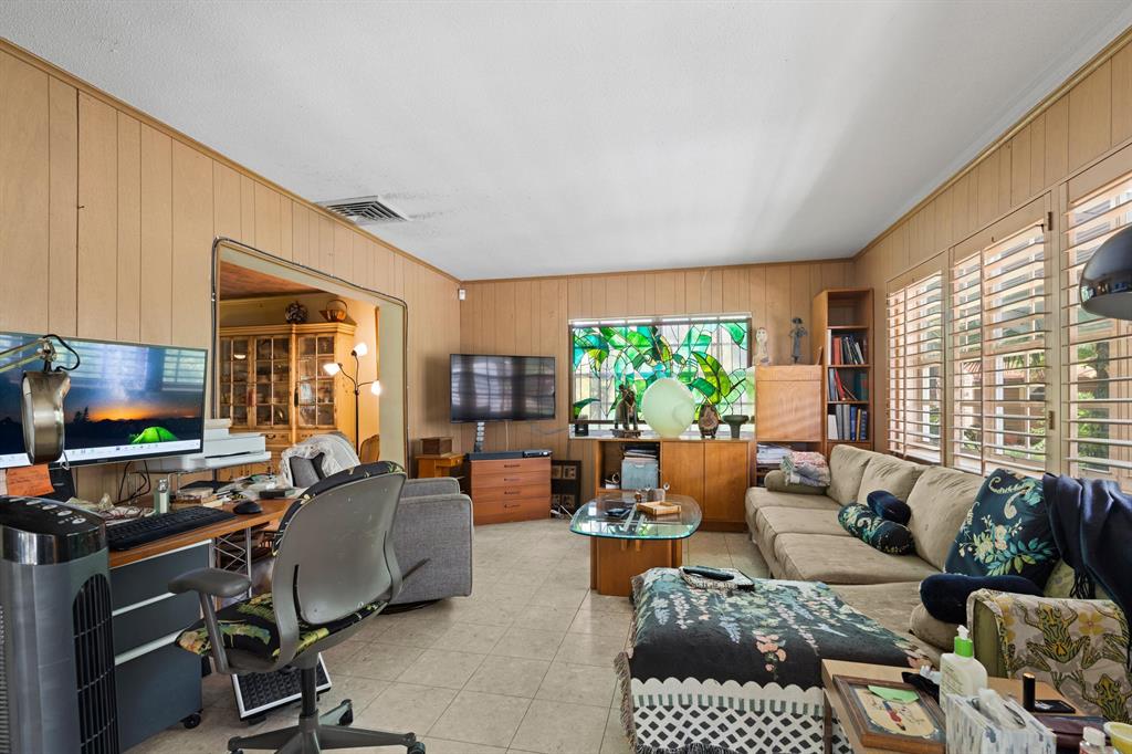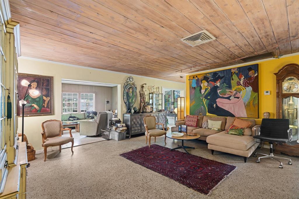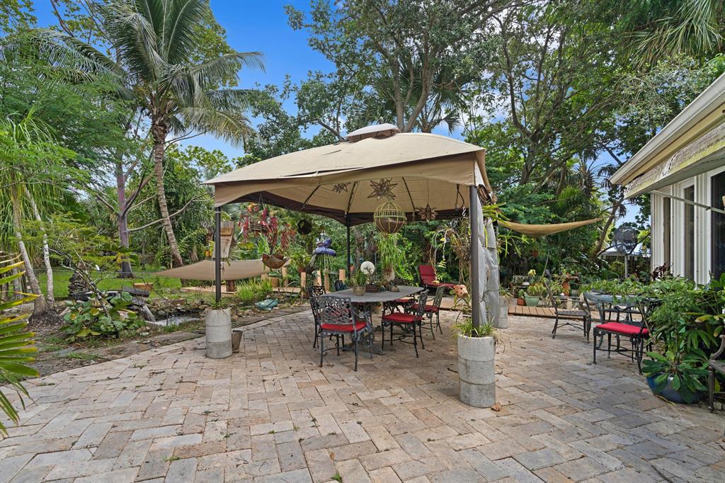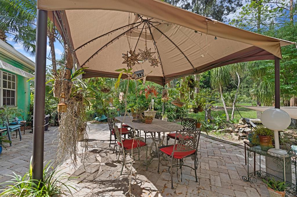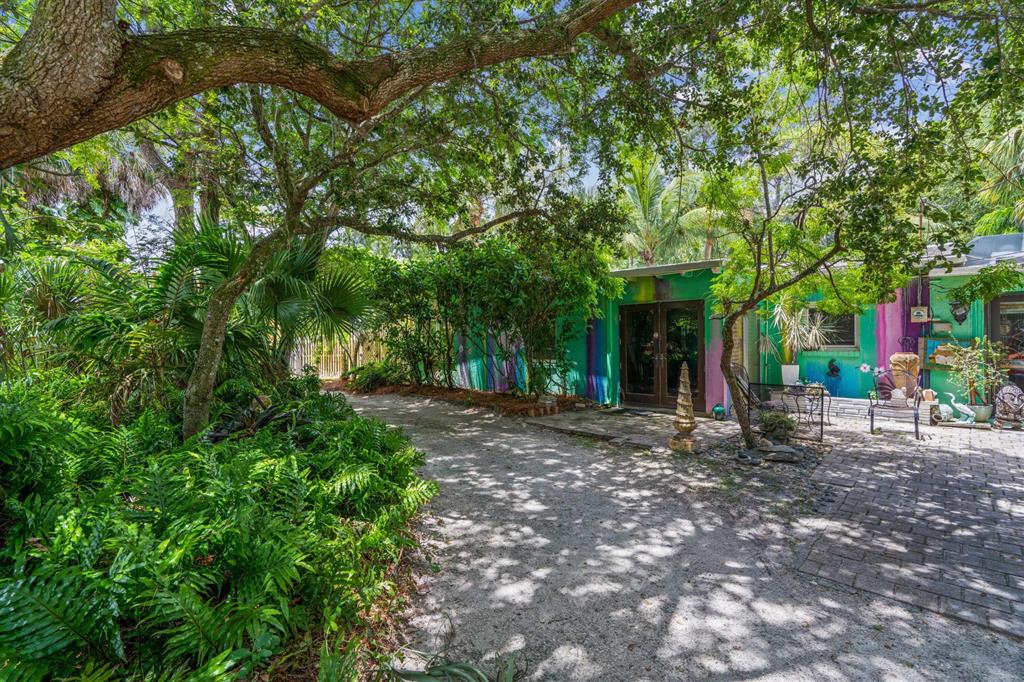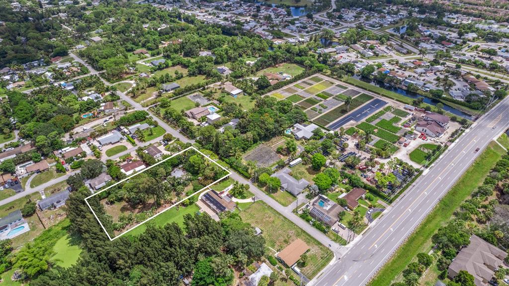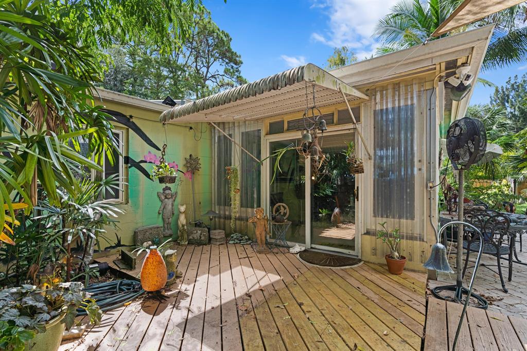Mid-century 1950's 3 bedroom, 1 bath home on .93 acres. Built by a brick mason, CBS construction, metal roof, original terrazzo floors, french doors throughout, and original tongue and groove pecky-cypress ceilings. The European cabinetry kitchen features granite counters, 2 refrigerators, and eat-in-island. The yard and gardens are spectacular with marble travertine patio, gazebo, koi pond, and outdoor shed.Centrally located, just miles from the turnpike, I-95, PBI Airport, and minutes to downtown West Palm Beach. You are close to it all, while in your own private paradise. The property is completely fenced, city water, septic sewer. The original structure could complement a new build, or whatever possibilities your imagination could dream.