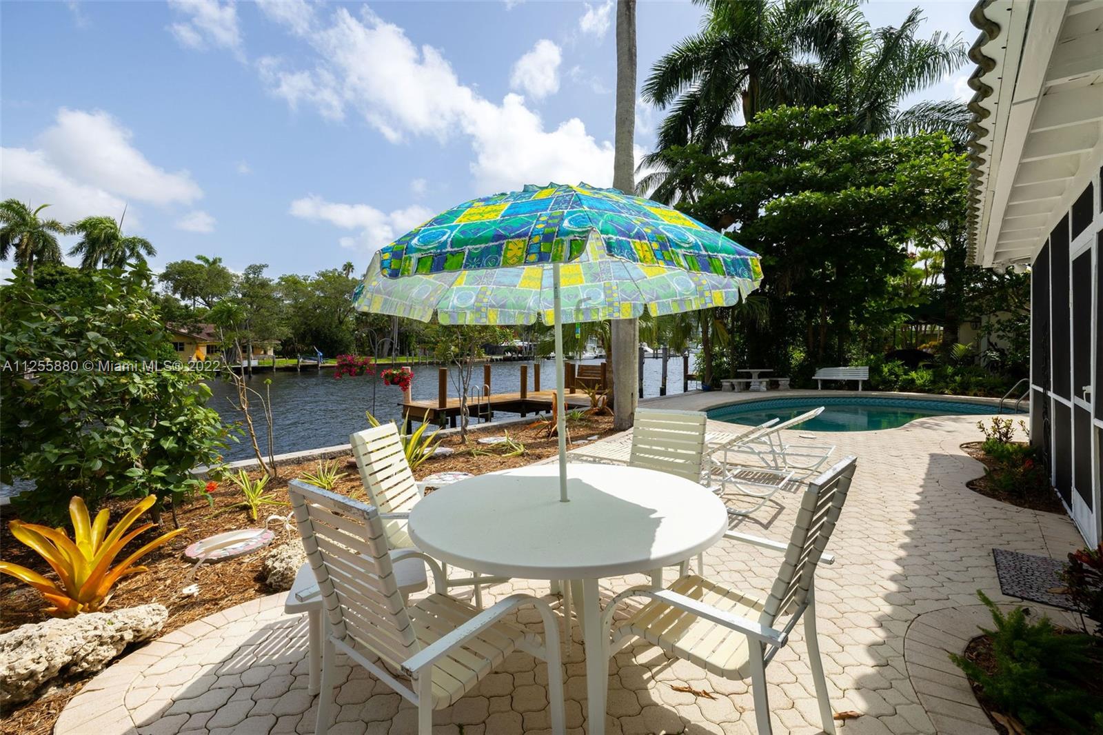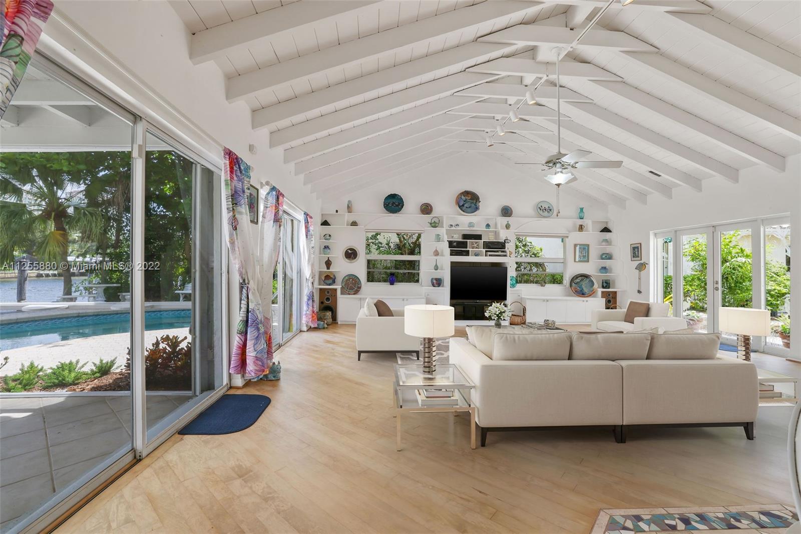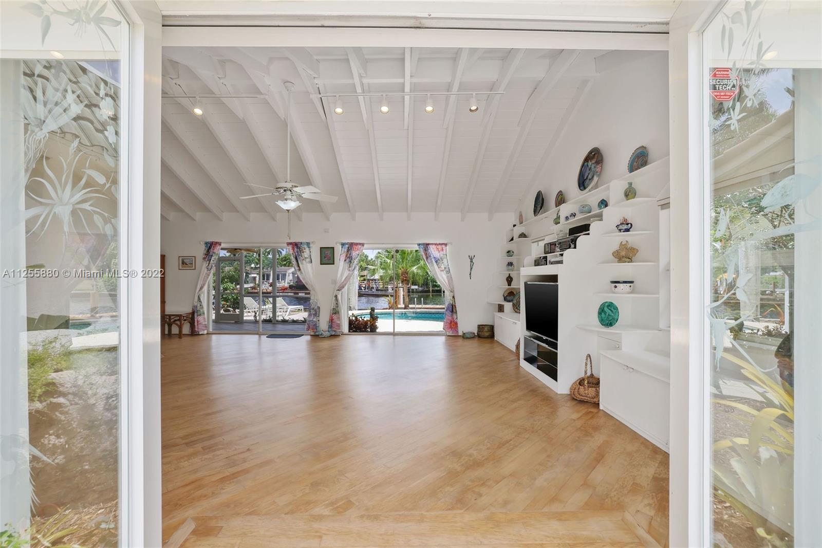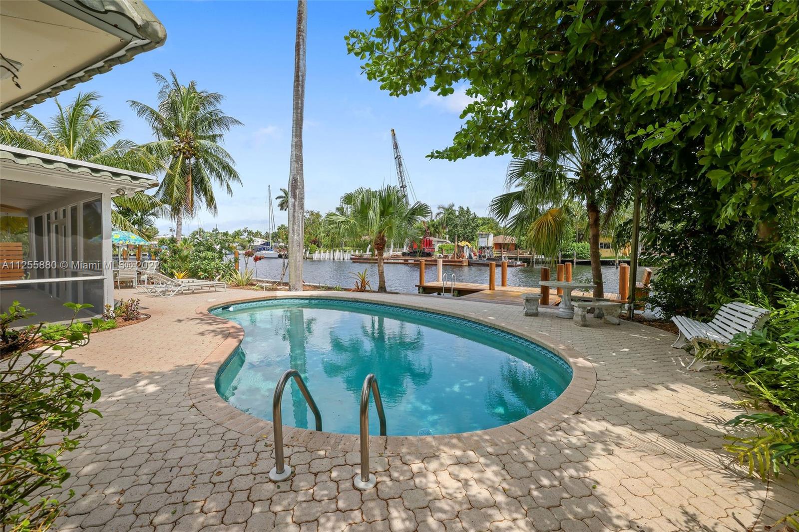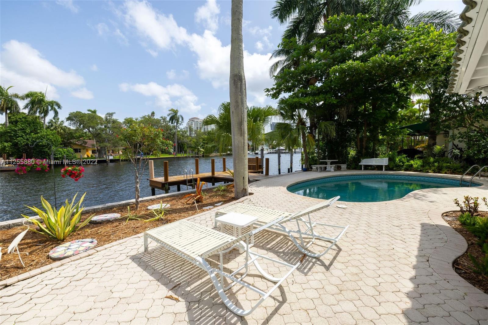 Spectacular Property & Boaters Paradise! Enjoy the view w/ 75 FT water frontage right on the New River, a DEEP-WATER channel with direct access and no fixed bridges to the Intercoastal & Atlantic Ocean! This lovely Florida pool home is perfectly situated in the coveted Tropical Point community, a gated peninsula of 23 homes within the Tarpon River area. Originally w/ 3 bedrooms, the home was completely transformed into a 2-bedroom, with an open floor plan concept, including an expansive living room with vaulted ceilings and an open kitchen. There's great natural light with many windows, skylights, and glass doors flanking the north side facing the water. Great closet & storage space, garage with craft-workshop area, screened patio, & newer roof. Recently painted and cared for. Call today!