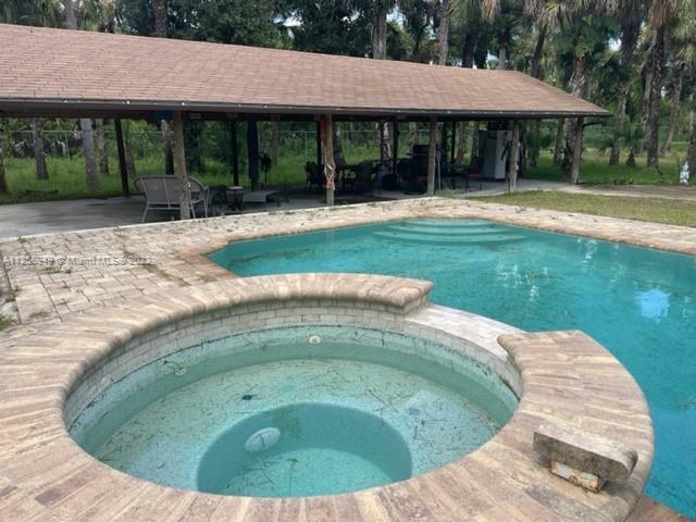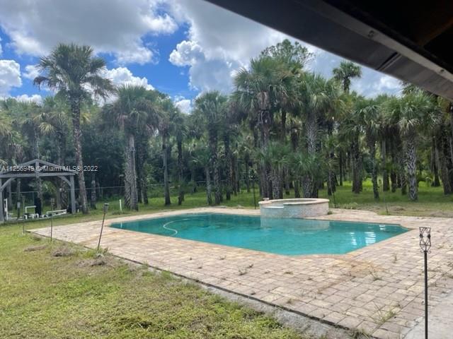 Schedule a showing on this beautiful and spacious 3-bedroom/2-bathroom home with a gorgeous pool and spa. Double car garage. Peaceful and private location in the Golden Gate Estates with 2.73 acres of land. Horses and livestock are allowed. Very desirable location in Naples with huge homes being built in the area. Lot is cleared and fenced with palm trees. Located within approximately 25 minutes of the main highway (I-75), within 35 min from the Beaches and within minutes from restaurants, groceries stores, shopping strips. Great schools! Great neighborhood.