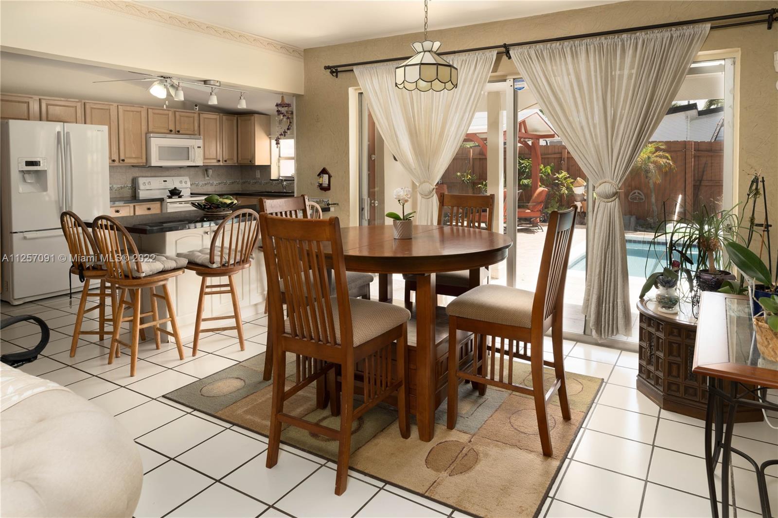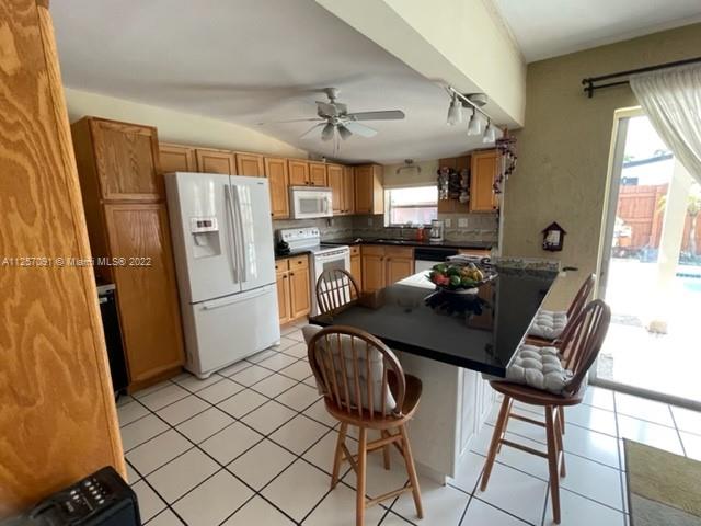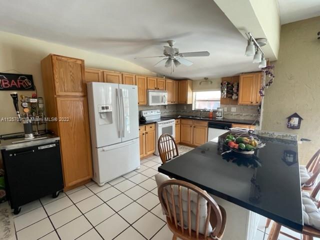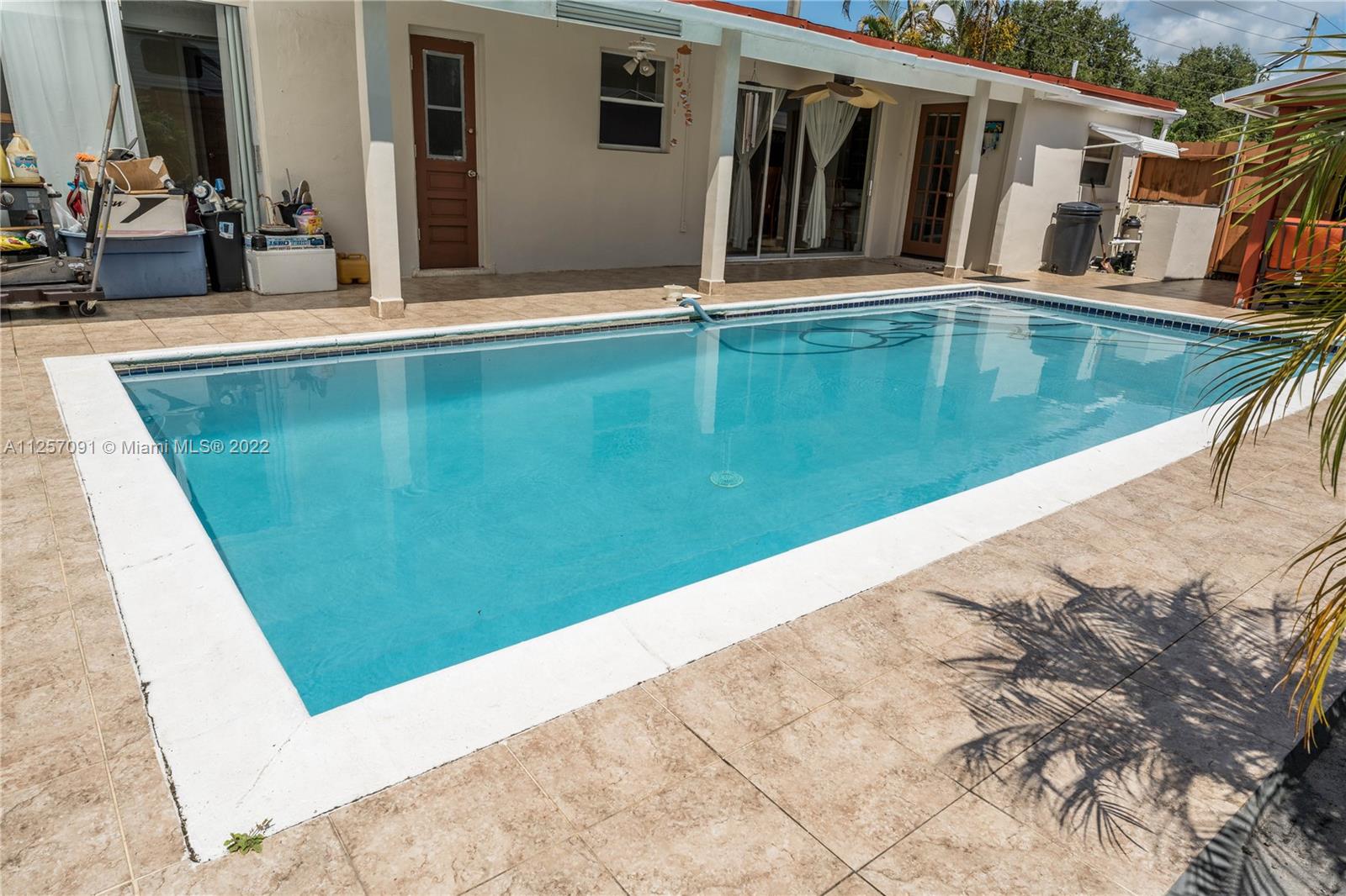 Great corner home. Centrally located. Huge fenced lot with private pool. Perfect open spaces to entertain. Open kitchen with plenty of cabinet spaces including pantry. Granite countertops. Completely tiled home. Laundry space in garage with plenty of storage space. New A/C and water heater, and pool salt pump. Large driveway with space for 8 vehicles. Partial Impact windows plus hurricane shutters. Enclosed patio includes extra fenced space where you could build in-laws quarter or have extra storage space. Roof life expectancy is over but roof is in good shape. Owner occupied. Easy to show.