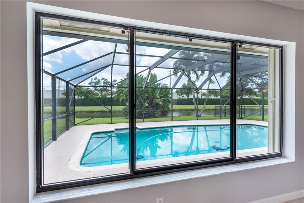 JACARANDA LAKES 4/ 2.5 bath waterfront pool home located in a kid friendly neighborhood. Great curb appeal w/ a circular driveway and 2 car garage. The living rm, dining rm, and family rm areas have vaulted ceilings and flow into the kitchen which features an island and eat in kitchen. The stacked bedrooms make this home perfect for a growing family! The Master Bedroom has two large walk-in closets and access to the pool/patio. The Master Bath has dual vanities and separate tub and shower. Entertain guests Florida style while relaxing in the screen enclosed pool. Fantastic water views of the pool and canal from most rooms. All windows have accordion shutters as well as accordion shutters across the covered patio. Walking distance to shopping, schools, and places of worship.