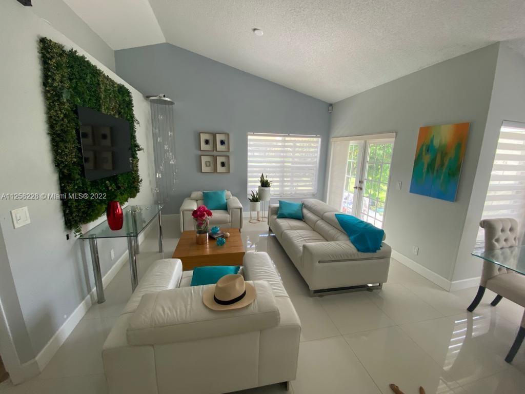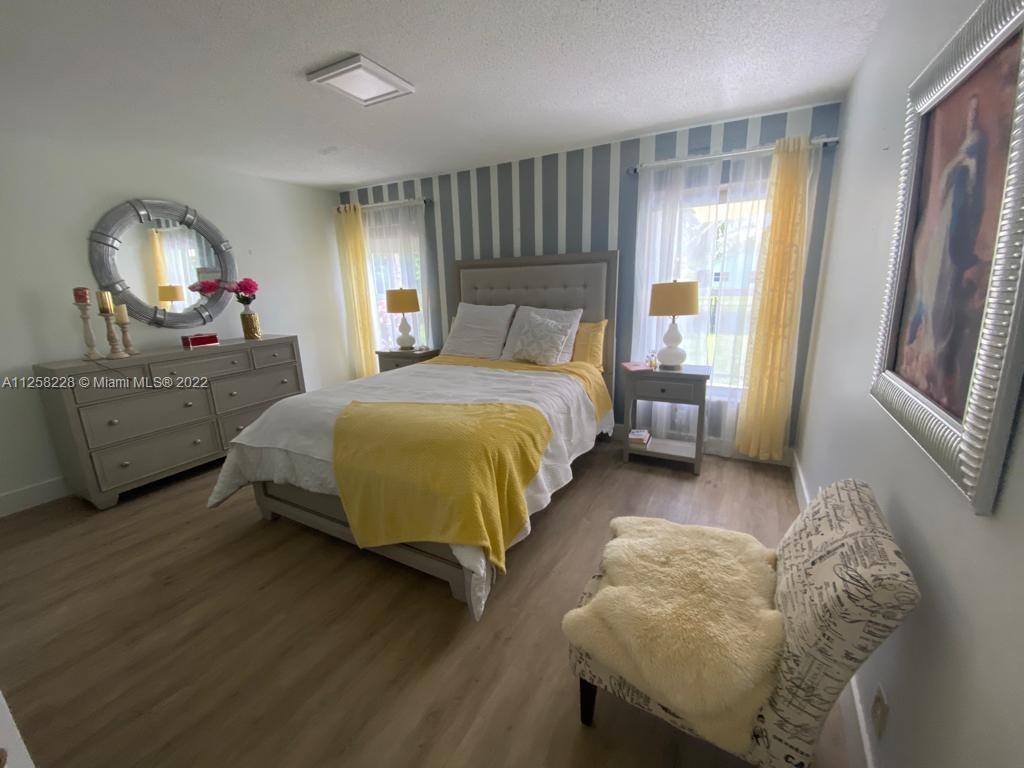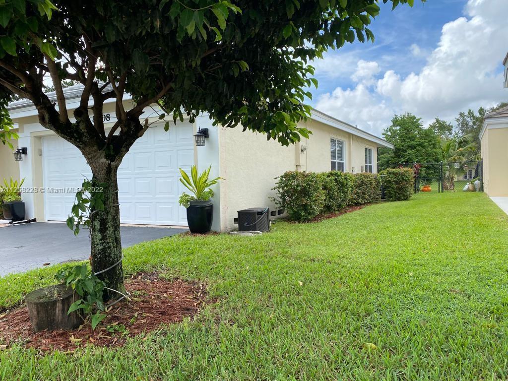 This beautiful house with 3/2 double garage a large patio in front of the lake remodeled bathrooms and floors in social area and vinyl floors in the rooms a remodeled kitchen, new washer and dryer, AC 4 years changed, new roof, heater 3 years electric, fruit trees, fence and security cameras can be rented and community pet friendly
