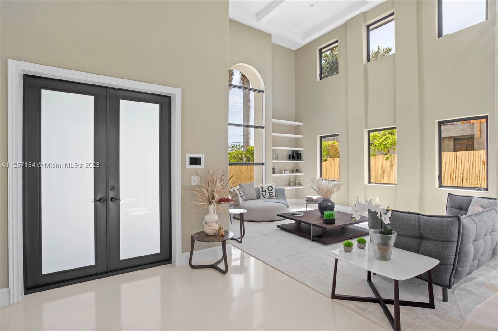 Once in a lifetime opportunity to have the city and island lifestyle! This home features 5 Bedrooms and 6.5 Bathrooms including a private guest suite with a separate entrance above the 2-car garage. This spectacular property is a perfect oasis, with breathtaking views, water access from a deck, a large backyard and pool, perfect for entertaining. The house includes a high ceiling, new impact windows and doors, a new open kitchen, custom home automation, and more. Brand new applicants from Miele, kitchen cabinetry and closets are exclusively designed by Ornare. The island offers a waterfront park, tennis & basketball courts, playgrounds, and a 24-hour manned police officer at the main entrance, all within a short distance of the best Miami offers!