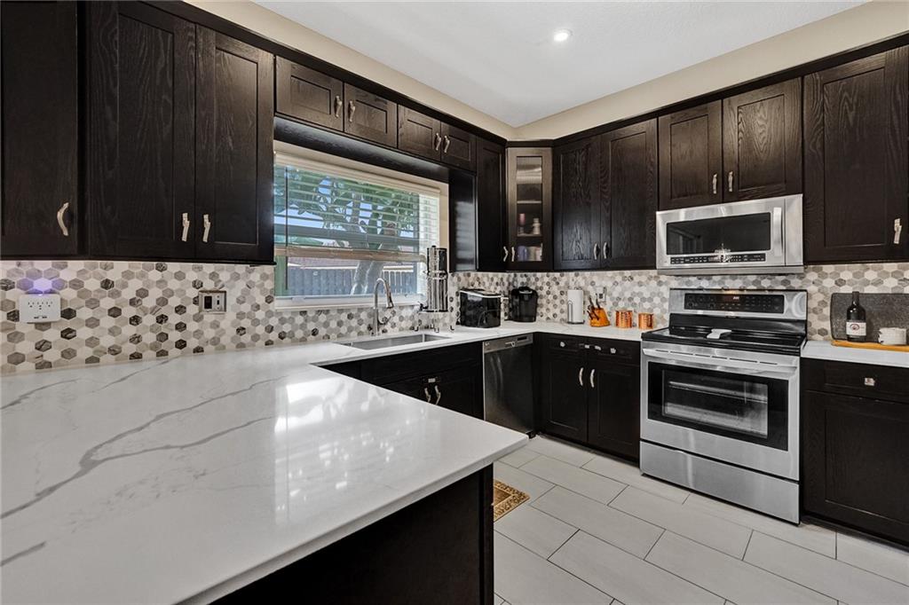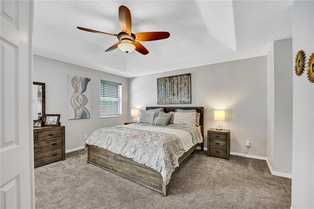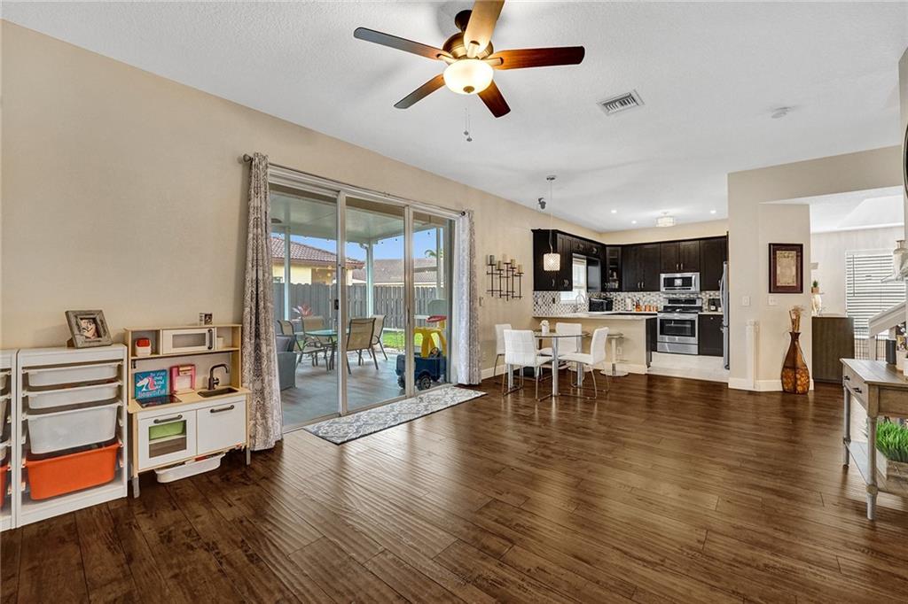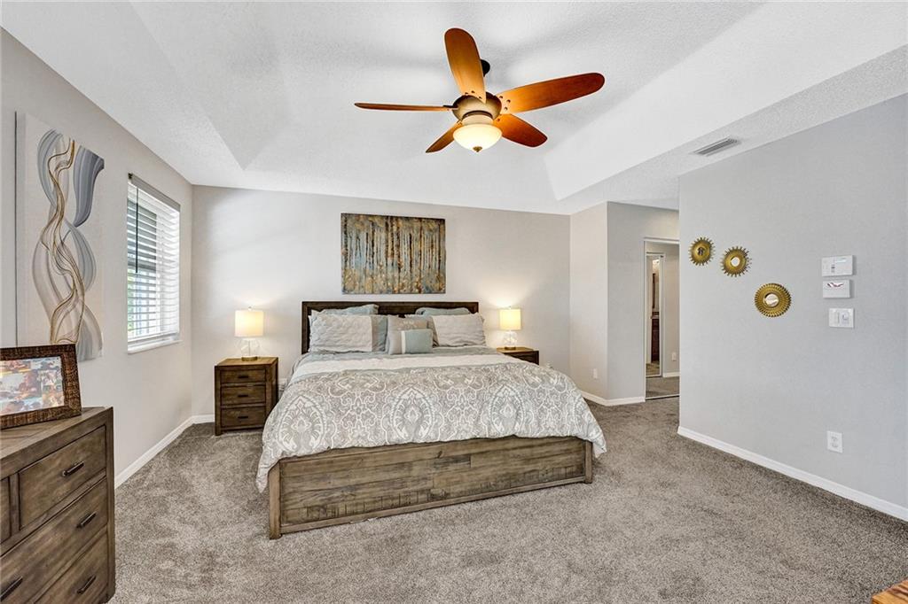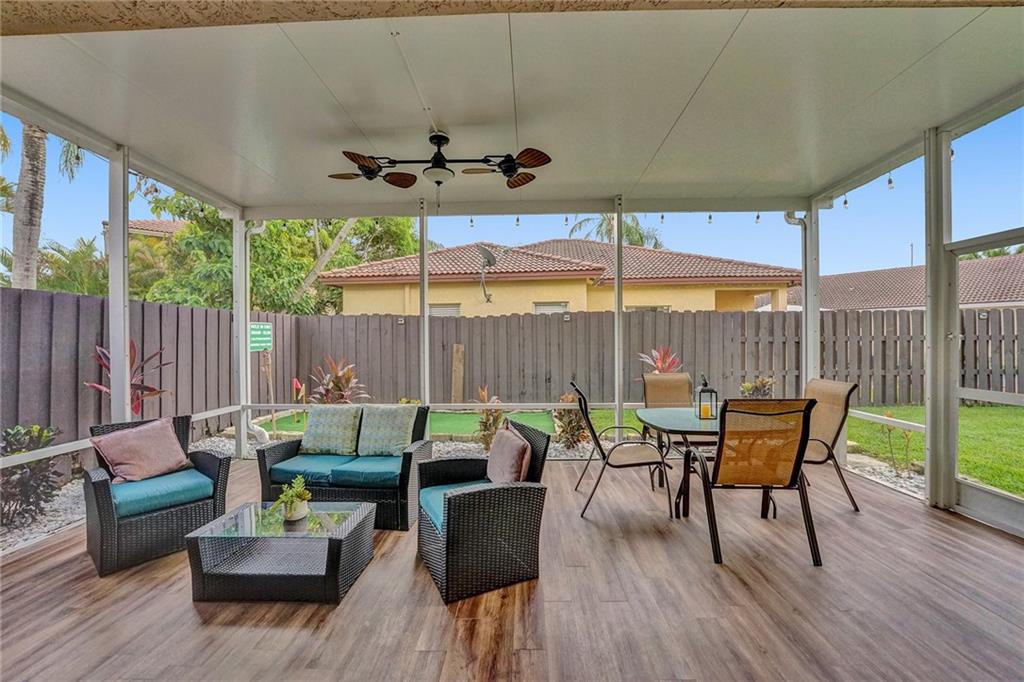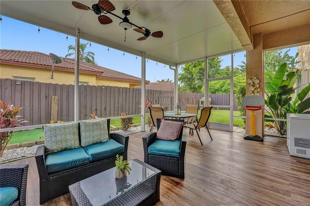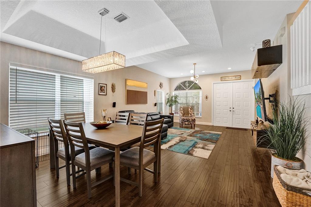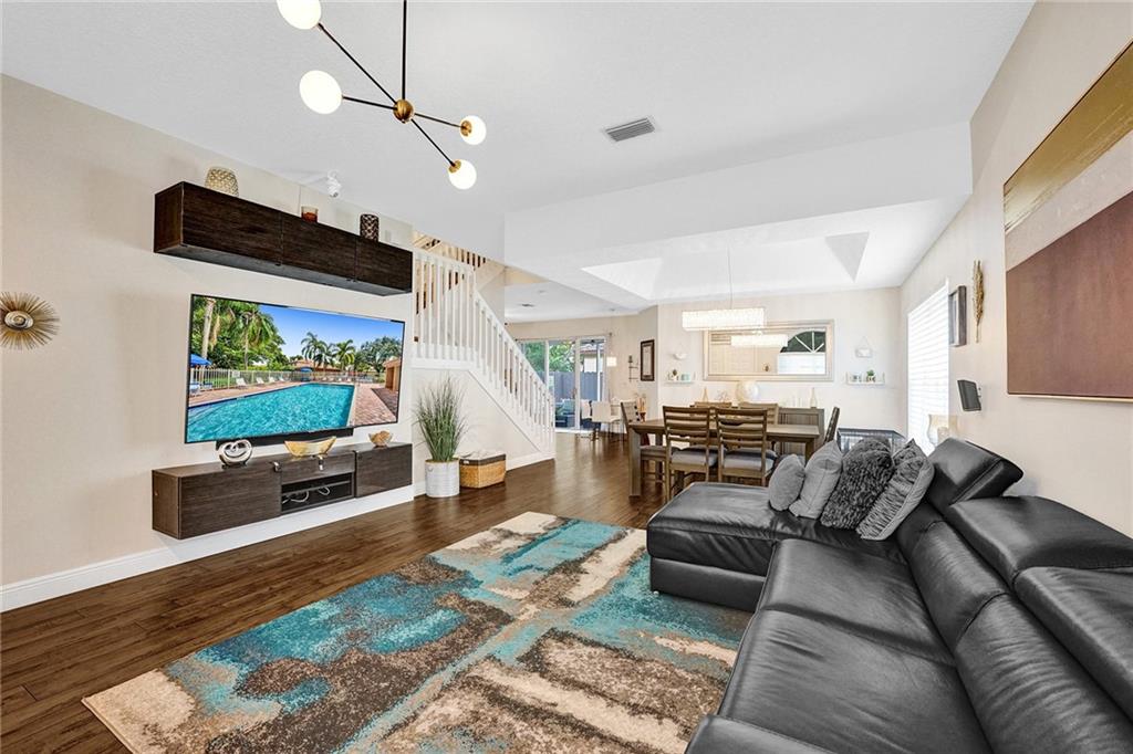 Welcome Home to Newport at Turtle Run- a well maintained gated community within walking distance to shopping and restaurants. This 4 bed 2.5 bath is a stunner from the moment you pull up. As you walk in you'll notice the gorgeous newly installed lighting throughout, vaulted ceilings, open floor plan allowing plenty of natural light to flow through, two large living spaces, dining area, gorgeous newly updated kitchen with quartz countertops, stainless steel appliances and new flooring. Upstairs the primary bedroom has a luxurious feel including a separate sitting area perfect for a home office or gym. Large walk in closets, soaking tub and dual vanities.Fenced yard with a screened in permitted lanai, great space with room for a pool. New washer dryer, New AC and water heater. Easy to see
